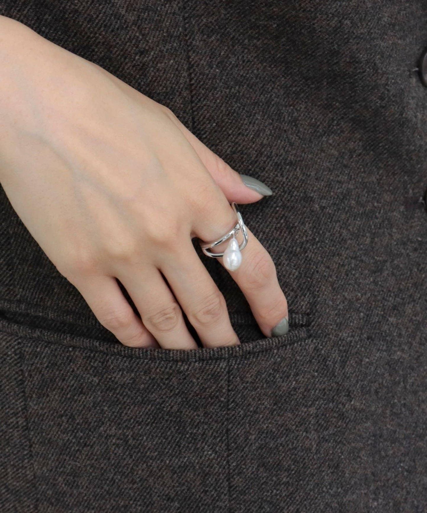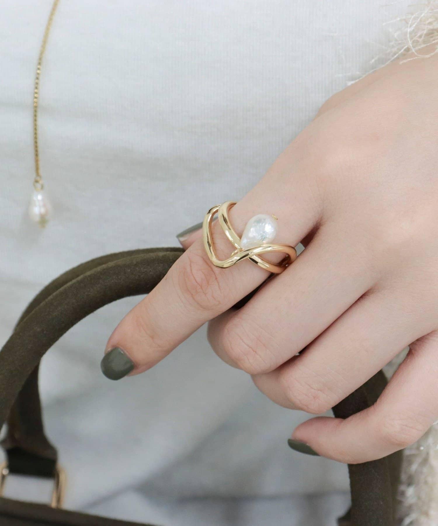 水滴形珍珠藝術指環,點綴指尖的優雅與魅力。