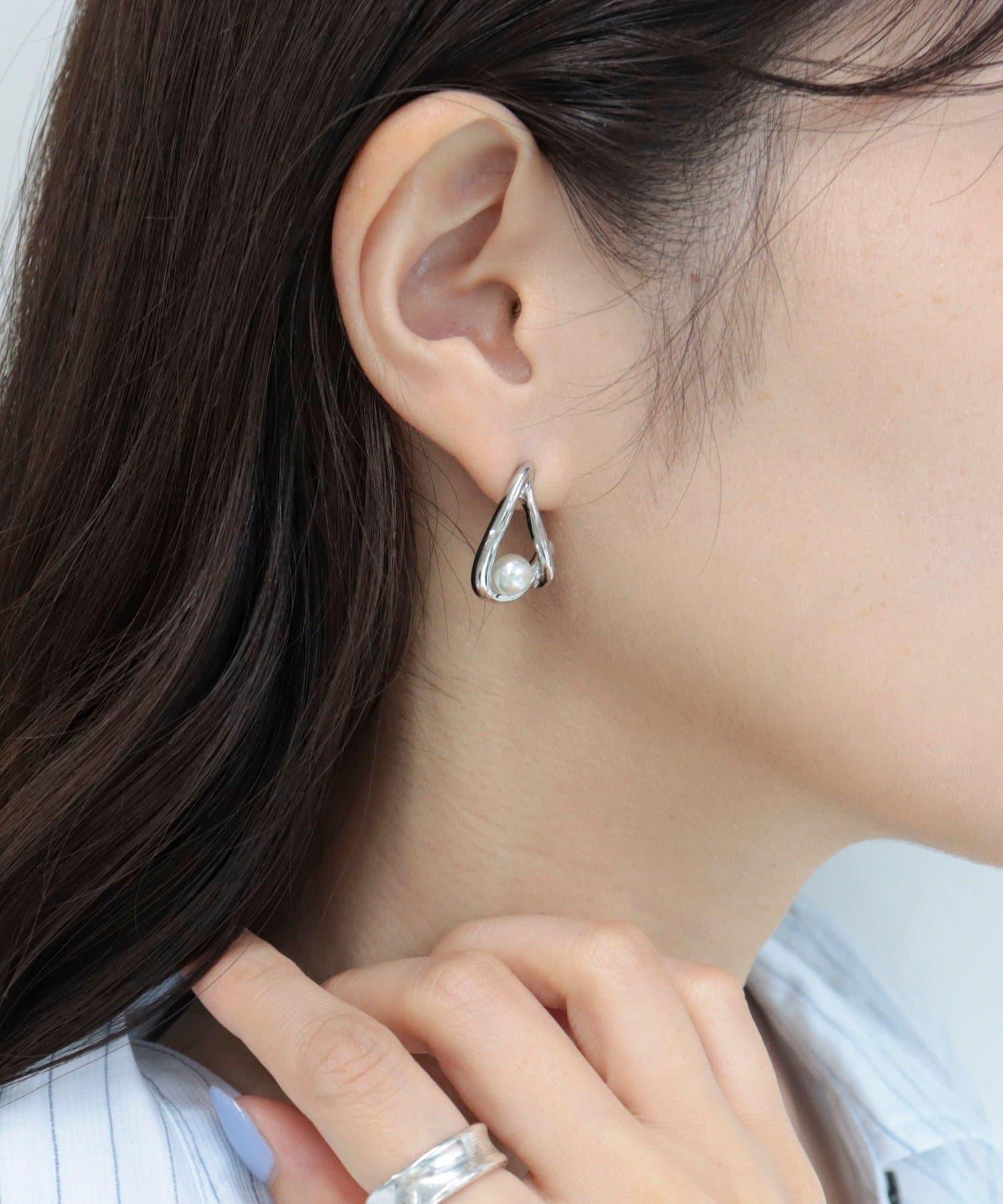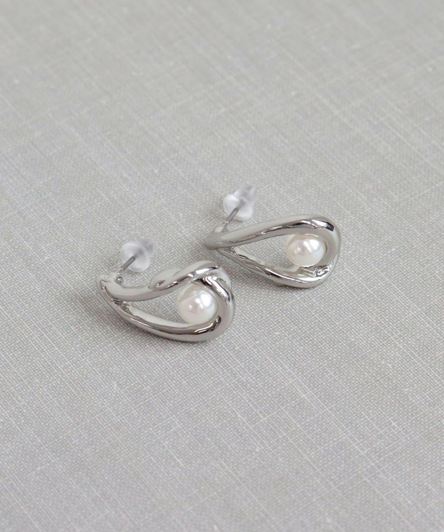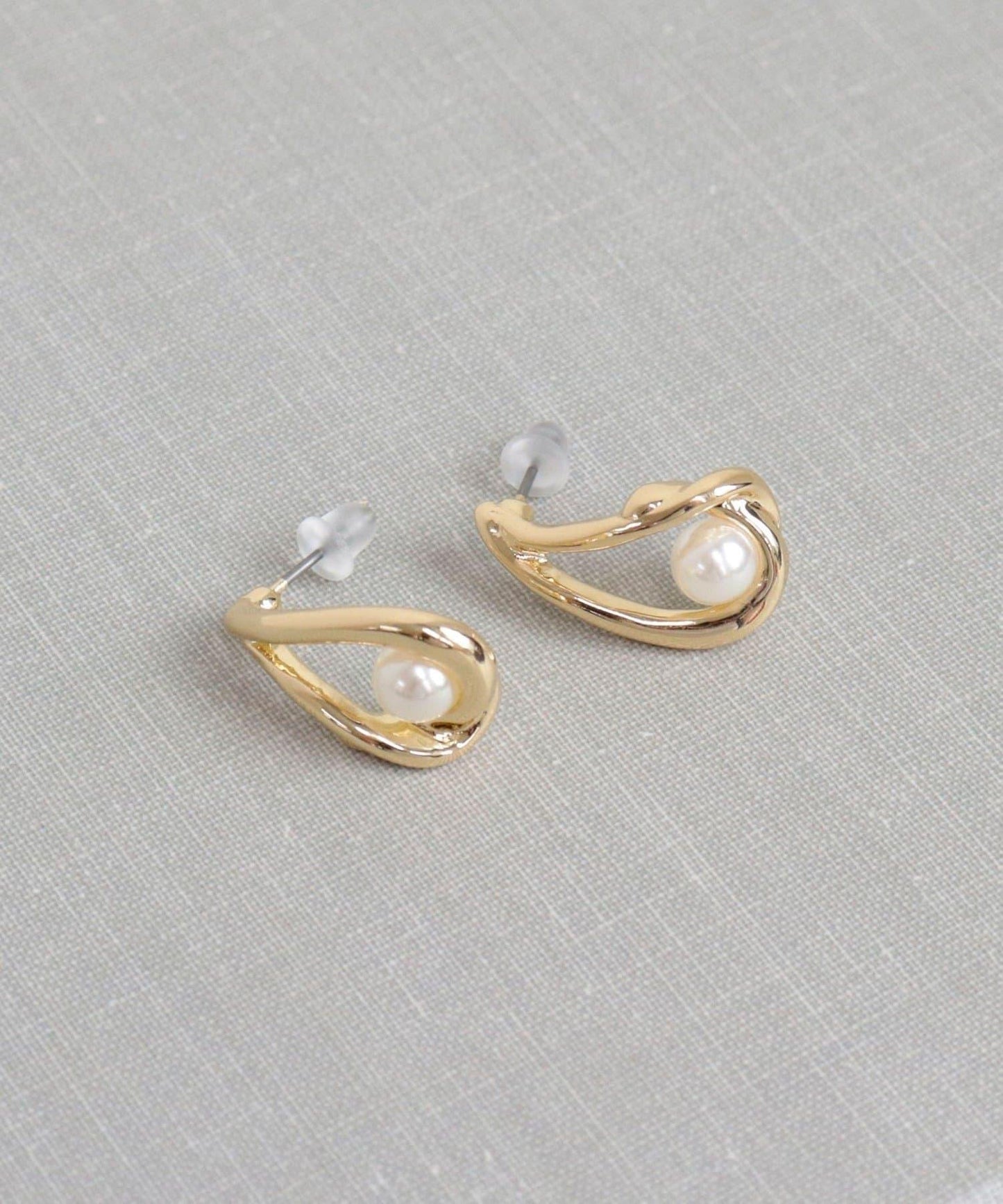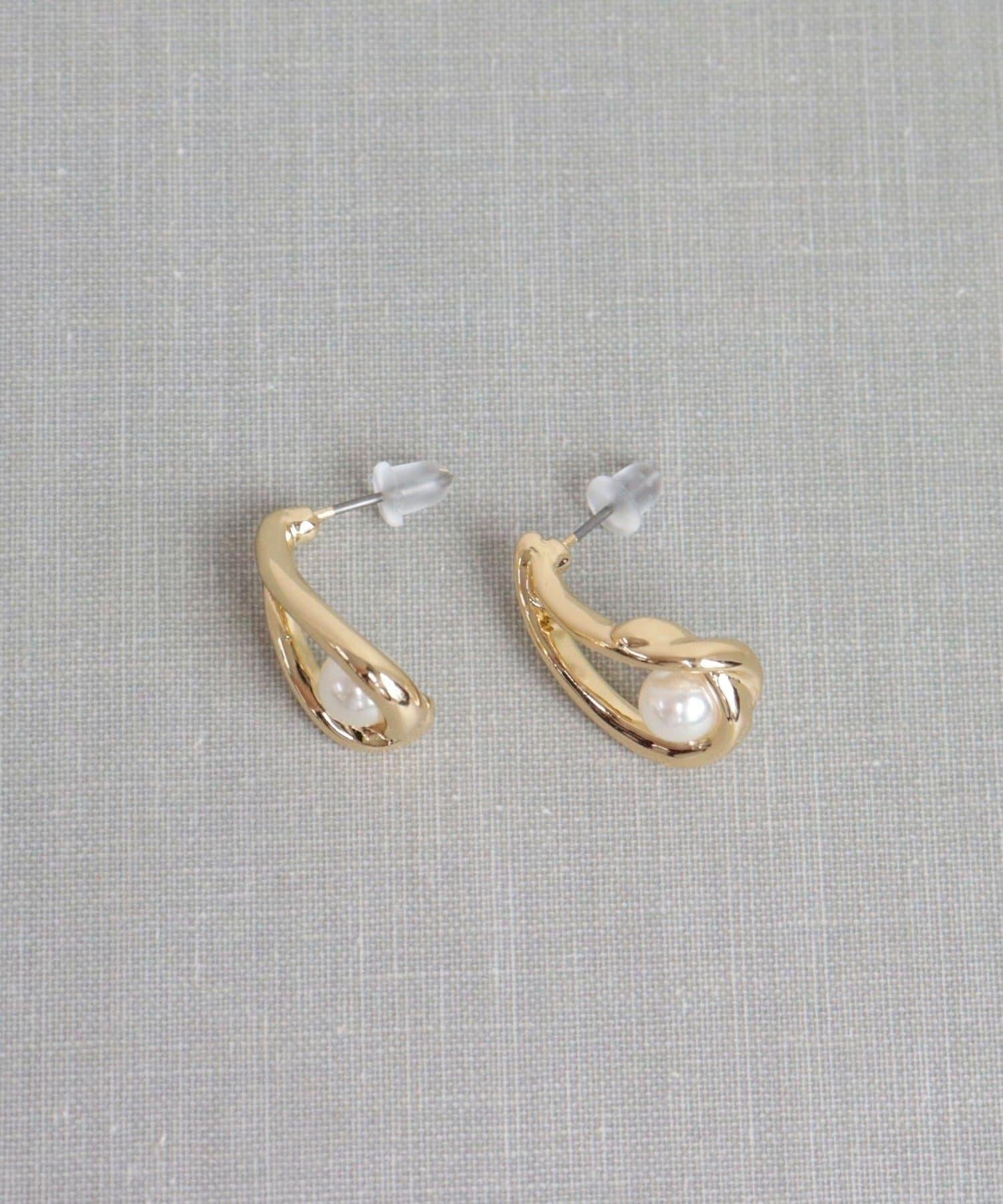 這款耳環設計典雅,帶有柔和曲線的水滴圖案和一顆珍珠。
