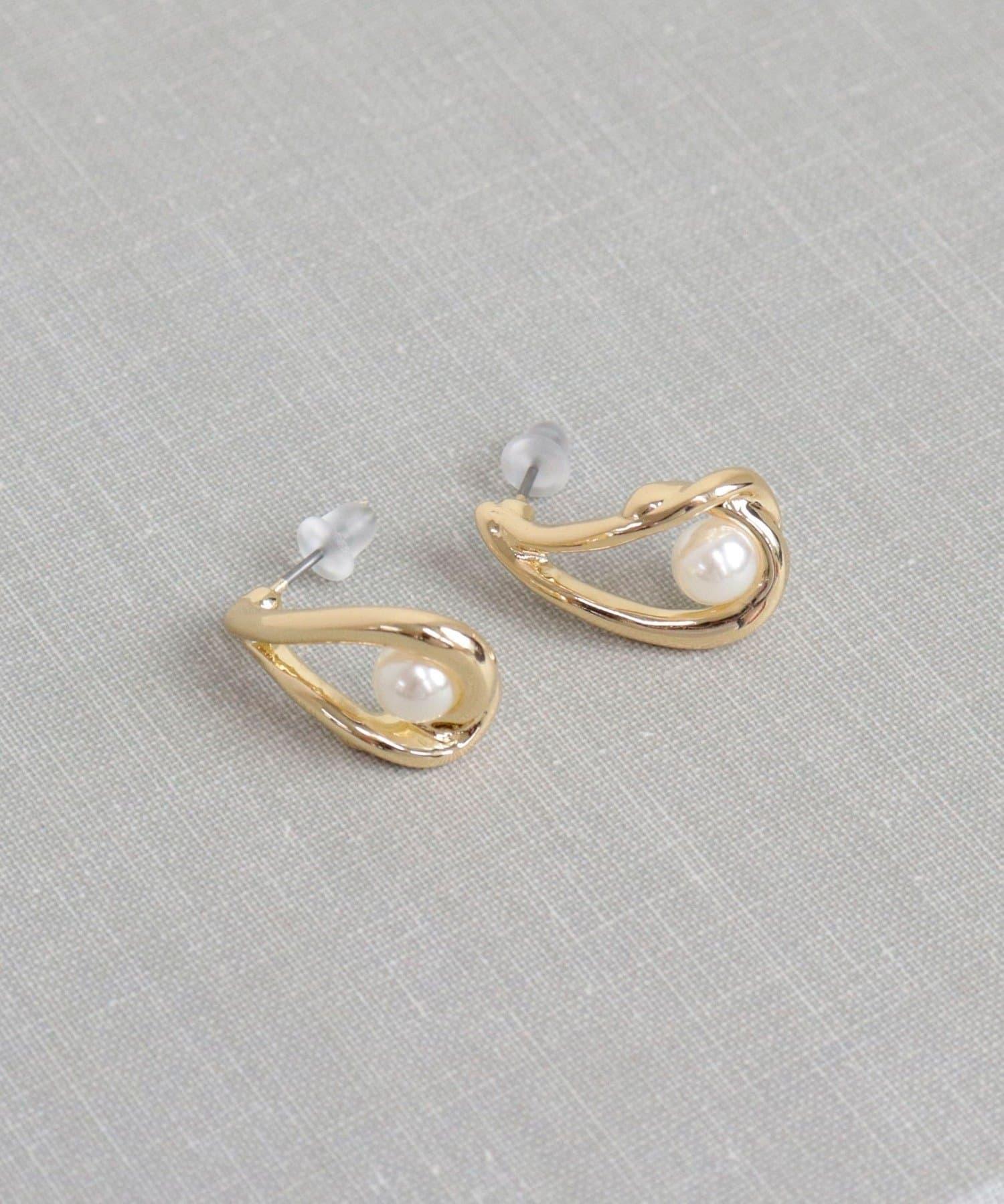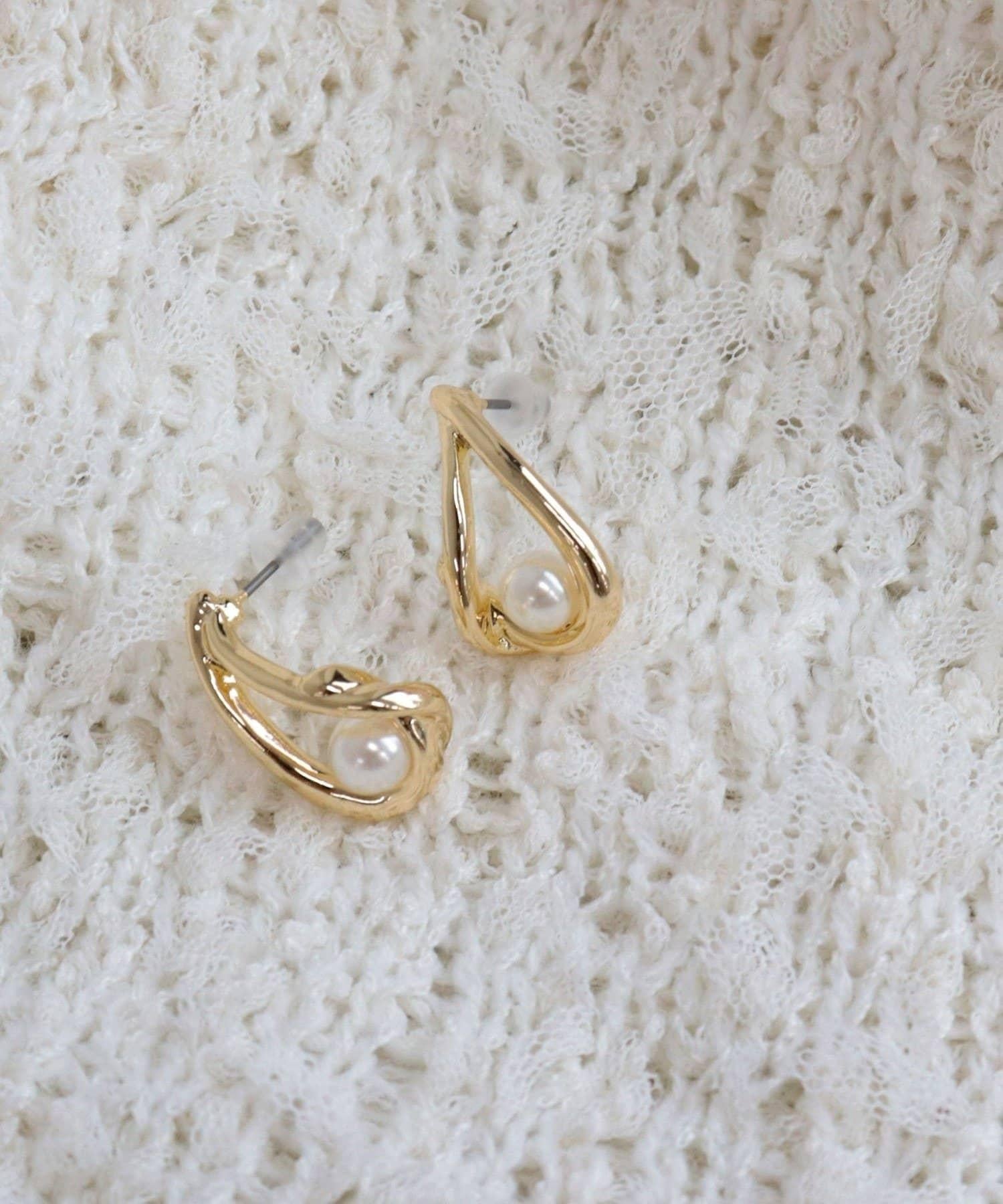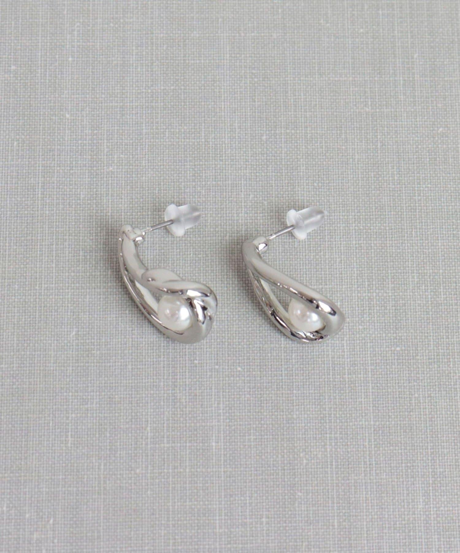 這款耳環設計典雅,帶有柔和曲線的水滴圖案和一顆珍珠。