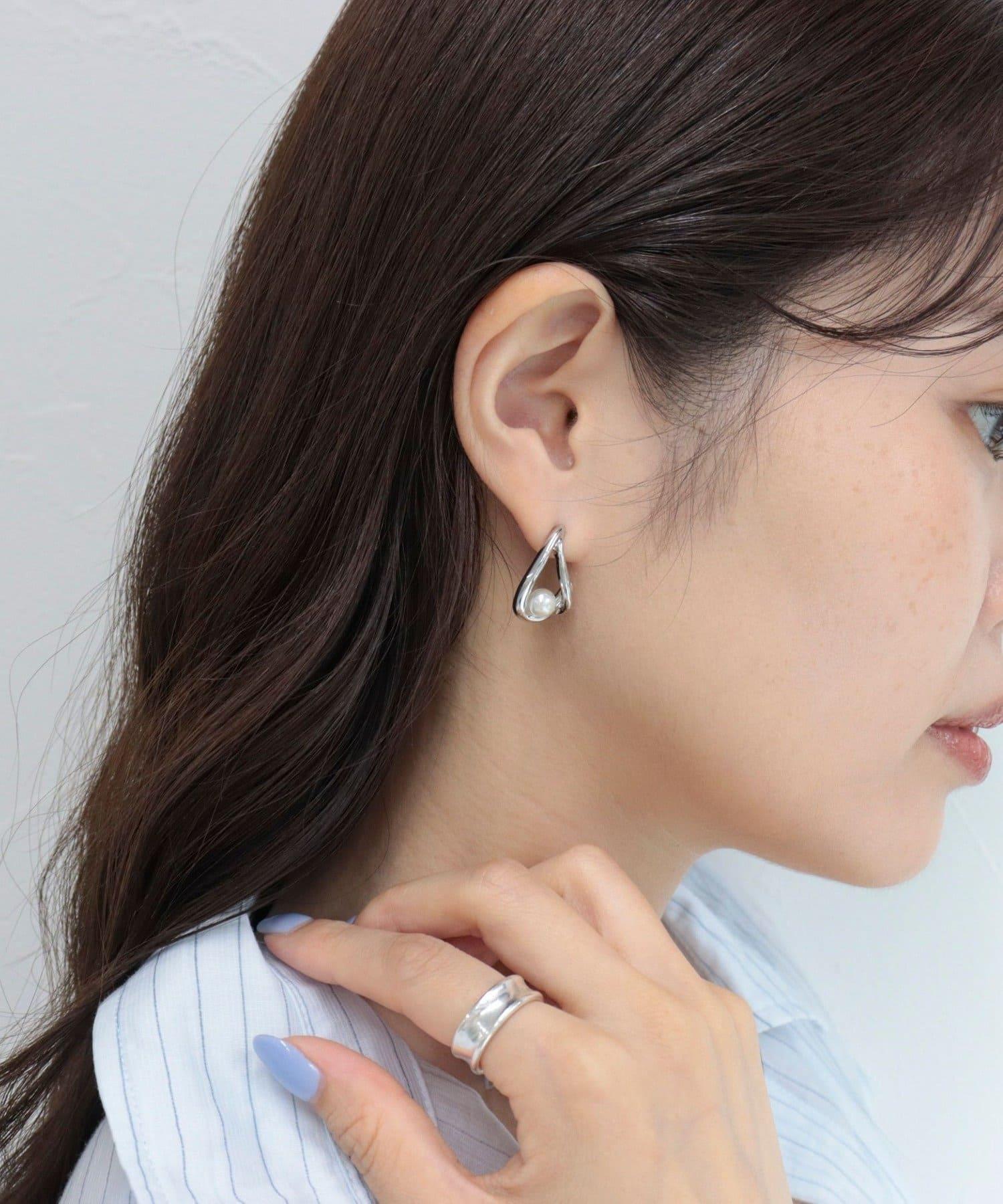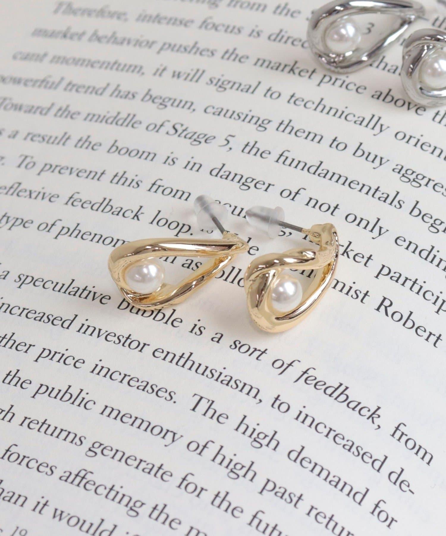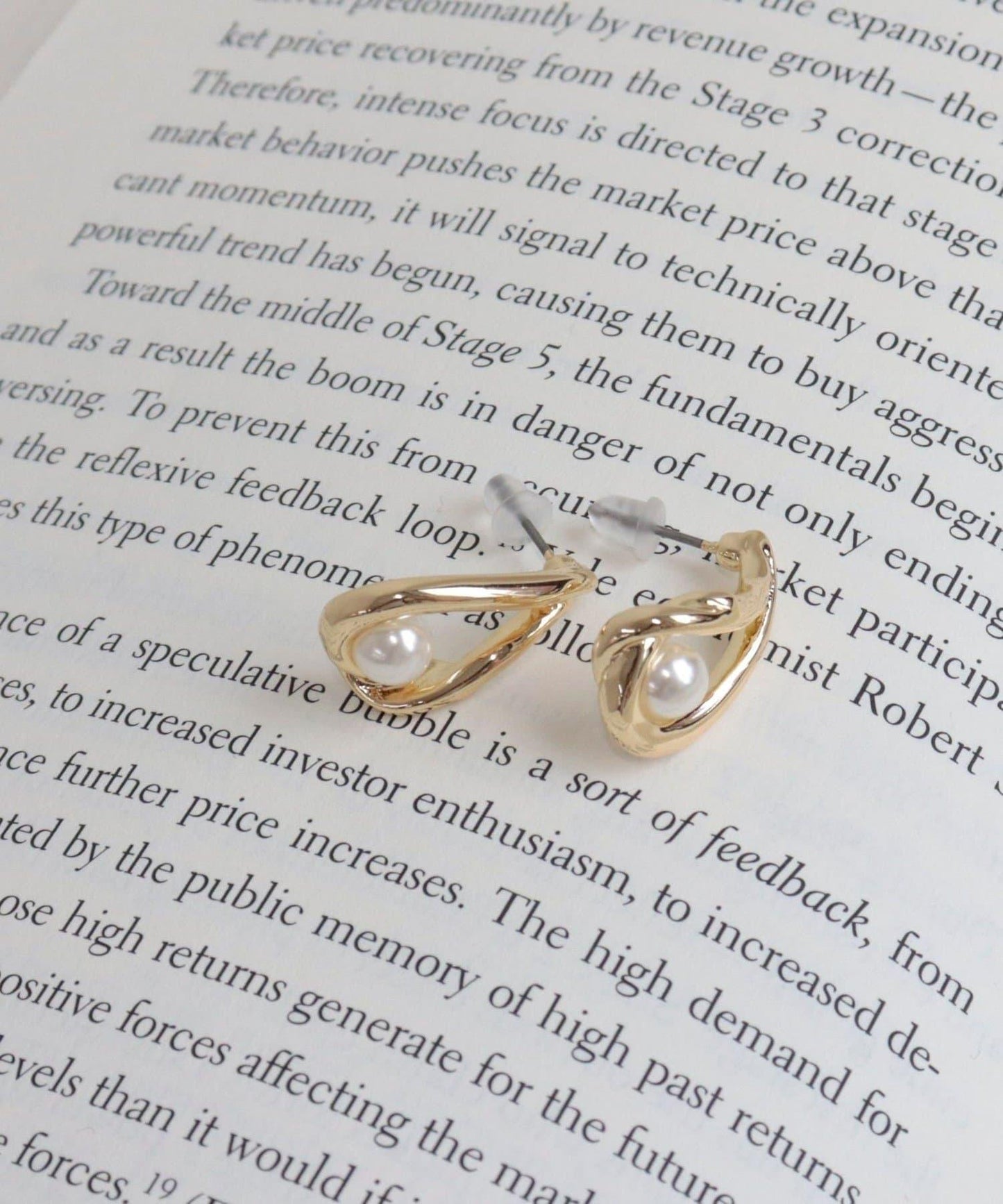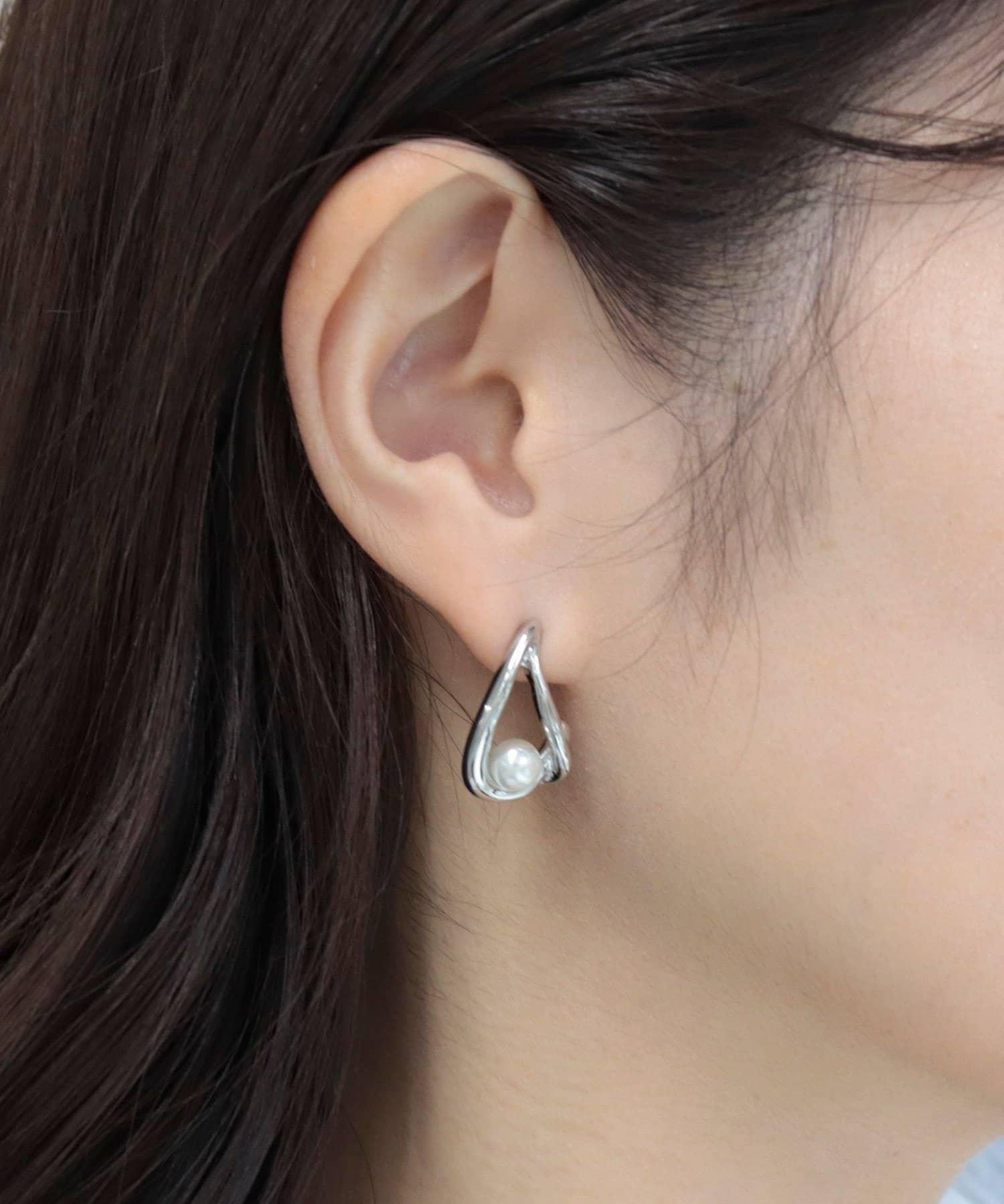 這款耳環設計典雅,帶有柔和曲線的水滴圖案和一顆珍珠。