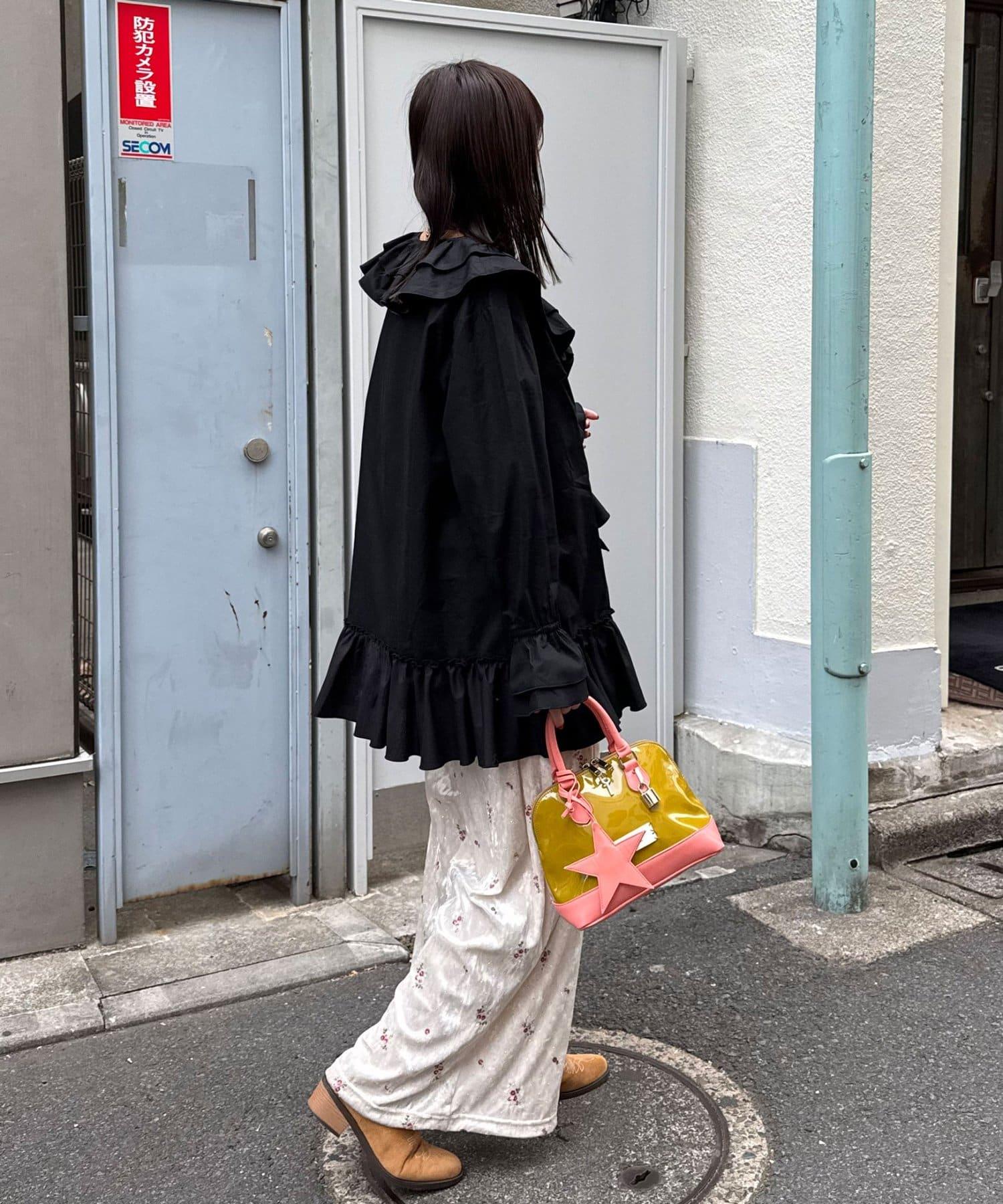 如果再搭配一件同樣材質的半身裙,就能完成少女風格的搭配。