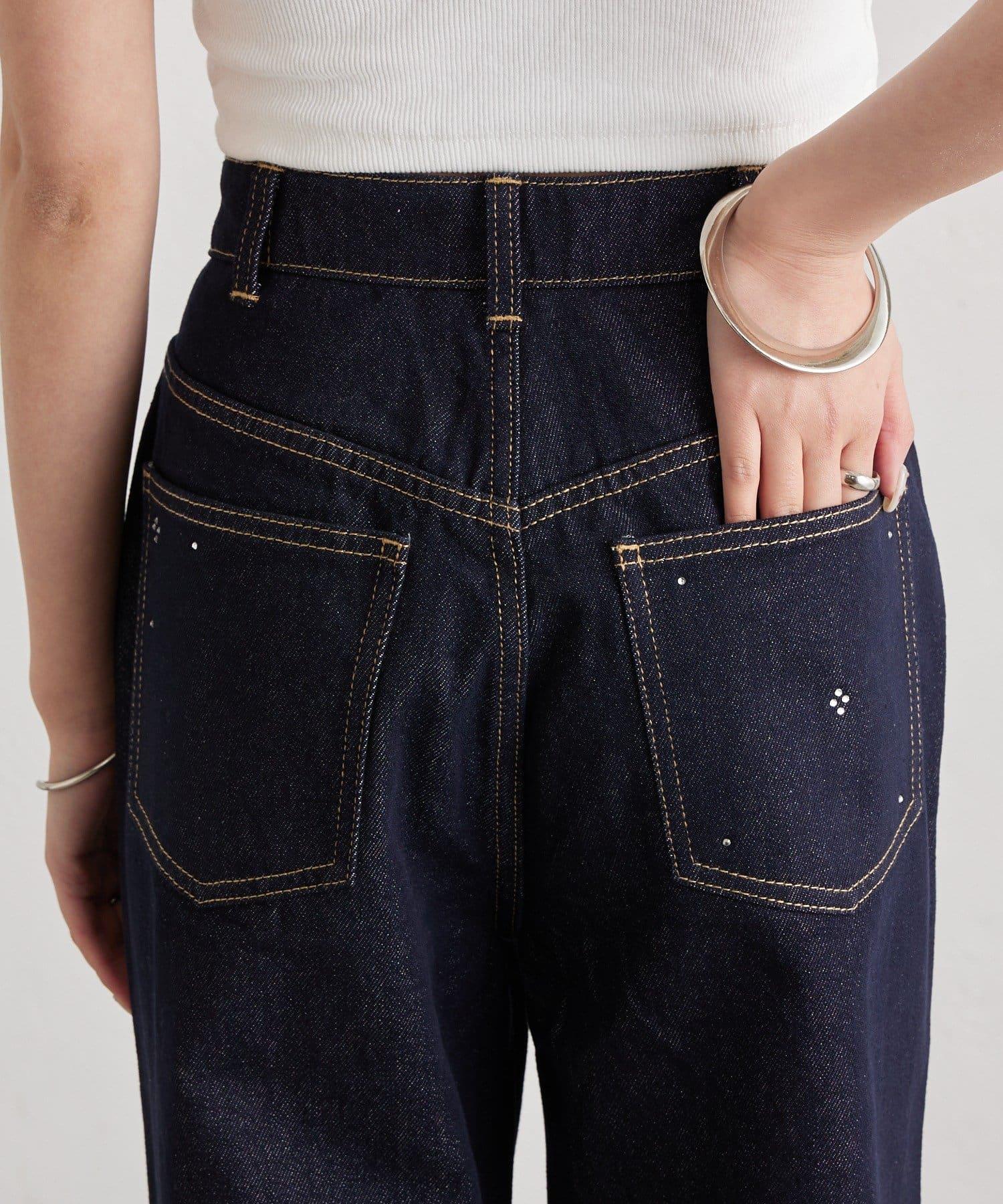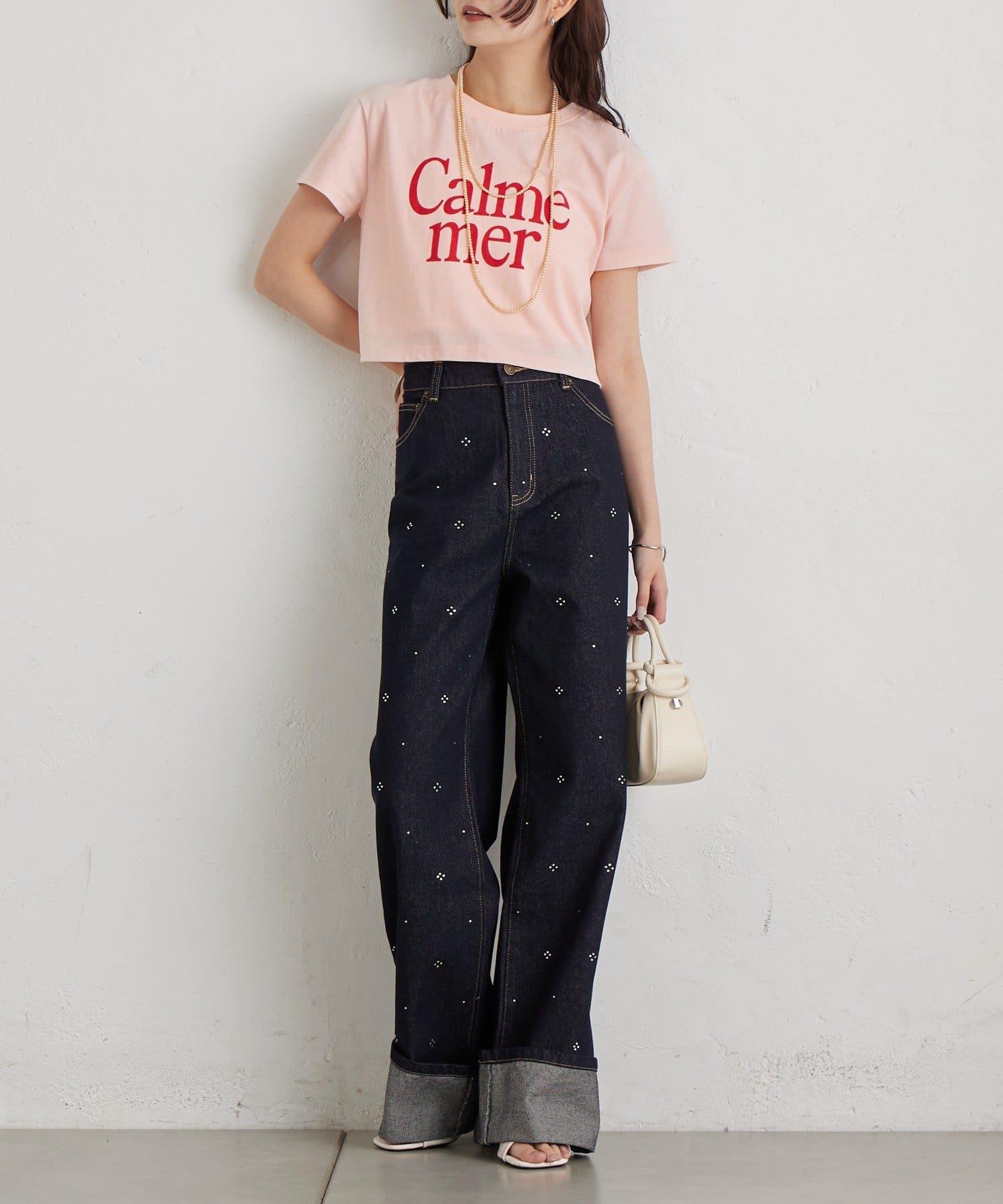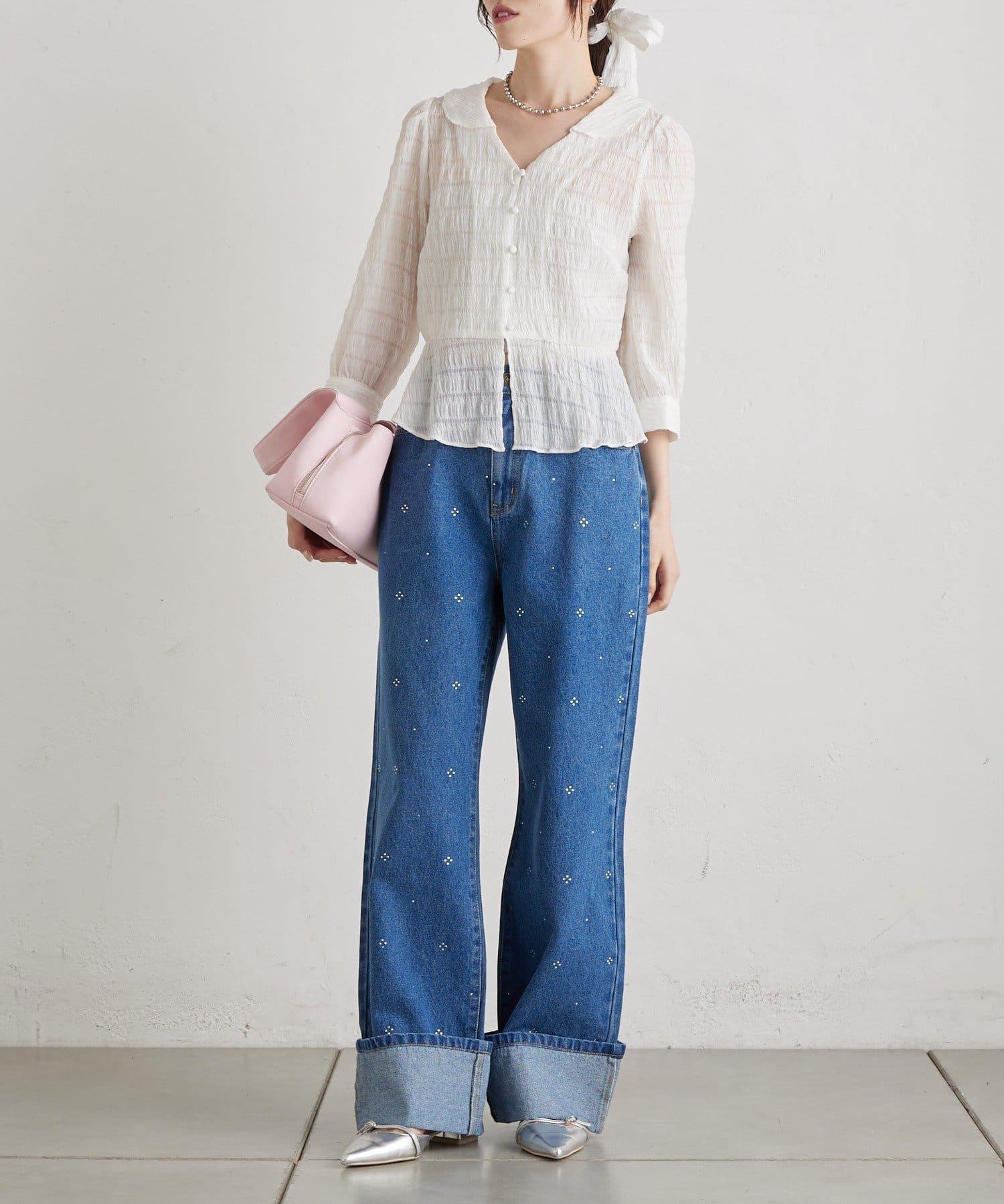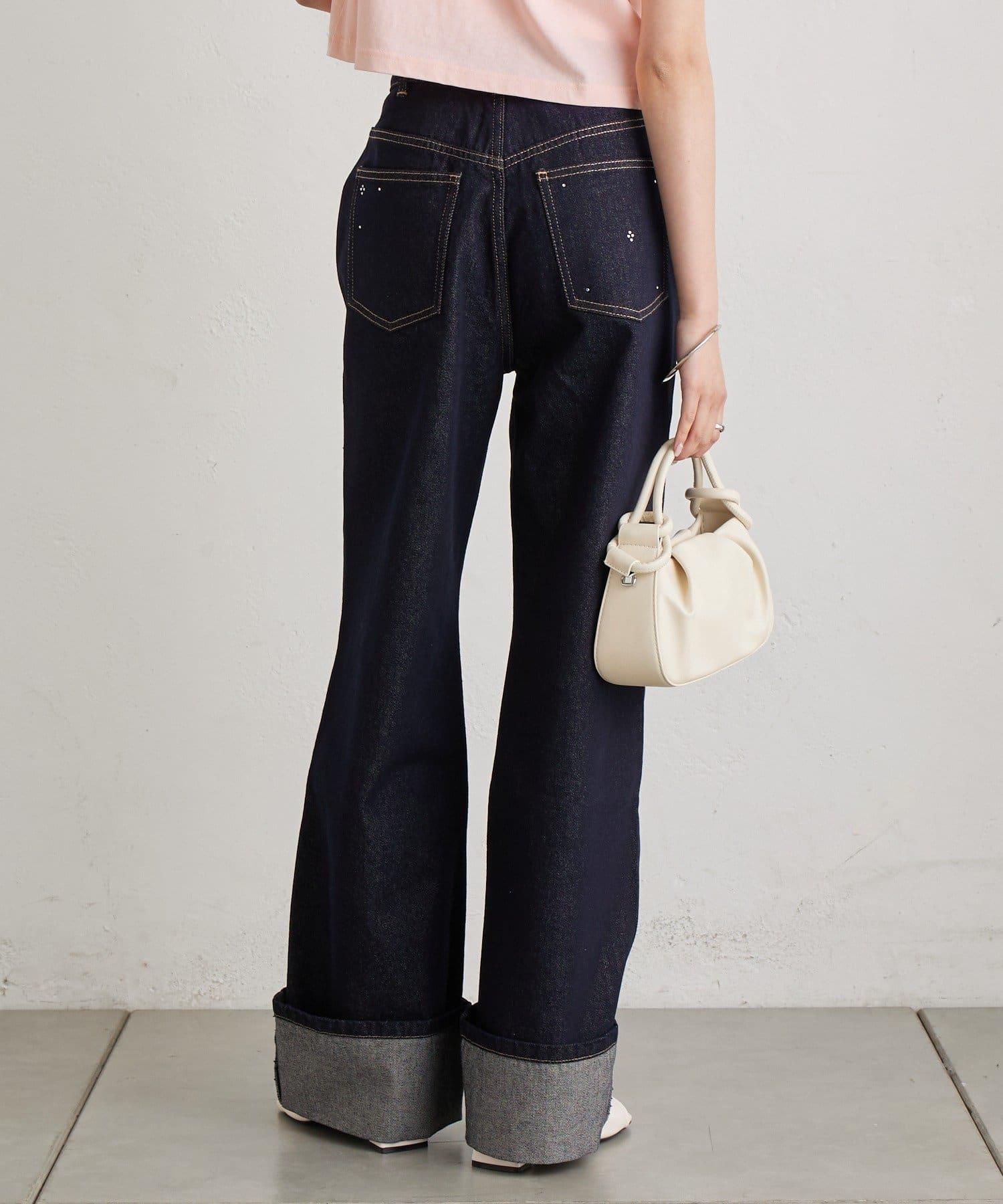 這款牛仔長褲既華麗又休閒,水鑽散落各處,恰到好處。