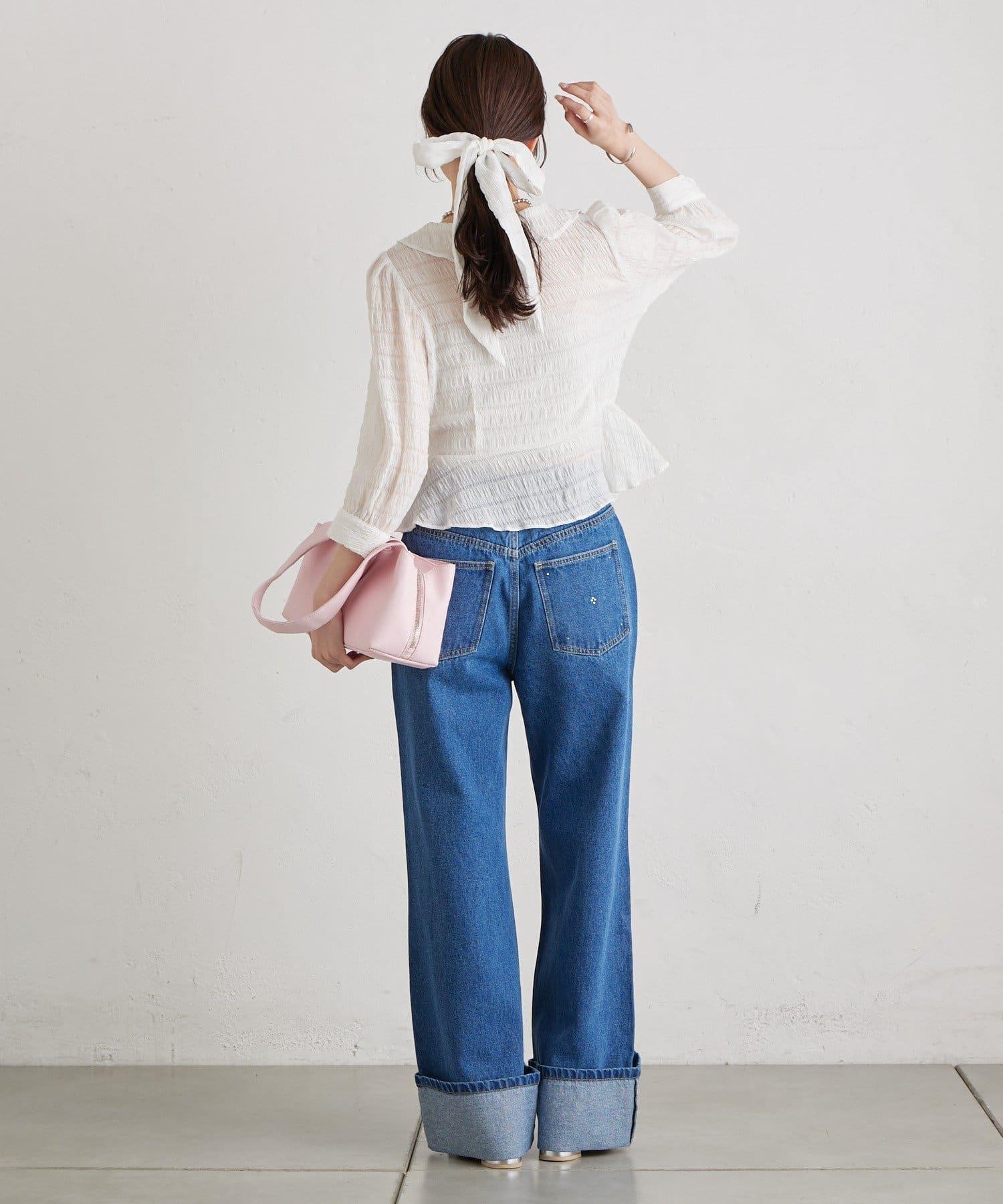 這款牛仔褲建議搭配簡單的上衣,讓牛仔褲成為主角。