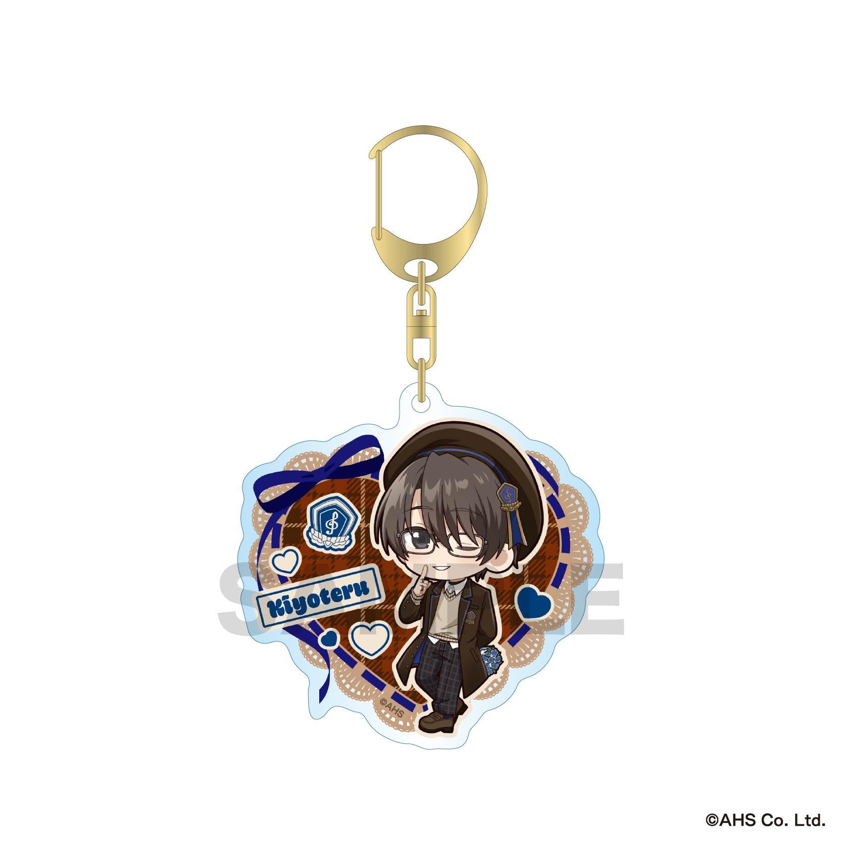 Kiyoteru Hizan 繪製的帶迷你手提插圖的亞克力鑰匙圈。