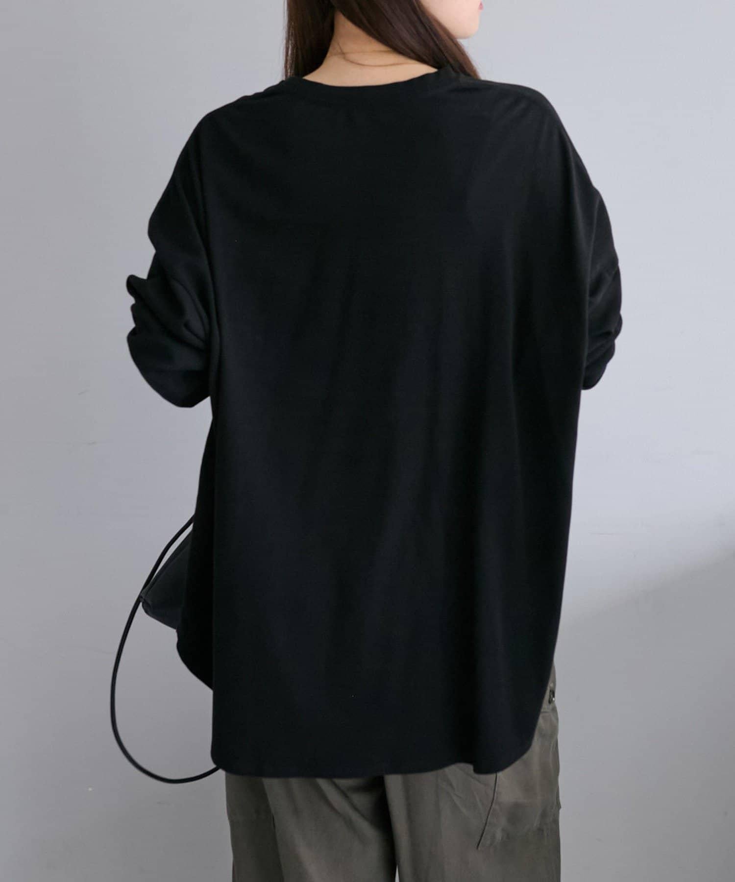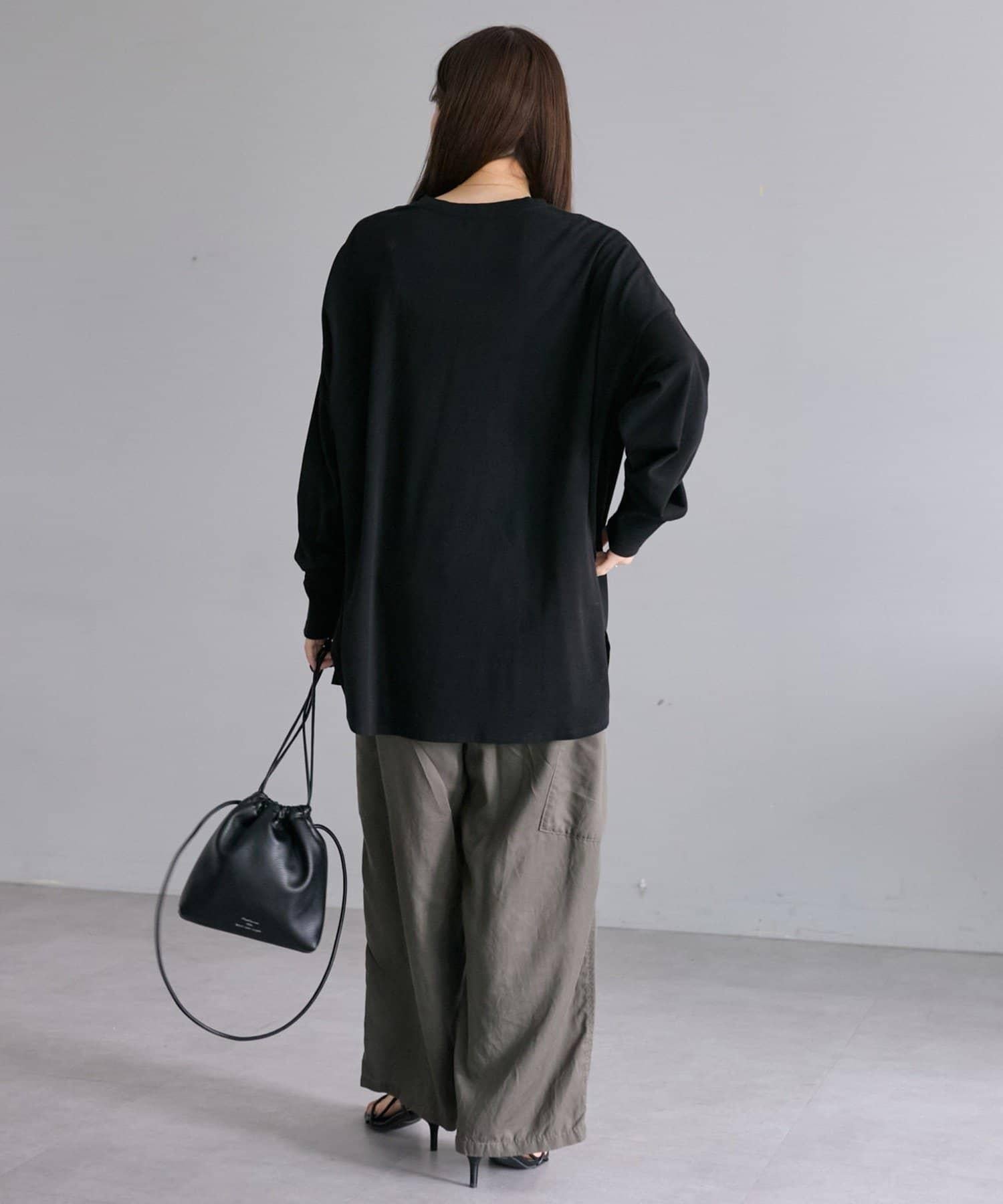 寬鬆的版型,完全遮住臀部的長度和寬鬆的寬度。