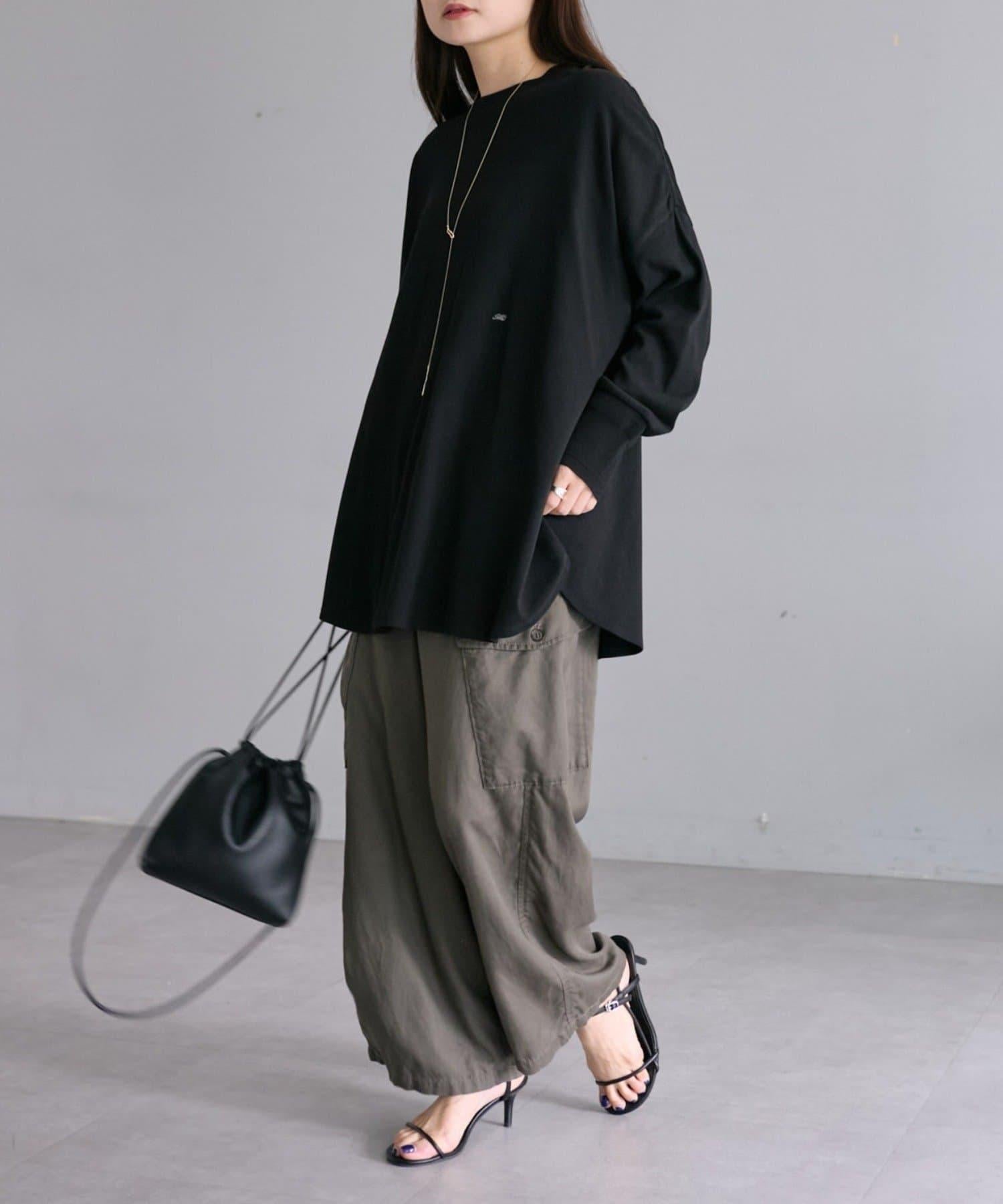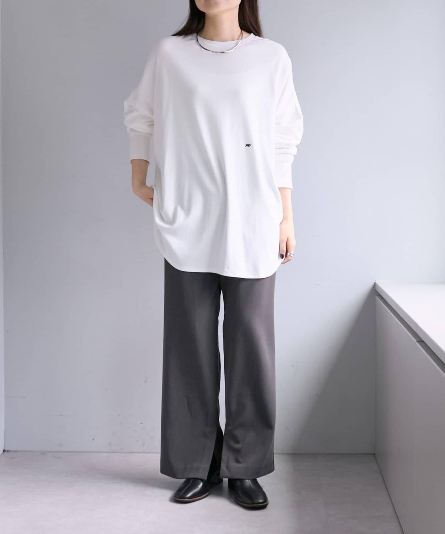 腰部的單點徽標刺繡成為休閒的點睛之筆,下襬的圓形剪裁增添了女性氣息。