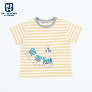 汽車印花貼布條紋T恤(80~90)
