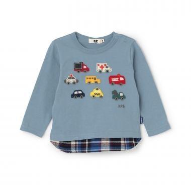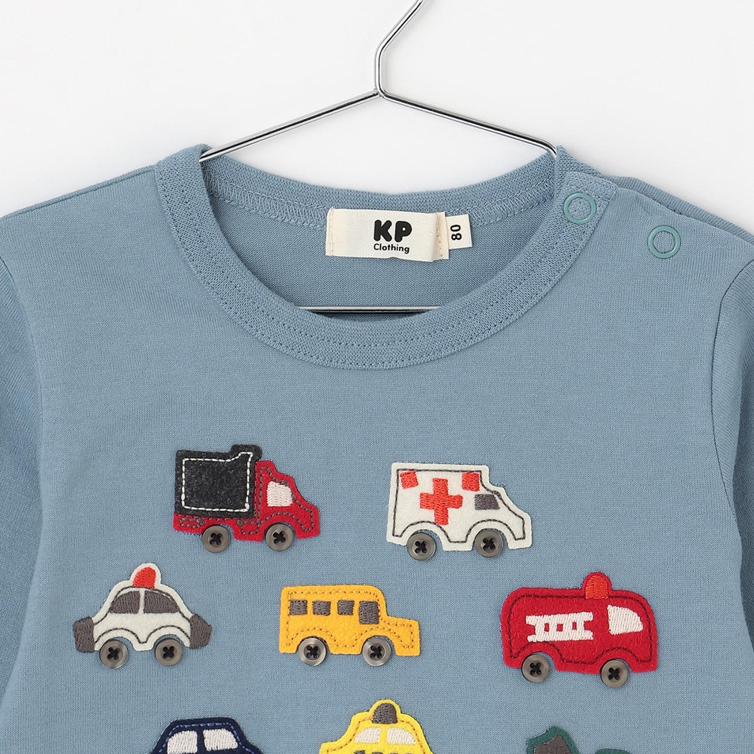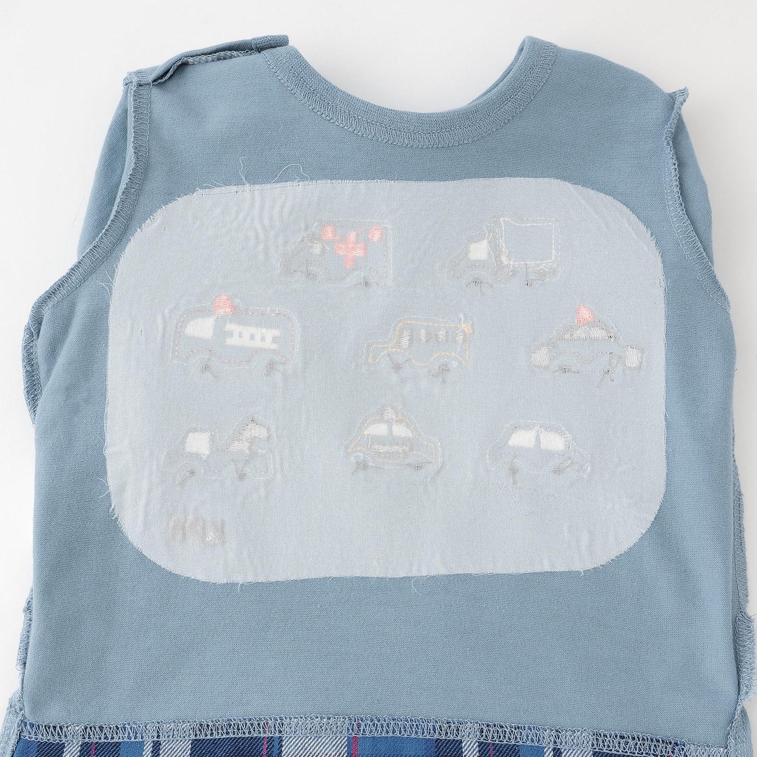 胸前各種工作車輛的彩色貼花和紐扣代表的輪胎給人一種塵土飛揚的手工感。