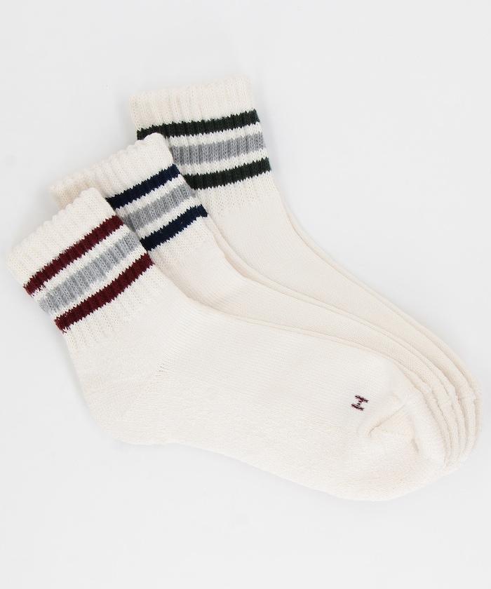 一套三雙帶有細微色彩線條的四分襪。