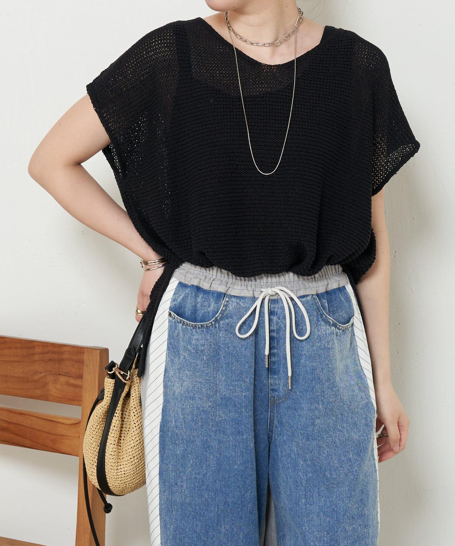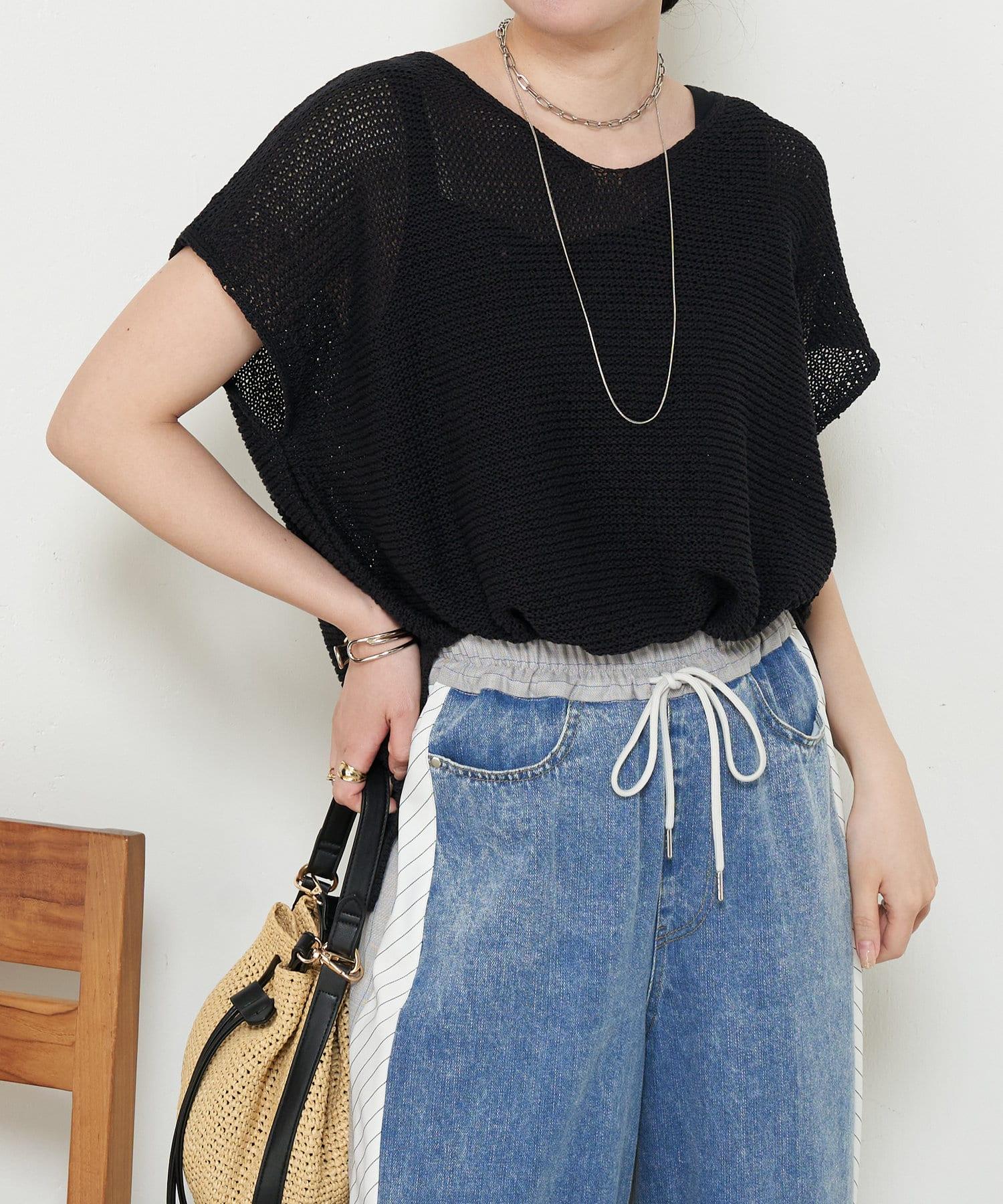 法式寬袖網眼針織衫