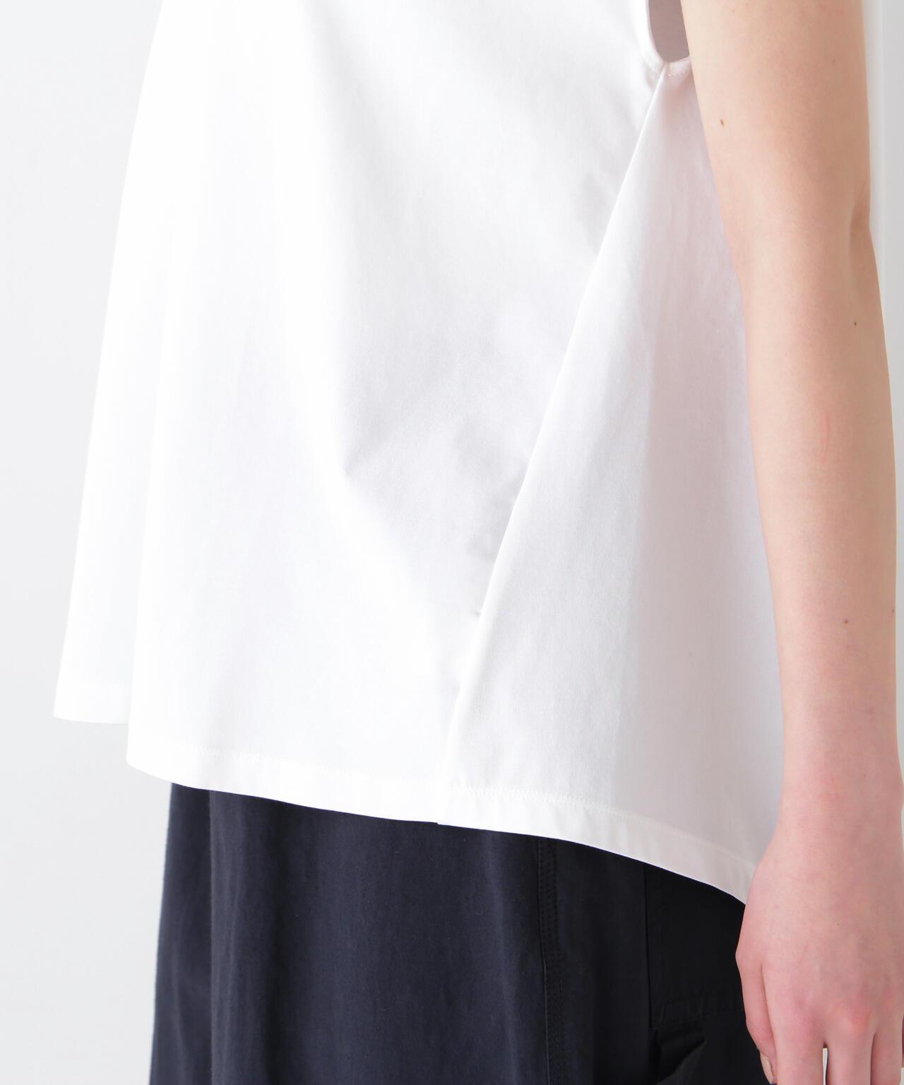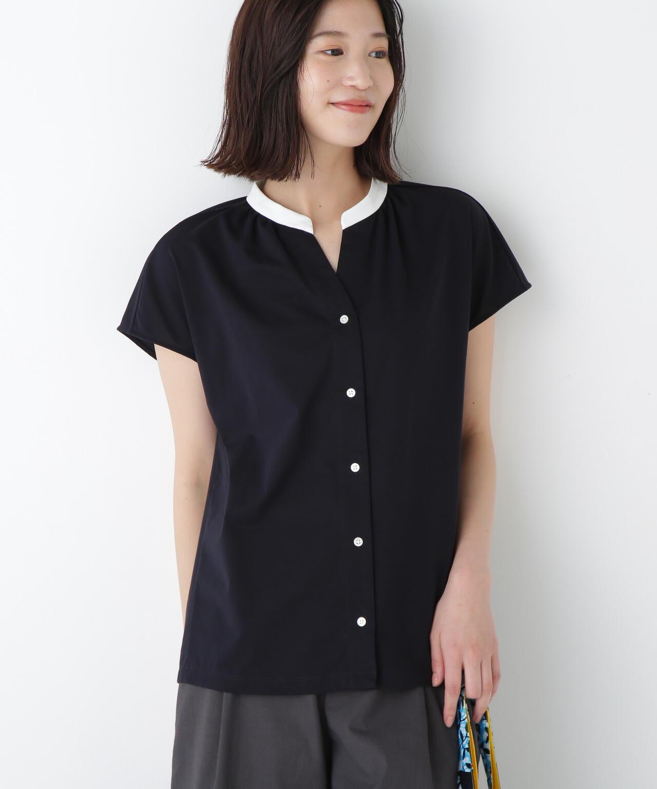 簡潔、舒適、襯衫式的剪裁和縫製 [設計要點] 這款法式袖船長襯衫由針織物製成,就像梭織襯衫一樣。領子由相同的材料製成,顏色與教士襯衫相似。上衣由高規格電鍍針織布製成,表面如梭織般緊密,觸感微涼。它的另一個特點是觸感輕盈,接觸時有涼爽的感覺。襯衫式的剪裁和縫紉面料穿著舒適,手感整潔,適合上班和下班穿著。