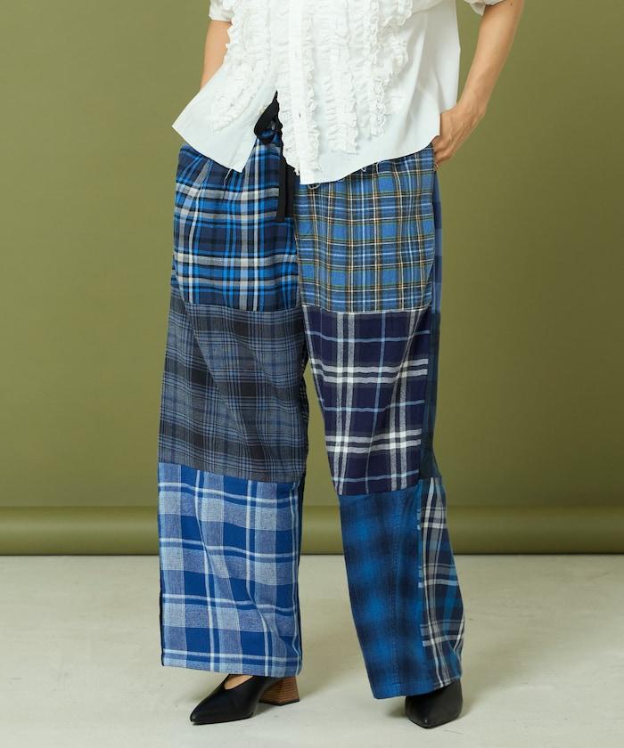 這條褲子是由五件復古法蘭絨襯衫經過拆卸、拼接和重構後製成的。