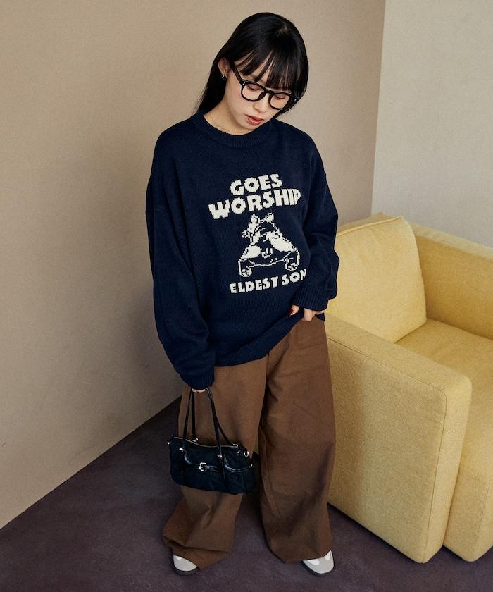 俏皮的針織衫,獨特的法國鬥牛犬背部提花設計。