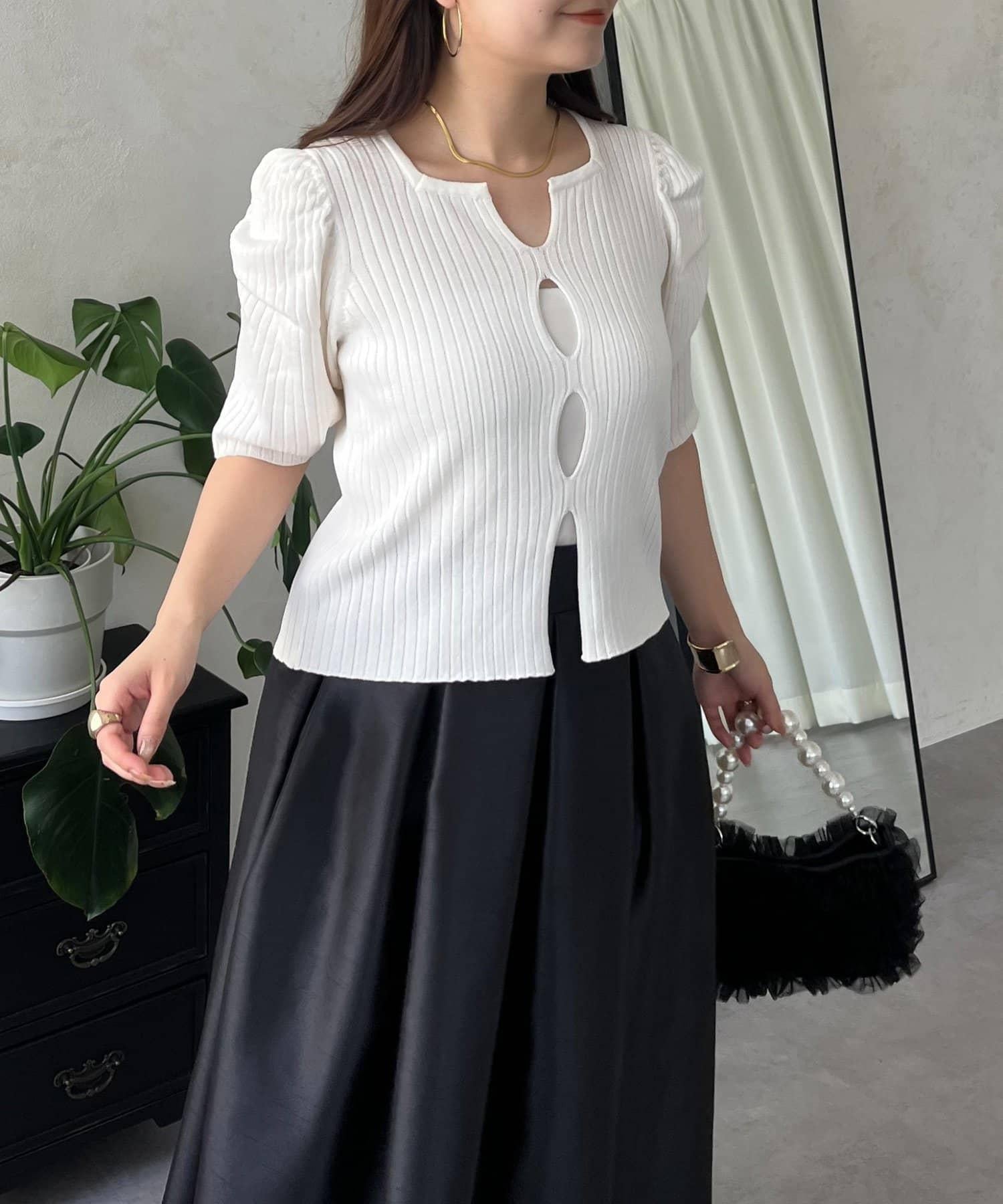 羅紋針織,展現成熟肌膚。