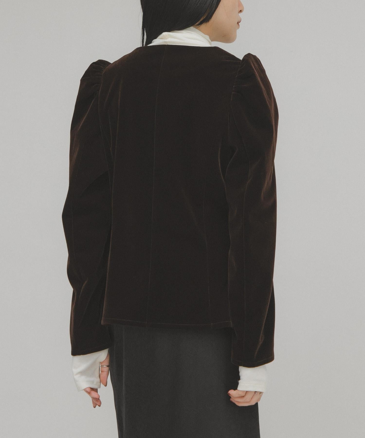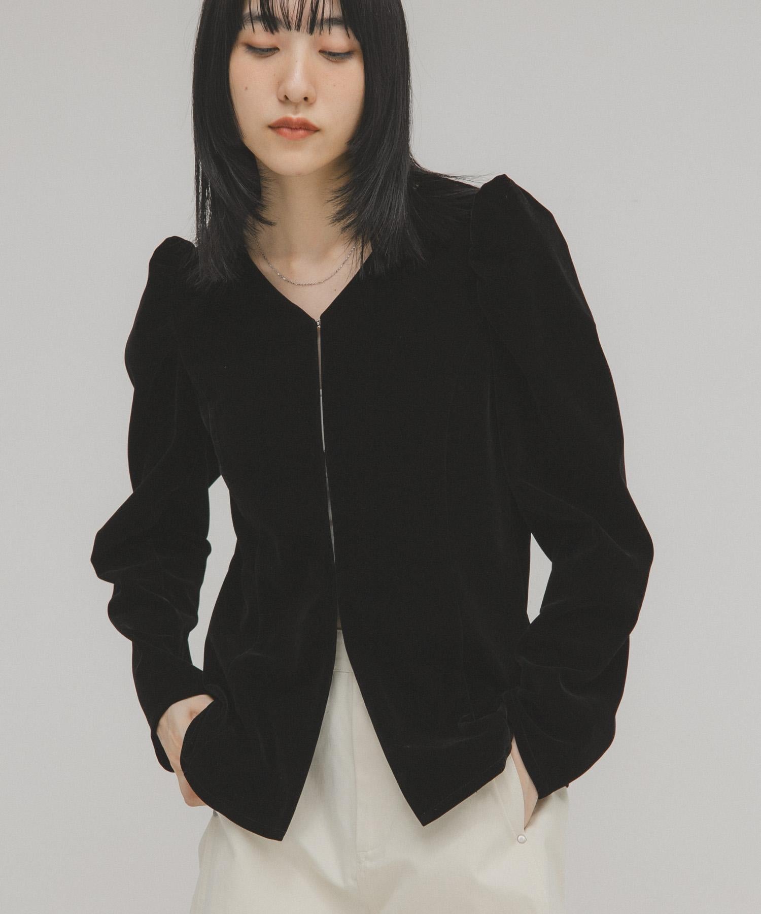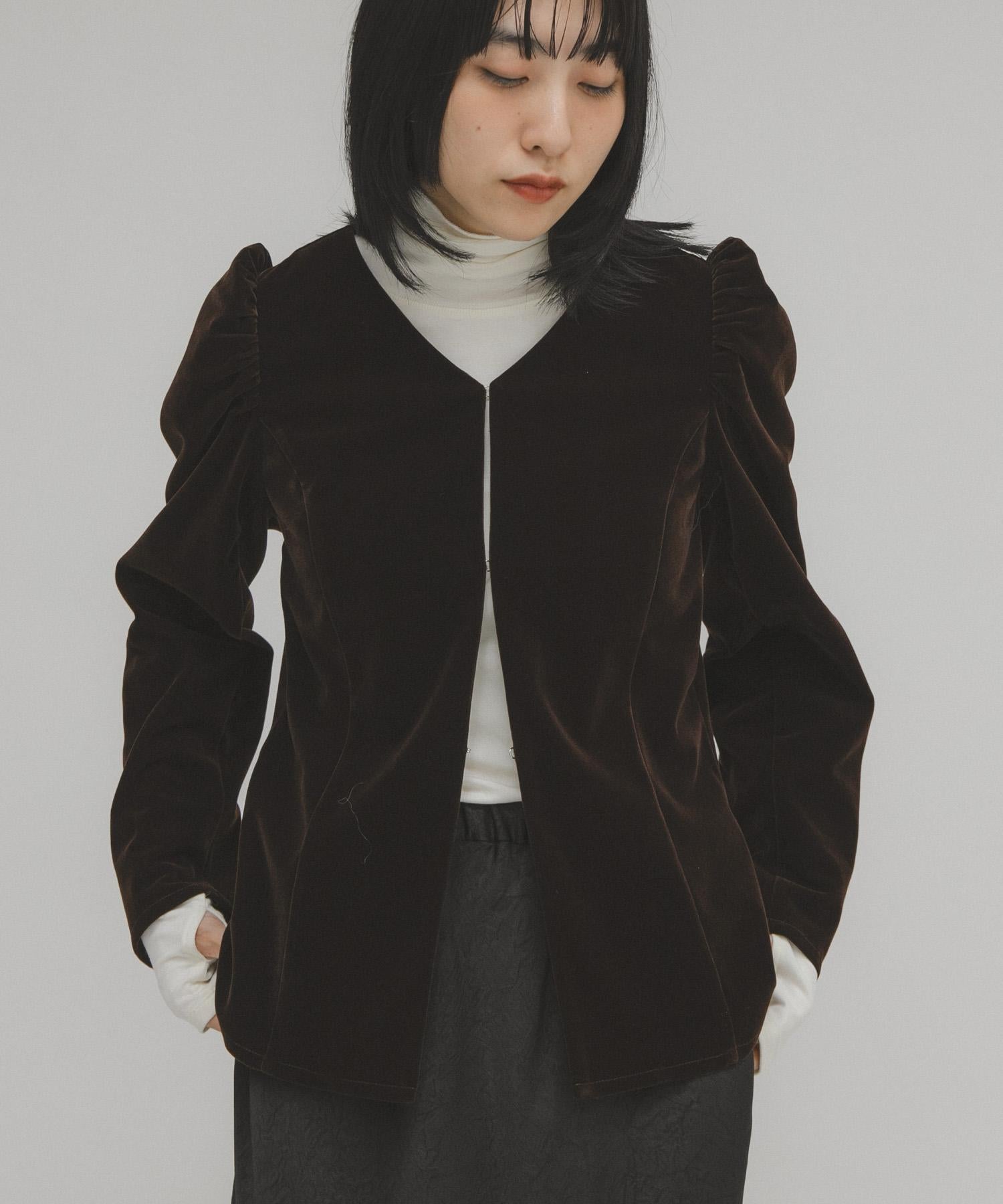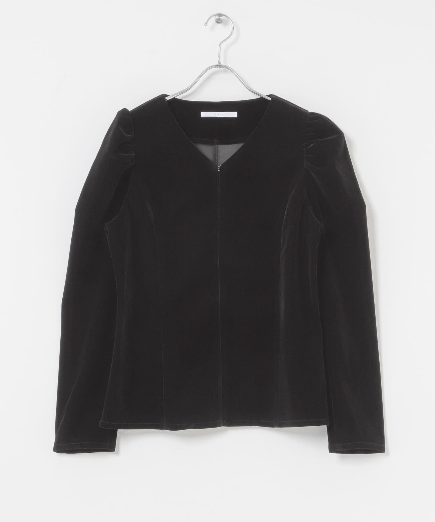 這款絲絨上衣蓬鬆的袖子和略微收腰的衣身,盡顯女性魅力。面料結實而富有彈性,穿著舒適。正面有精緻的鉤扣設計,也可作為外衣穿著。