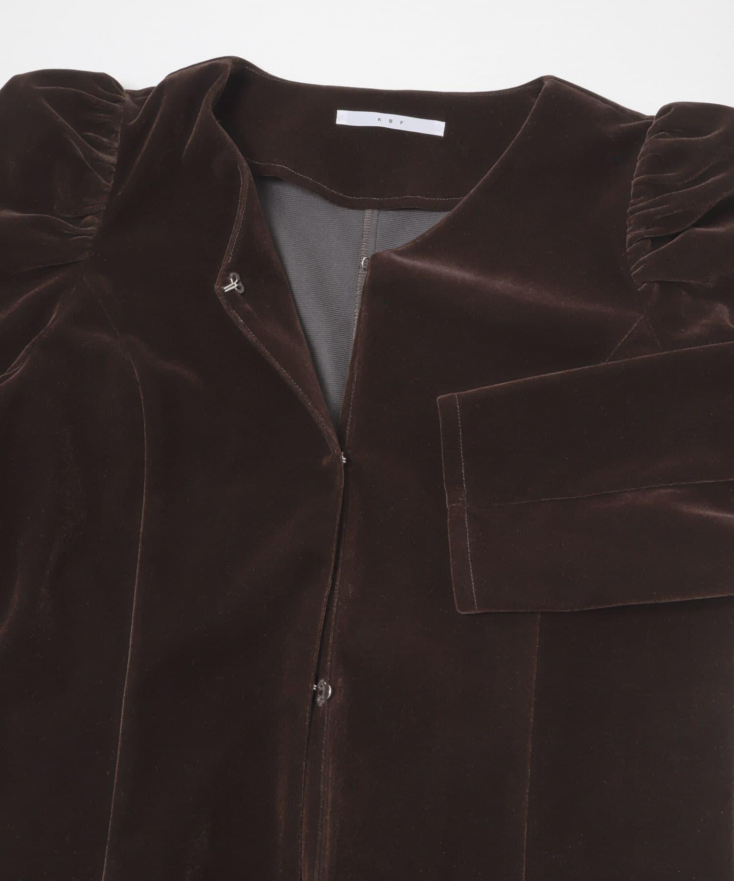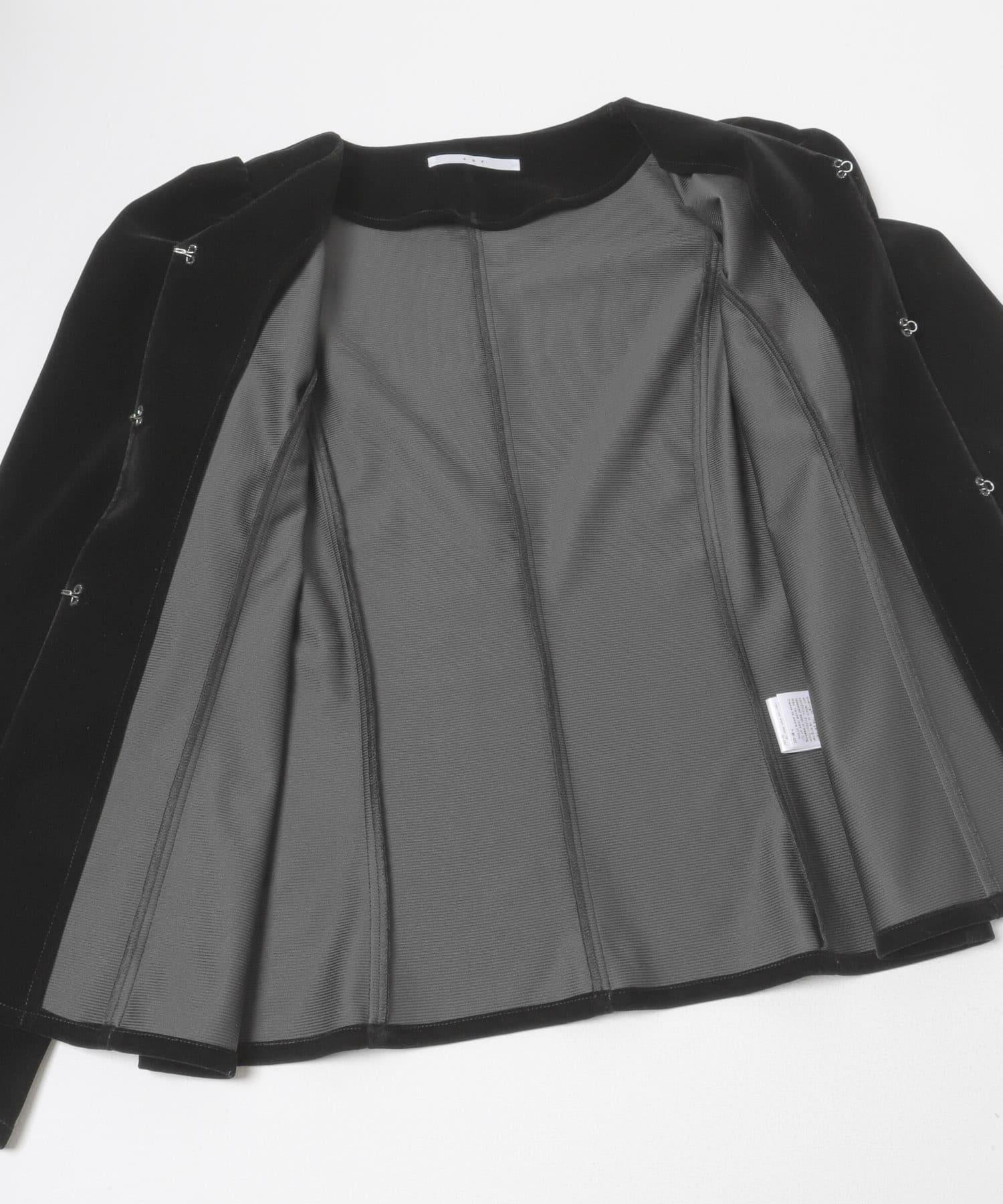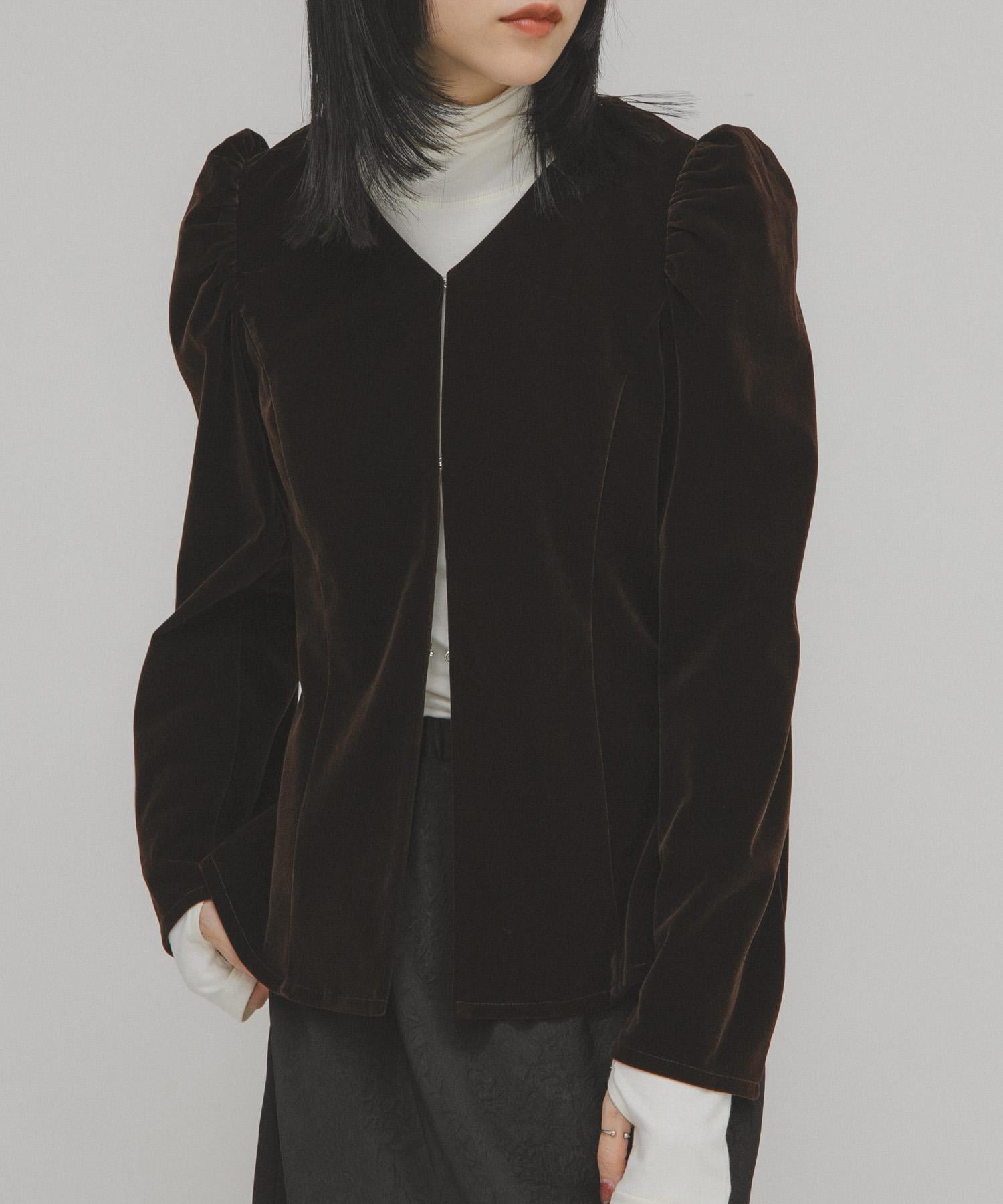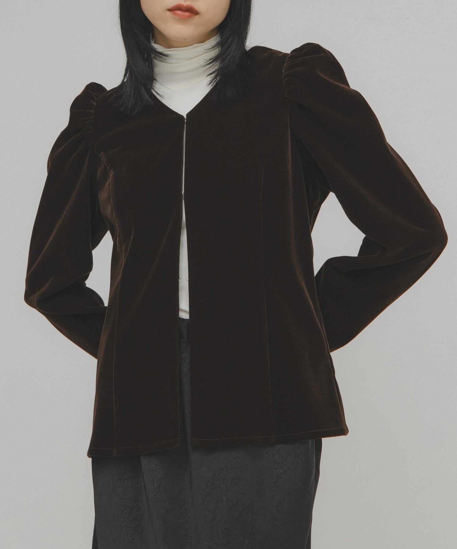 這款絲絨上衣蓬鬆的袖子和略微收腰的衣身,盡顯女性魅力。面料結實而富有彈性,穿著舒適。正面有精緻的鉤扣設計,也可作為外衣穿著。