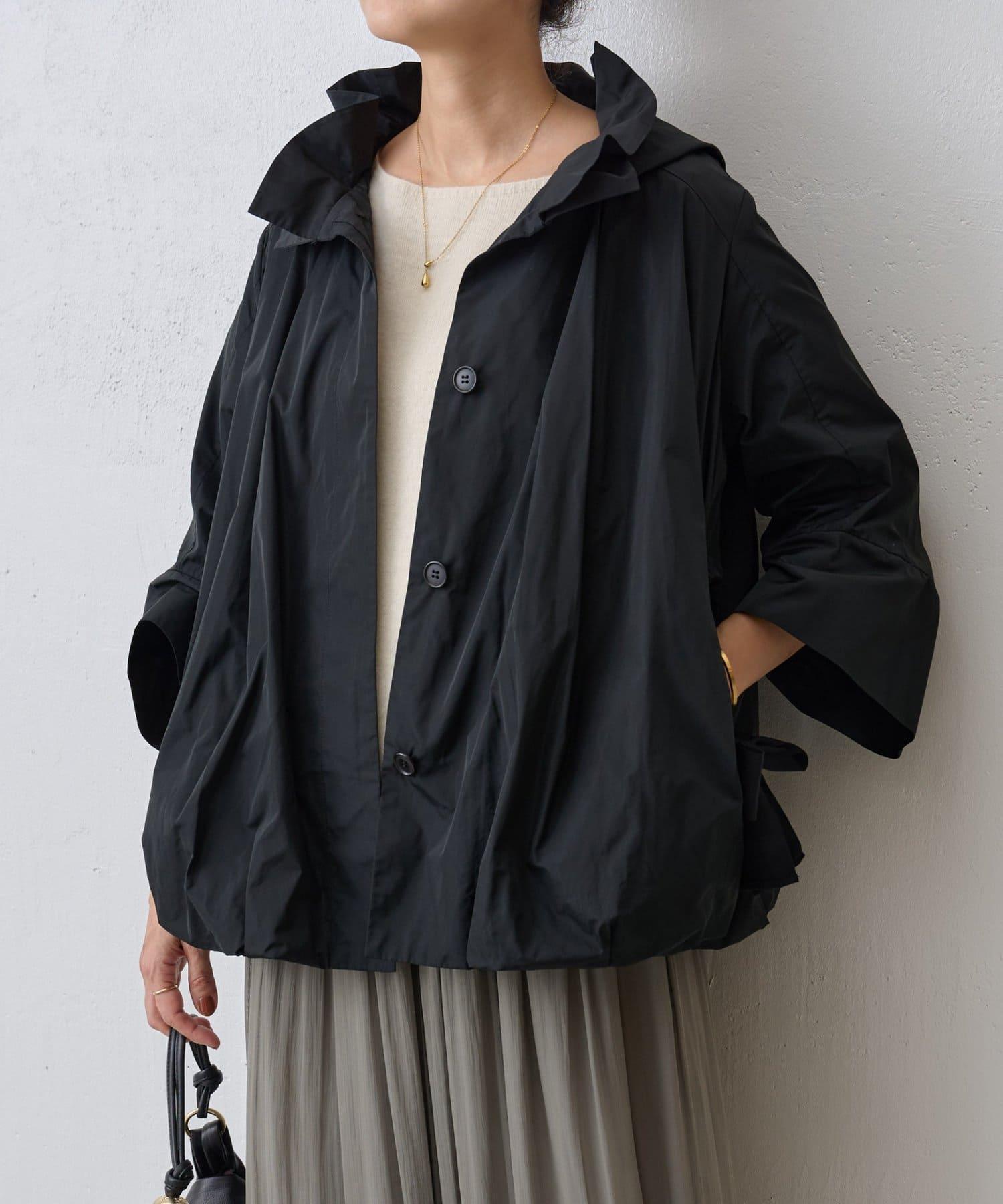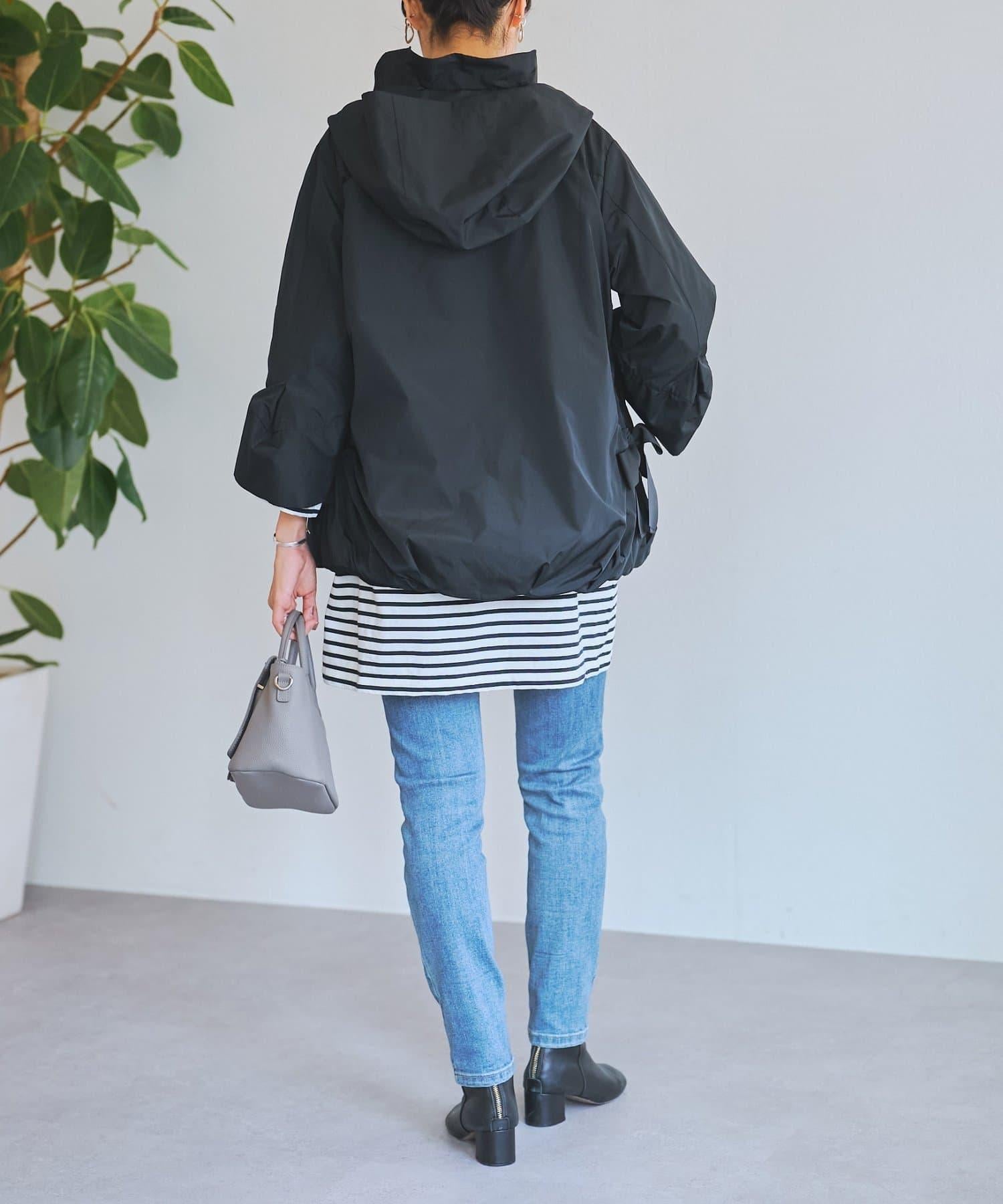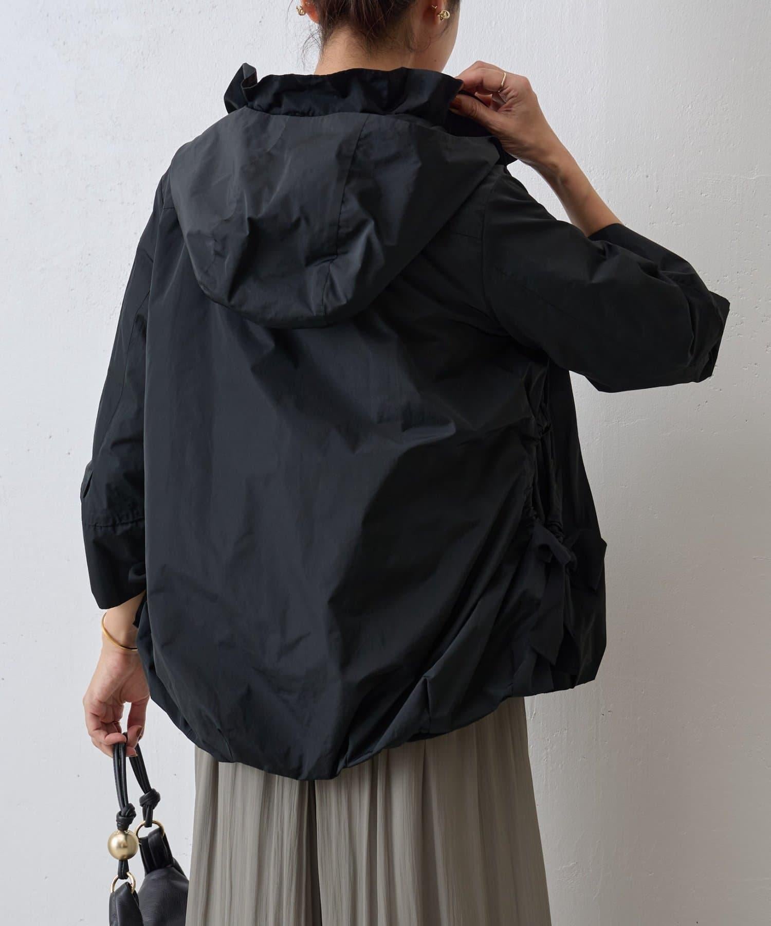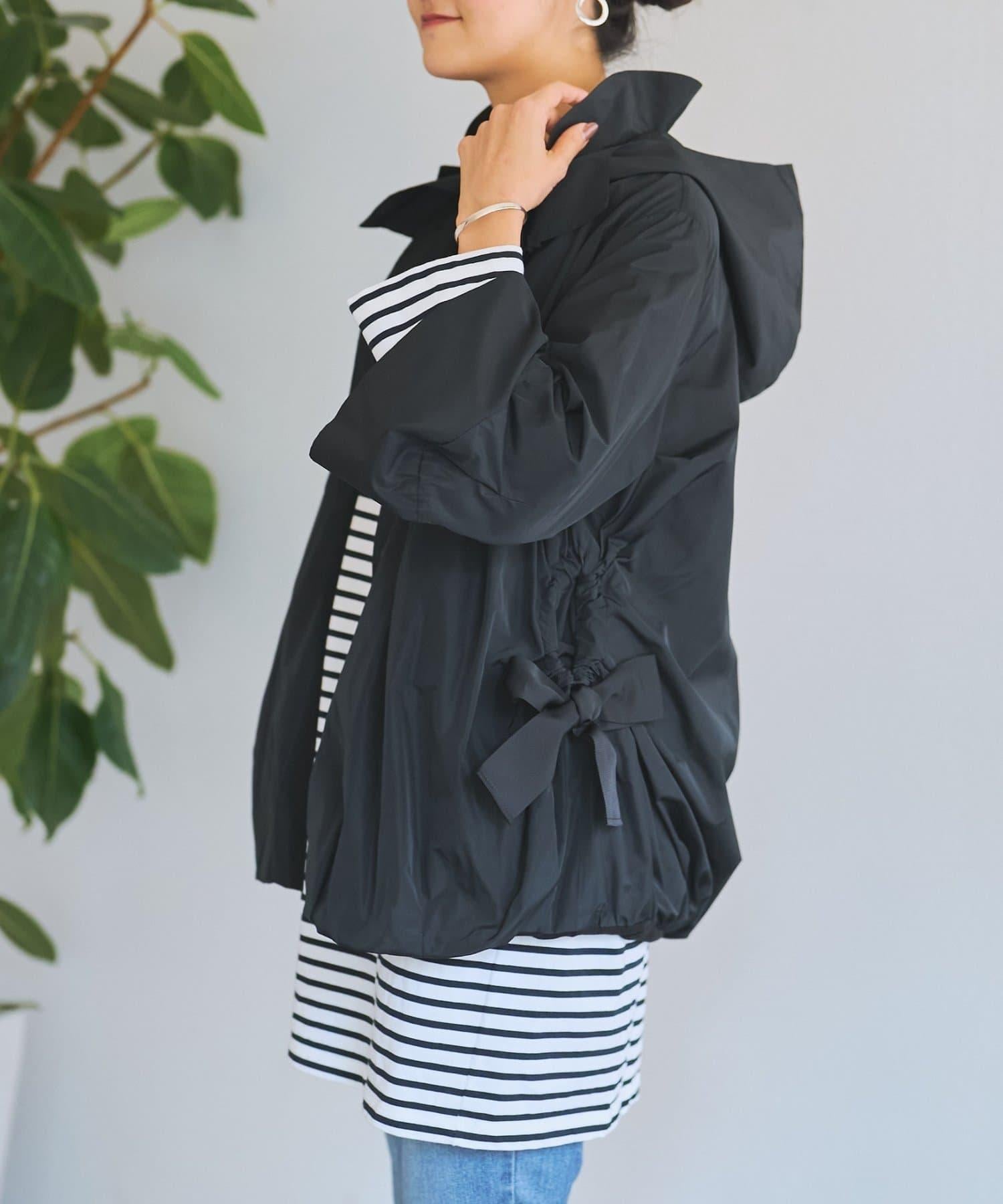 圓潤版型和側邊緞帶設計的女式罩衫。
