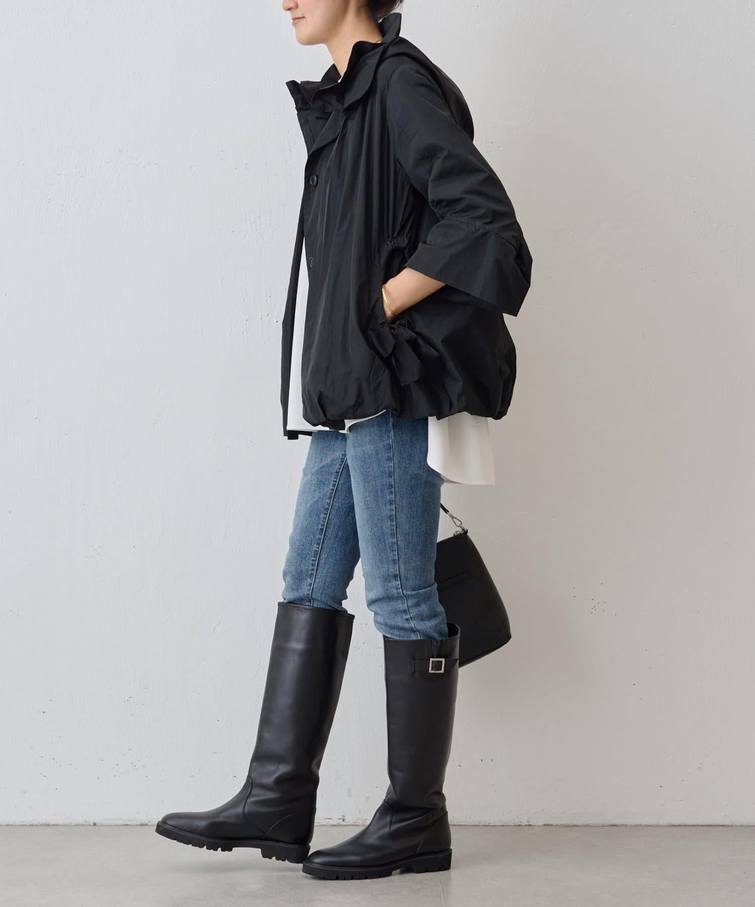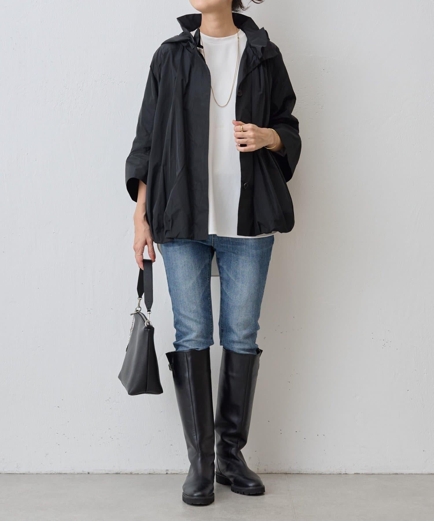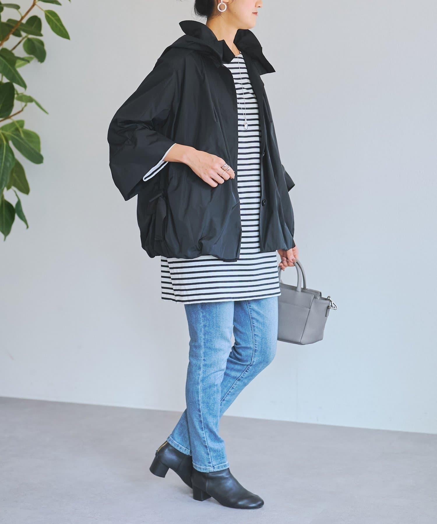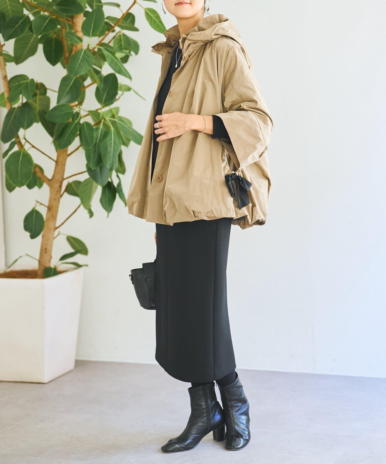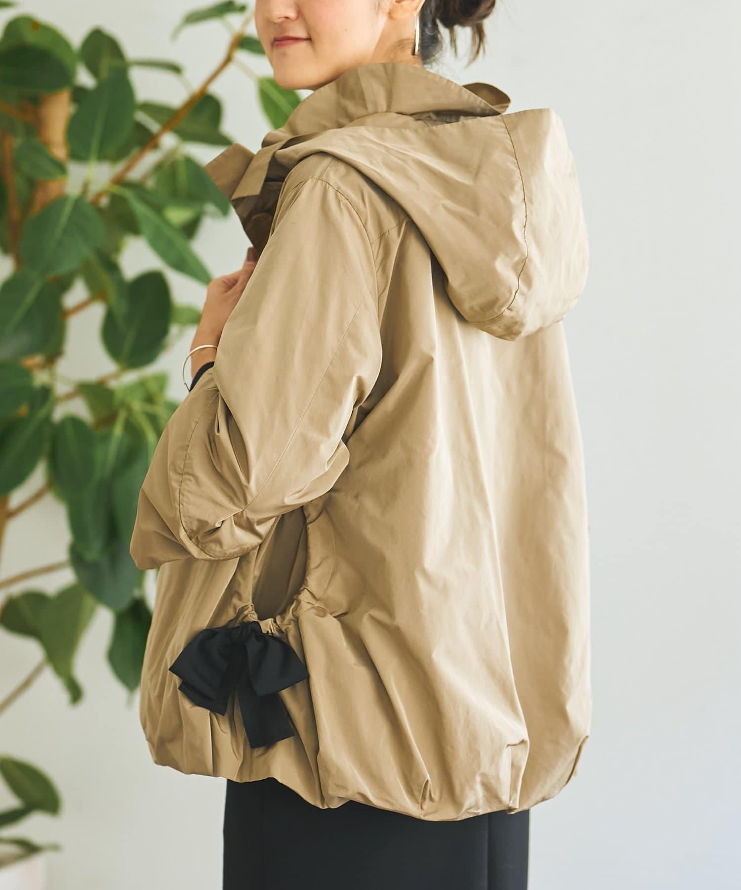 圓潤版型和側邊緞帶設計的女式罩衫。