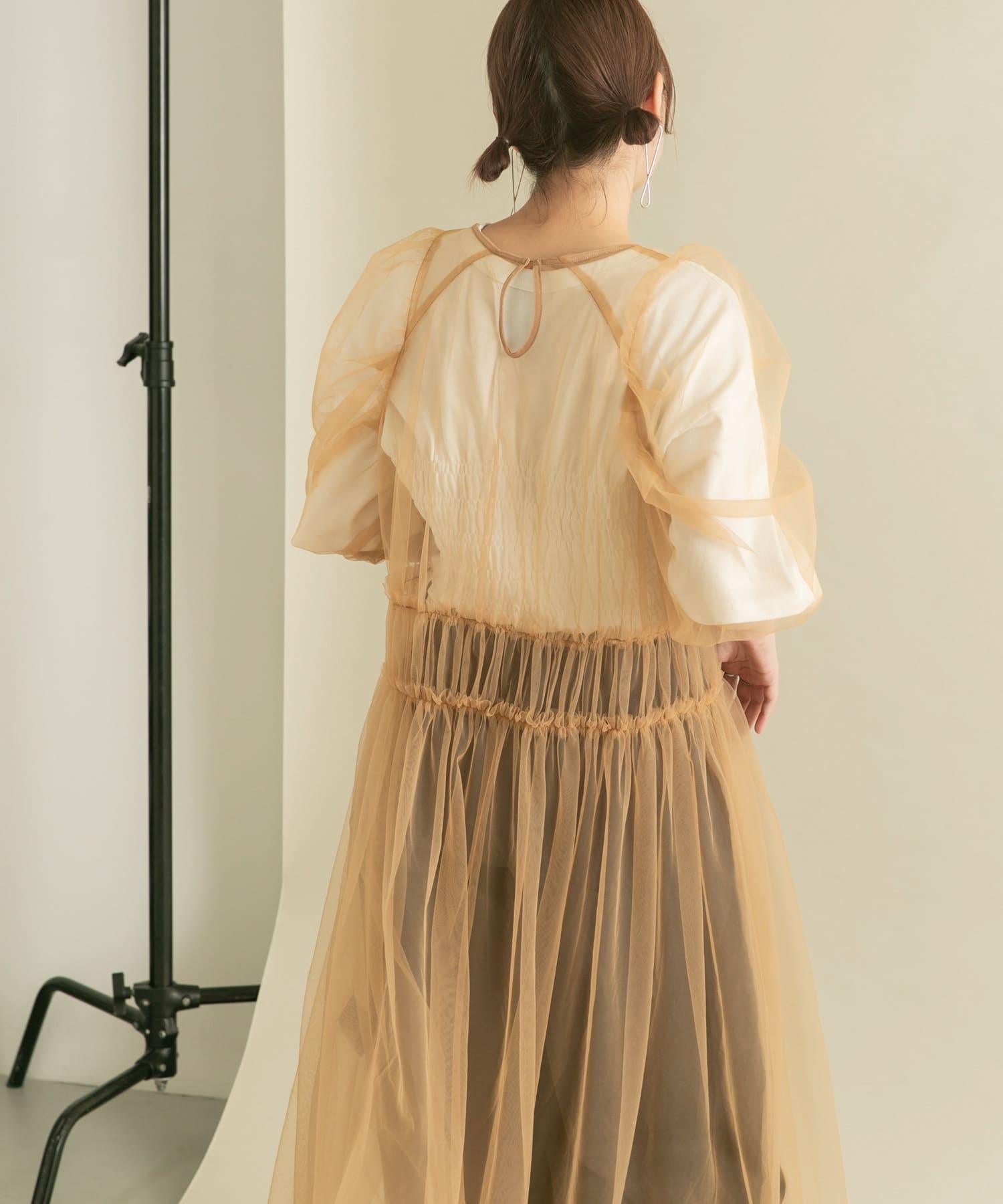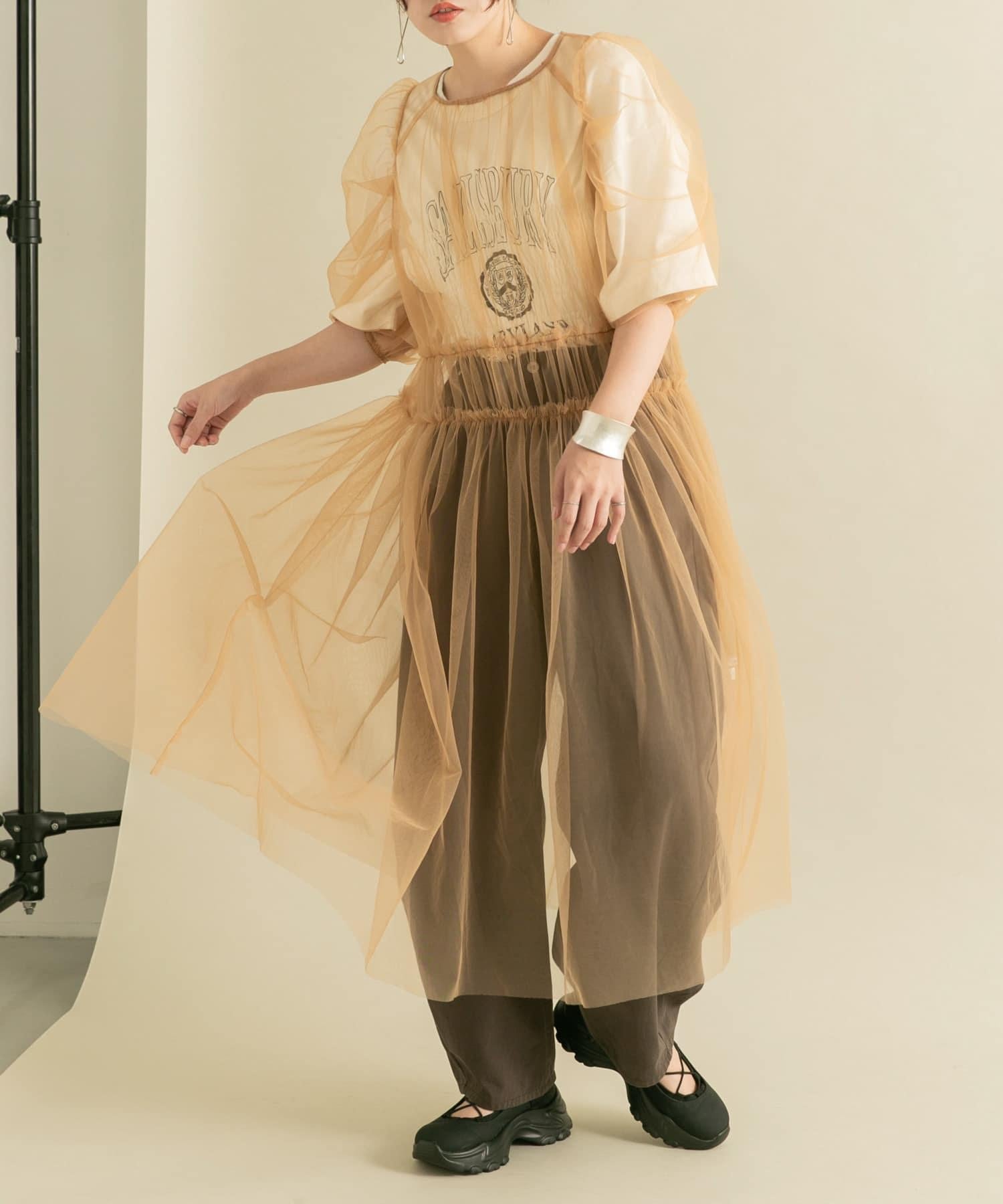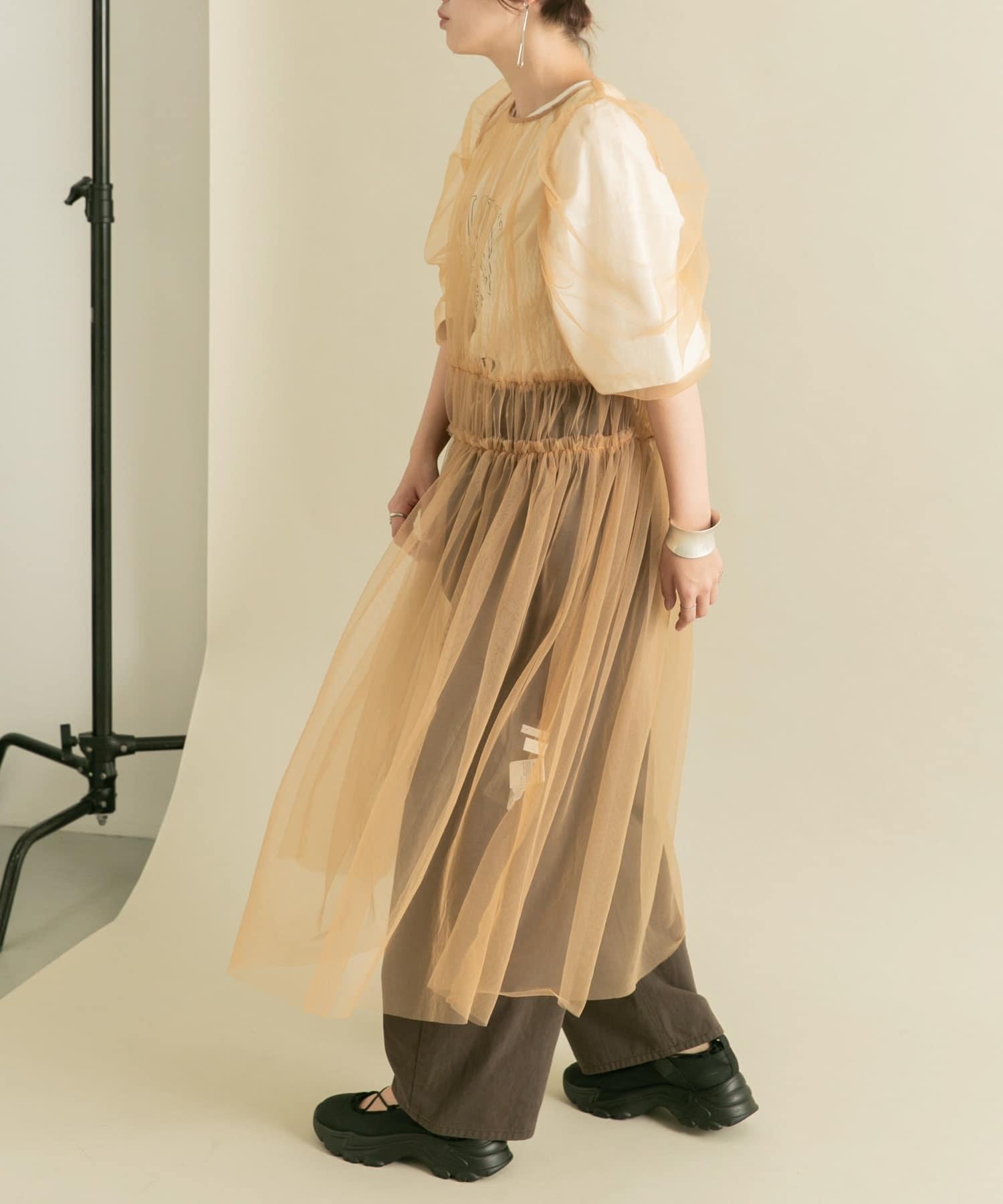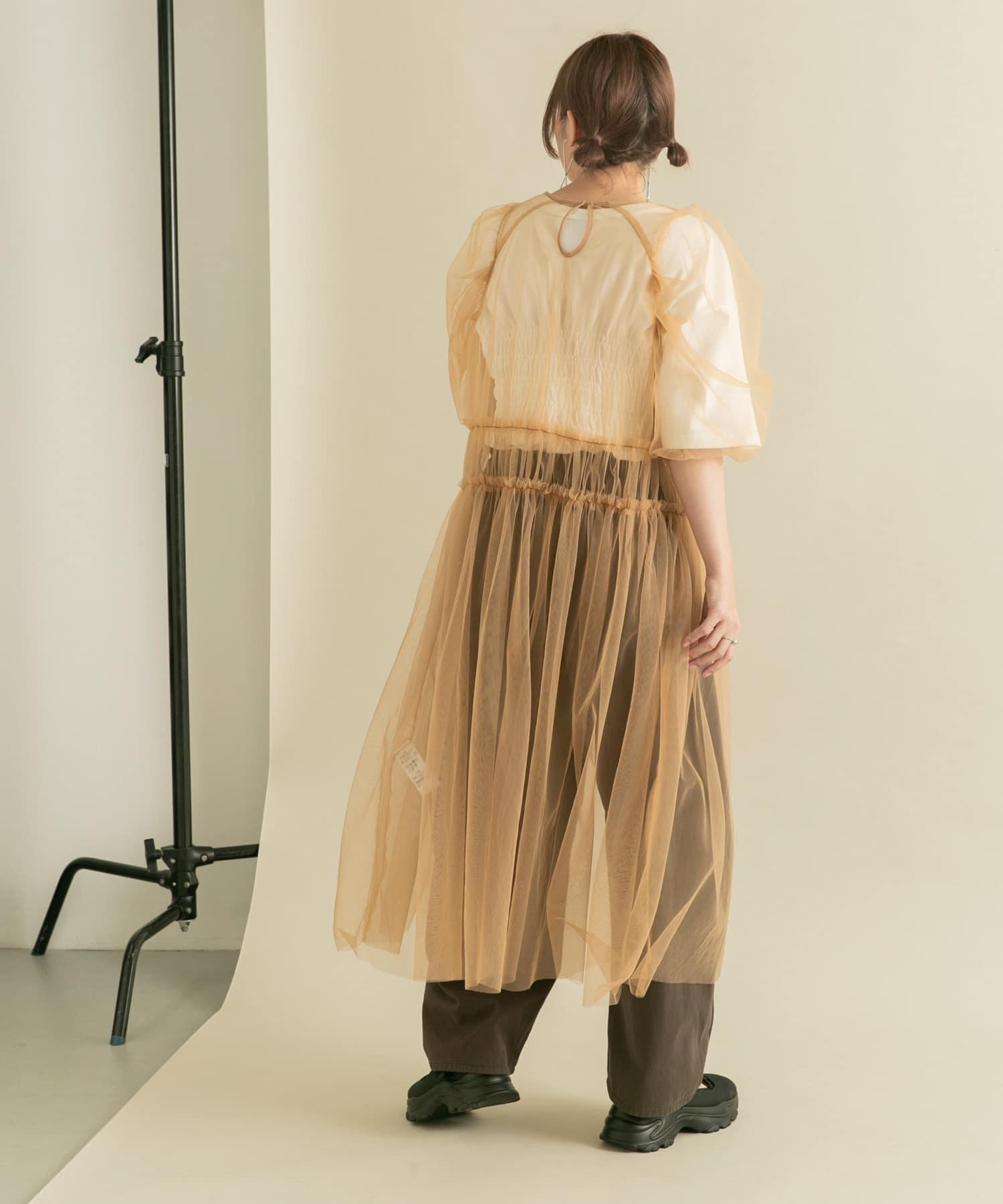 薄紗連身裙讓人愛不釋手。袖子的收攏規格和腰部的褶邊等細節都充滿了女人味。根據搭配單品的不同,可用於日常~偶發場景。