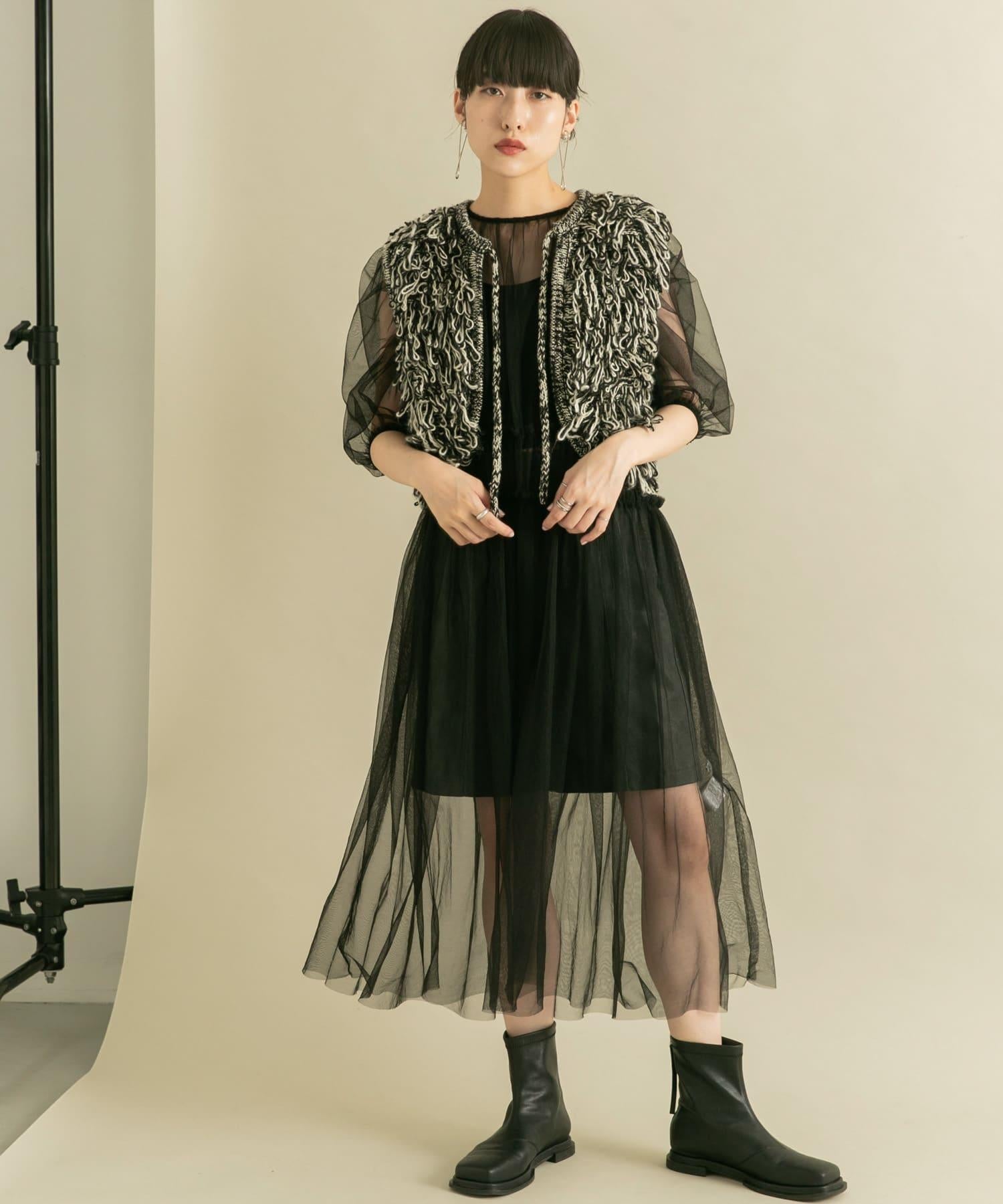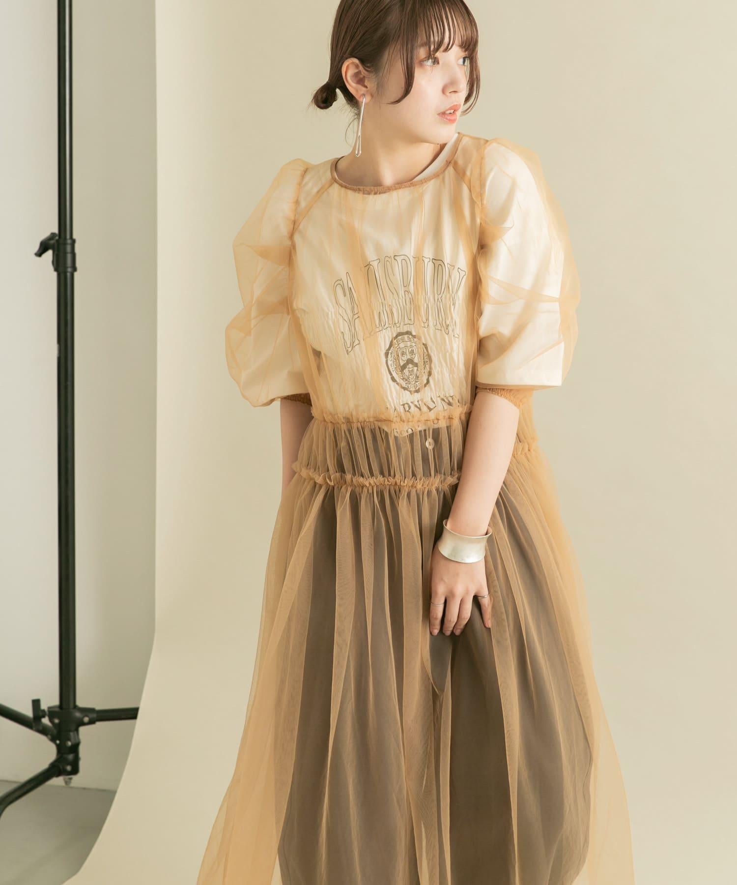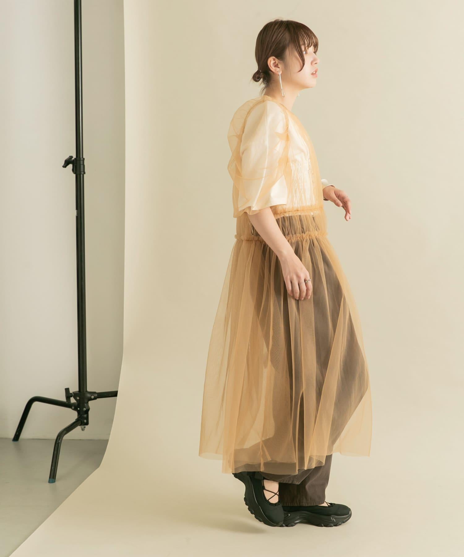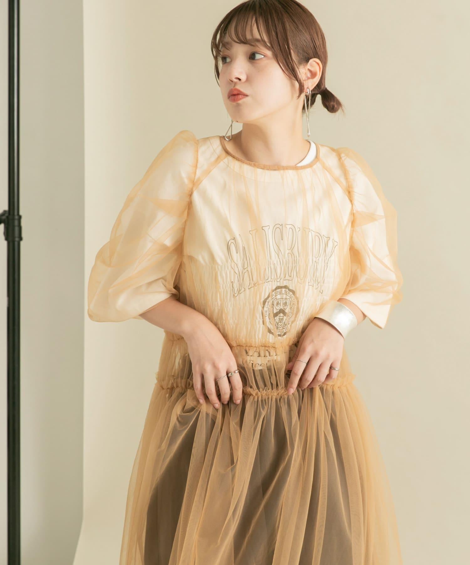 薄紗連身裙讓人愛不釋手。袖子的收攏規格和腰部的褶邊等細節都充滿了女人味。根據搭配單品的不同,可用於日常~偶發場景。