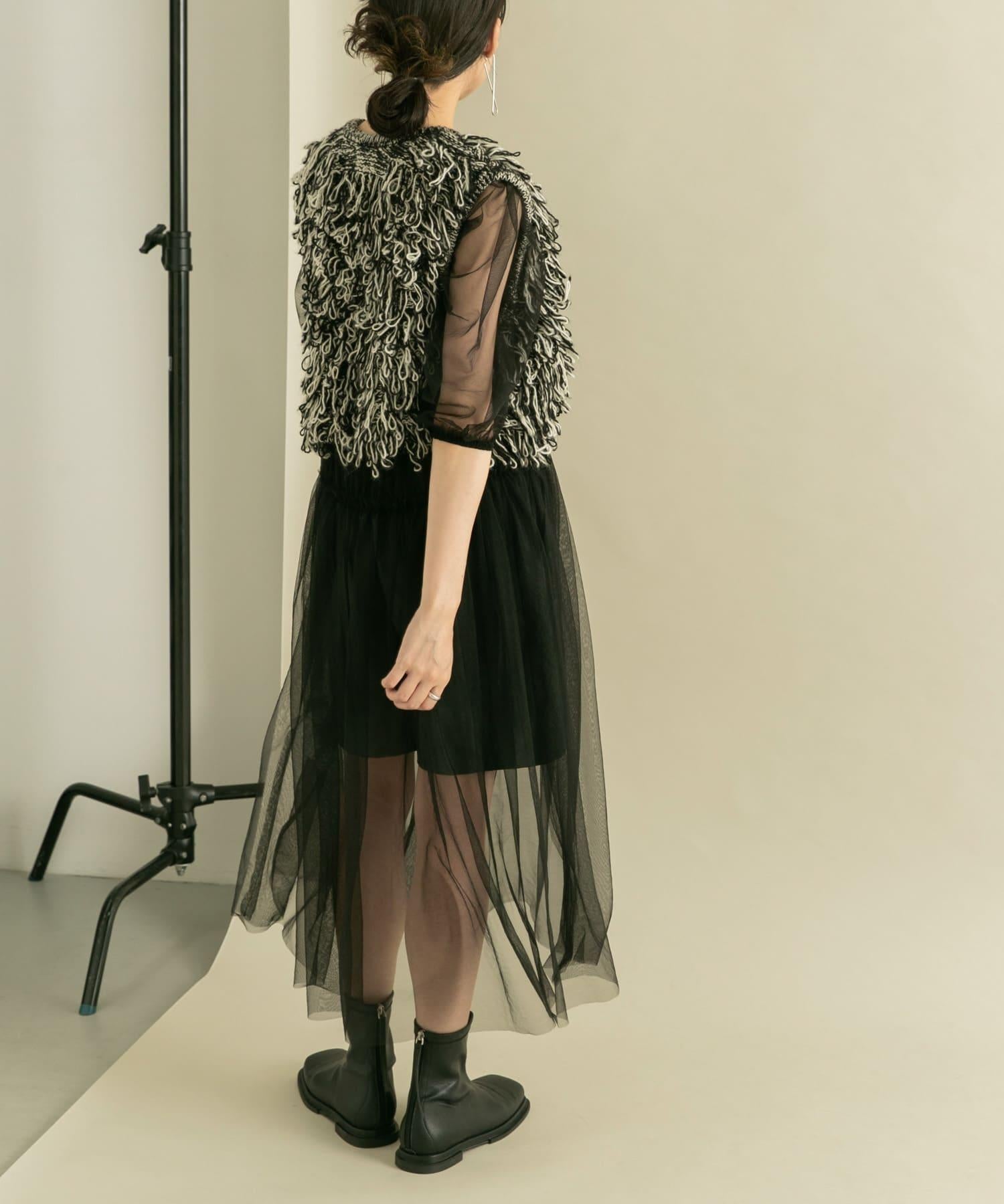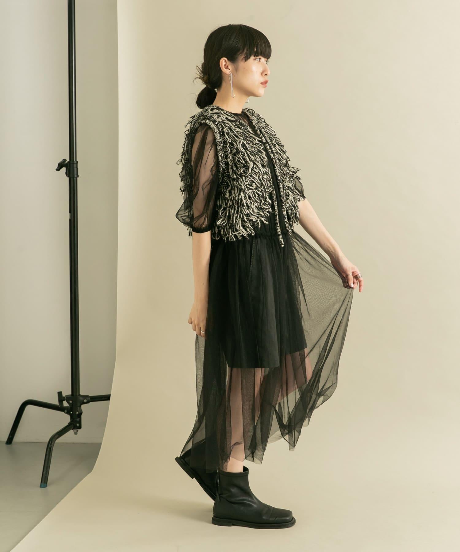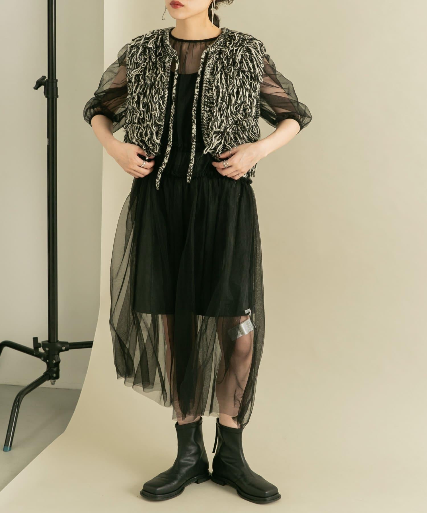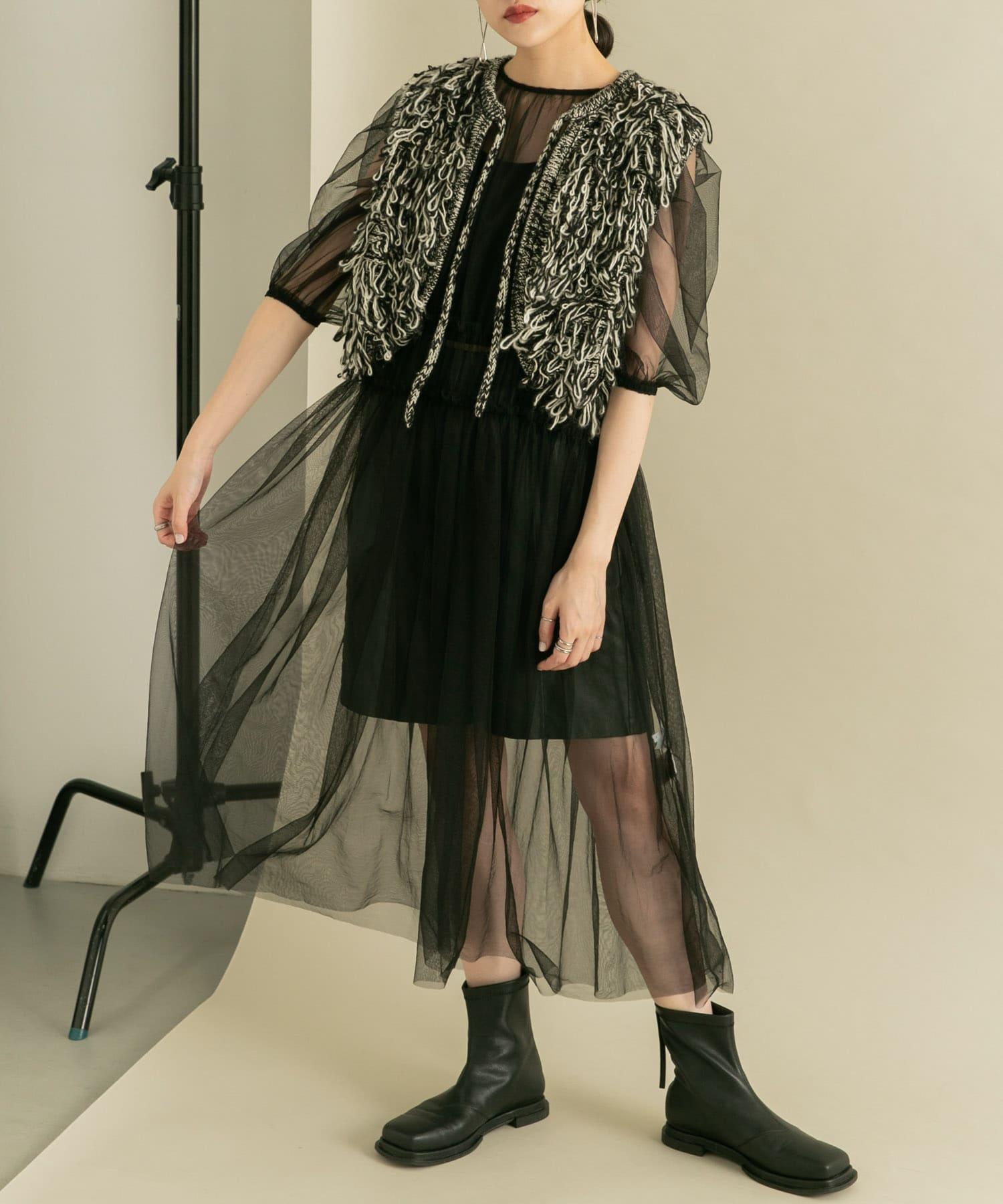 薄紗連身裙讓人愛不釋手。袖子的收攏規格和腰部的褶邊等細節都充滿了女人味。根據搭配單品的不同,可用於日常~偶發場景。