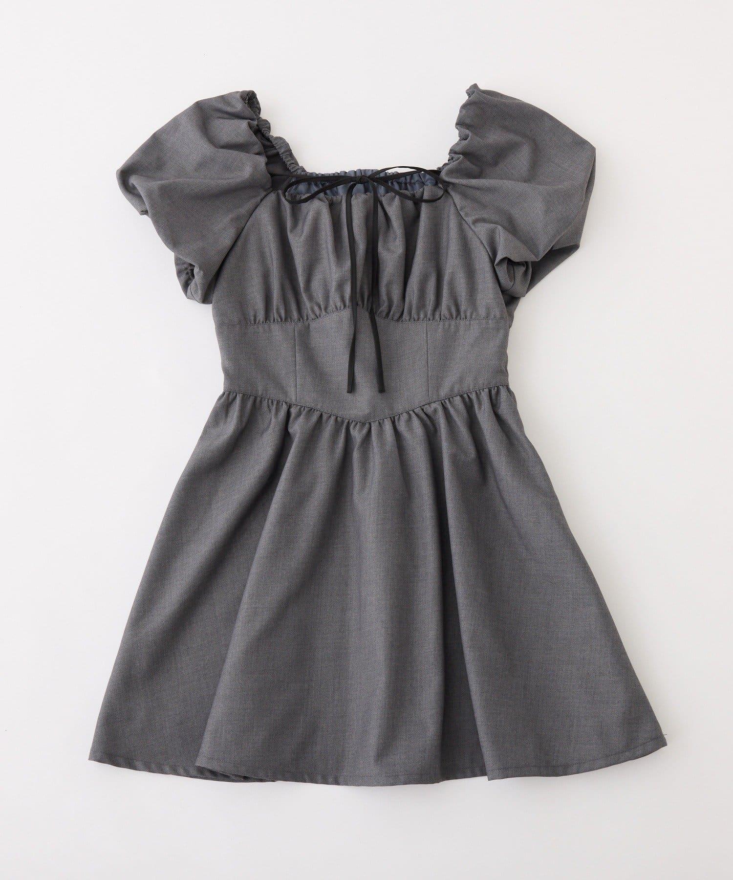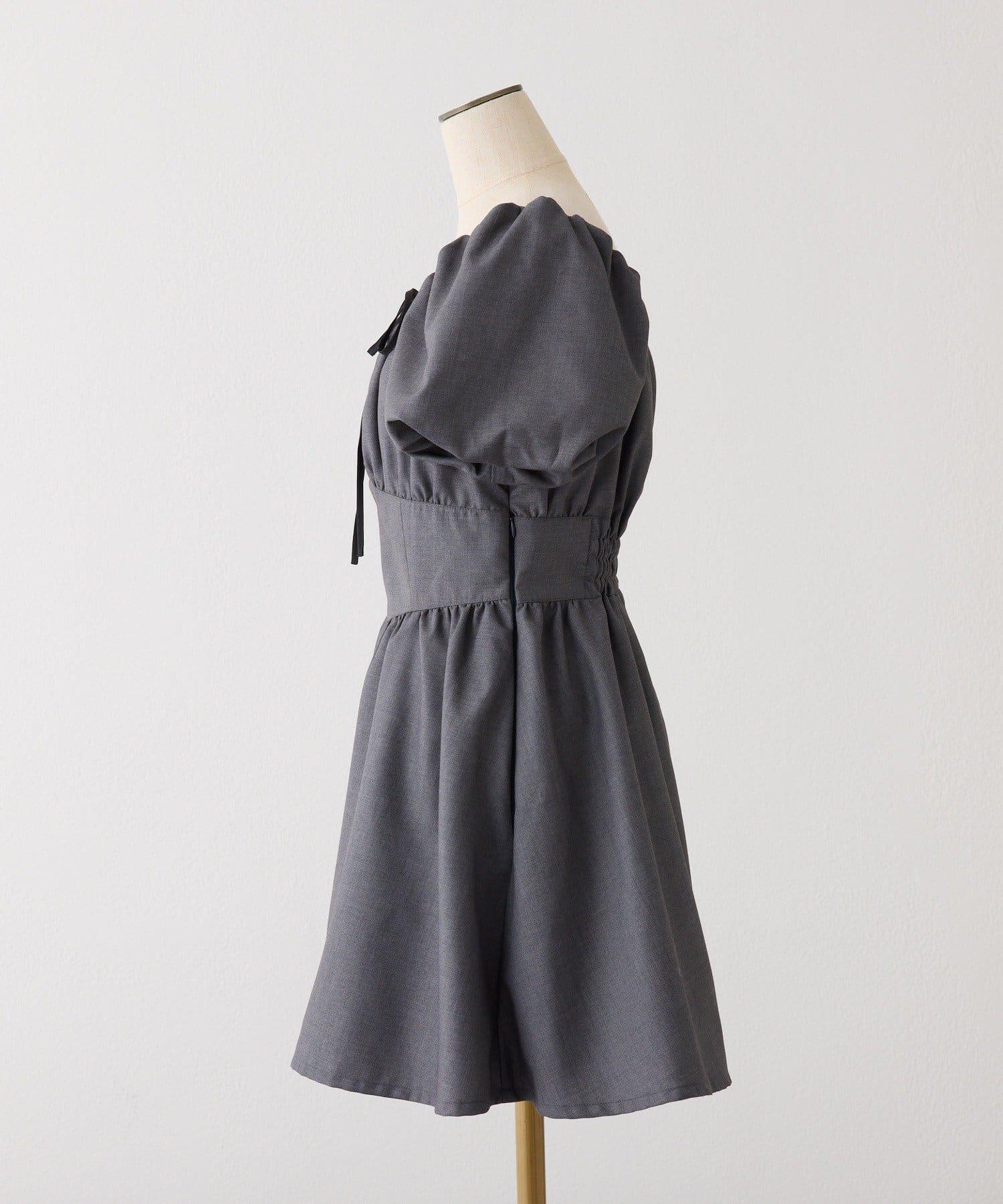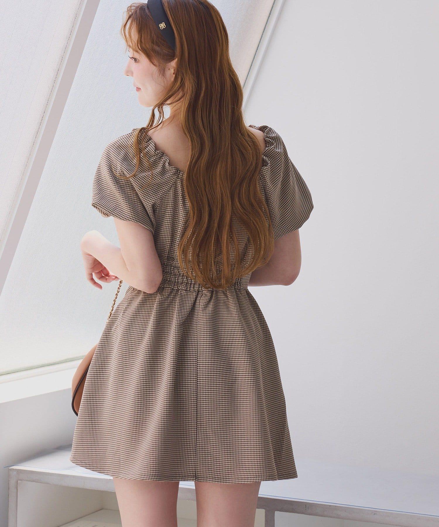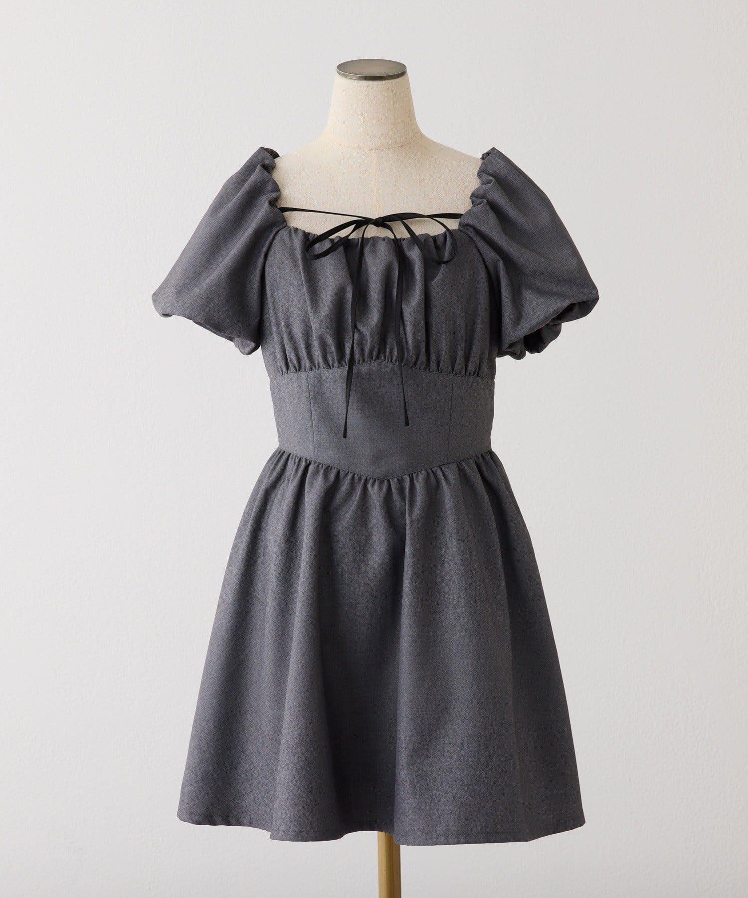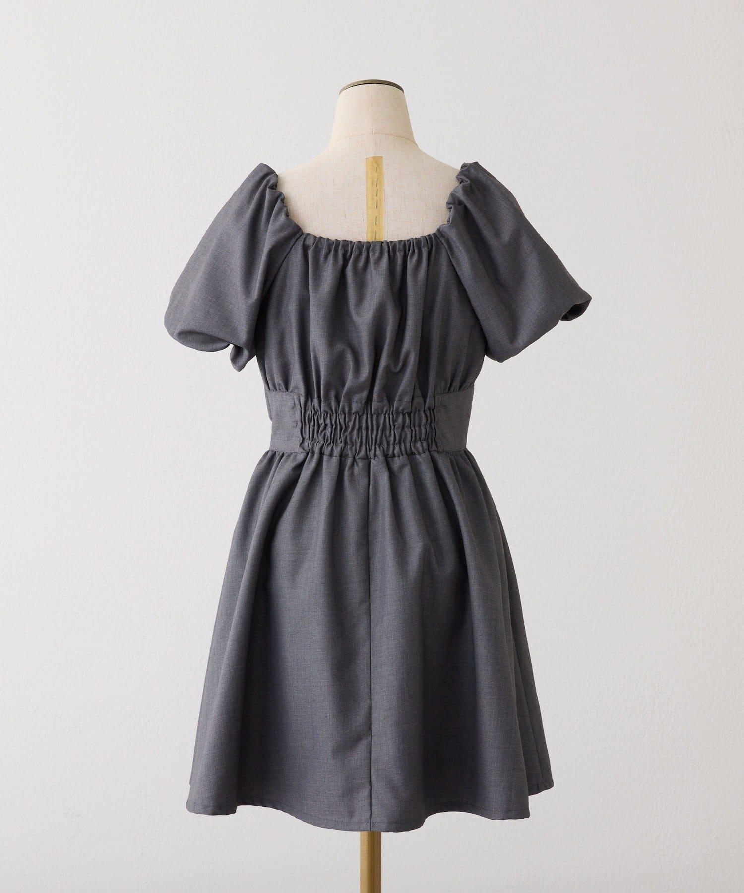 迷你連衣裙,蓬鬆的蓬蓬袖和腰部的緊身胸衣式設計。