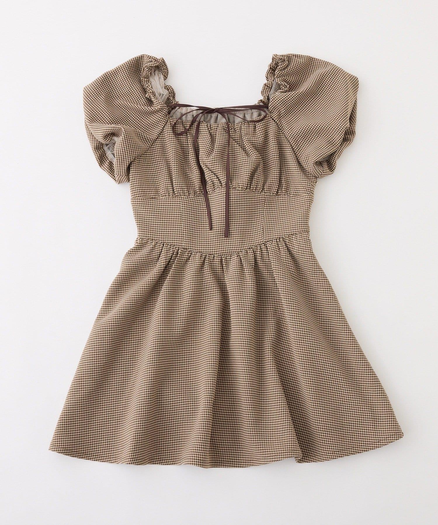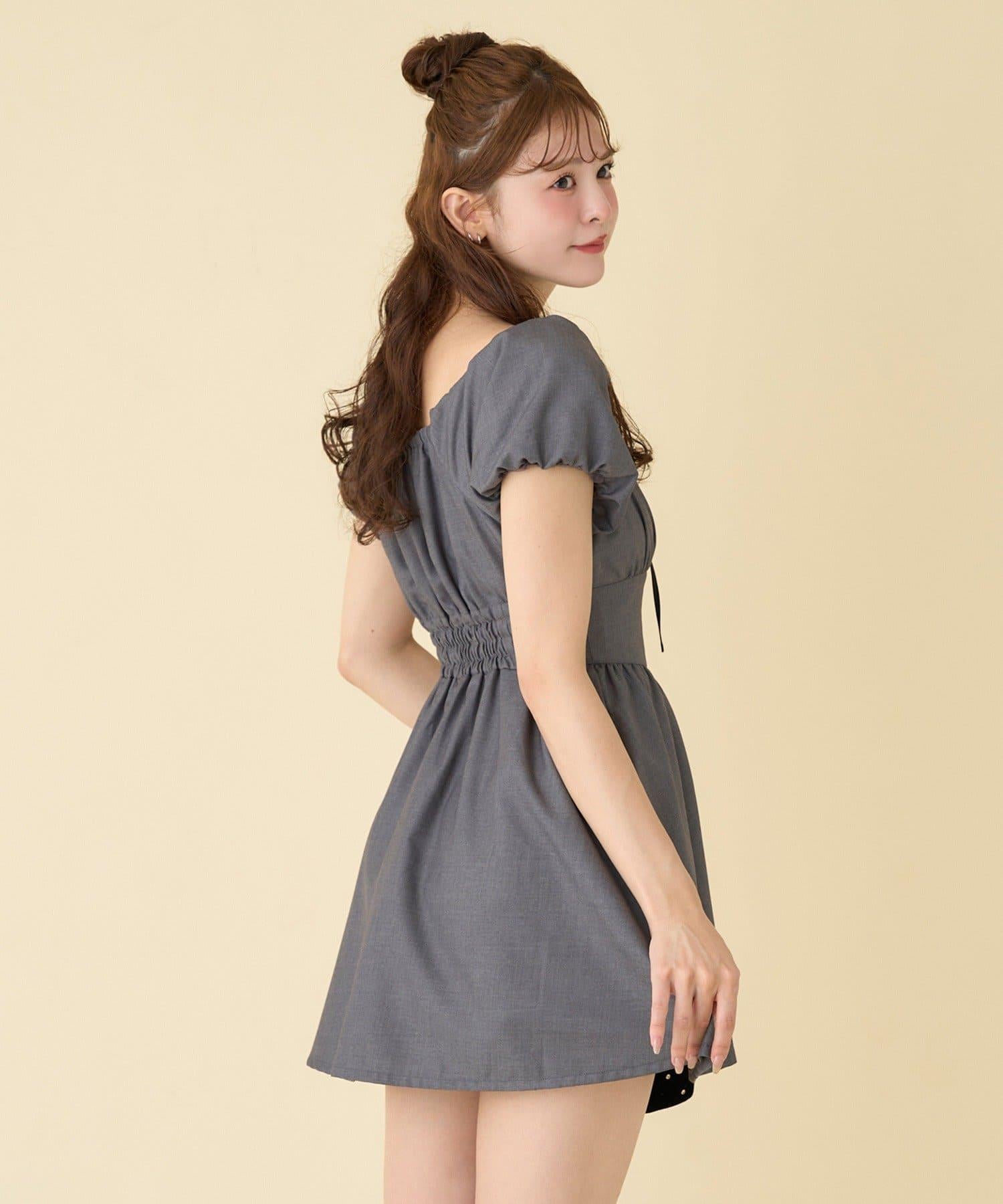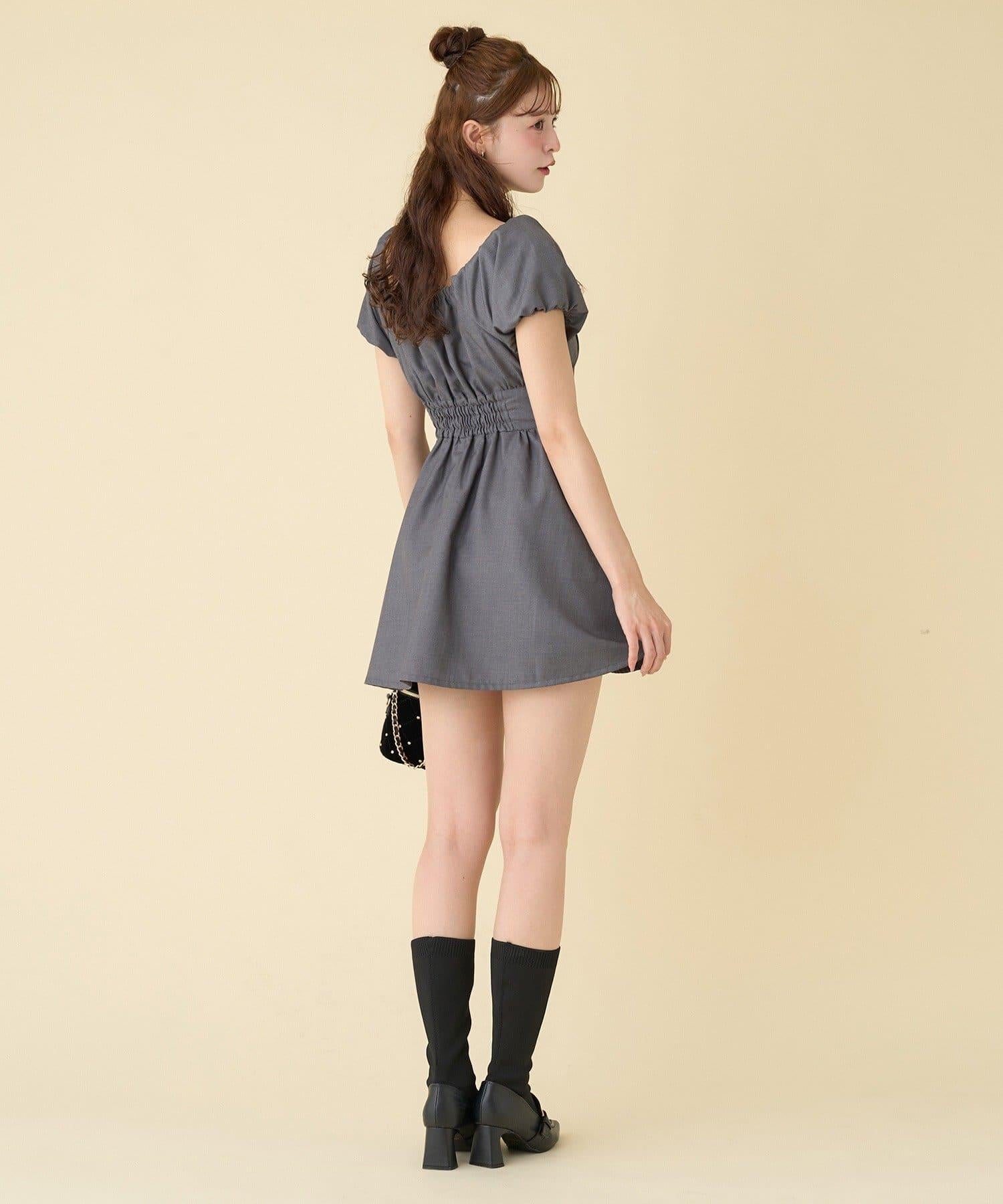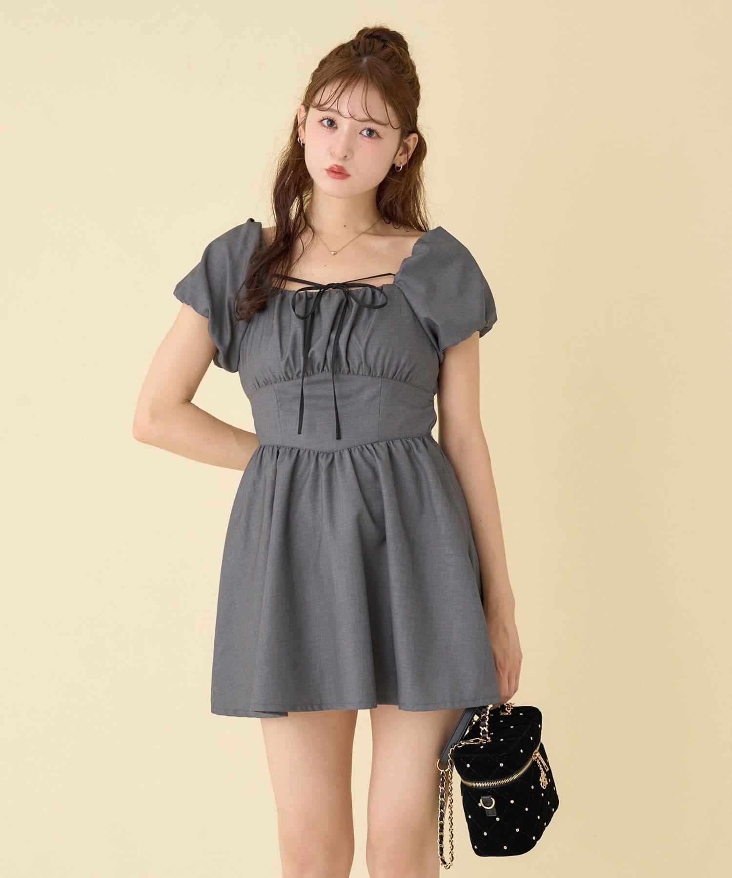 迷你連衣裙,蓬鬆的蓬蓬袖和腰部的緊身胸衣式設計。