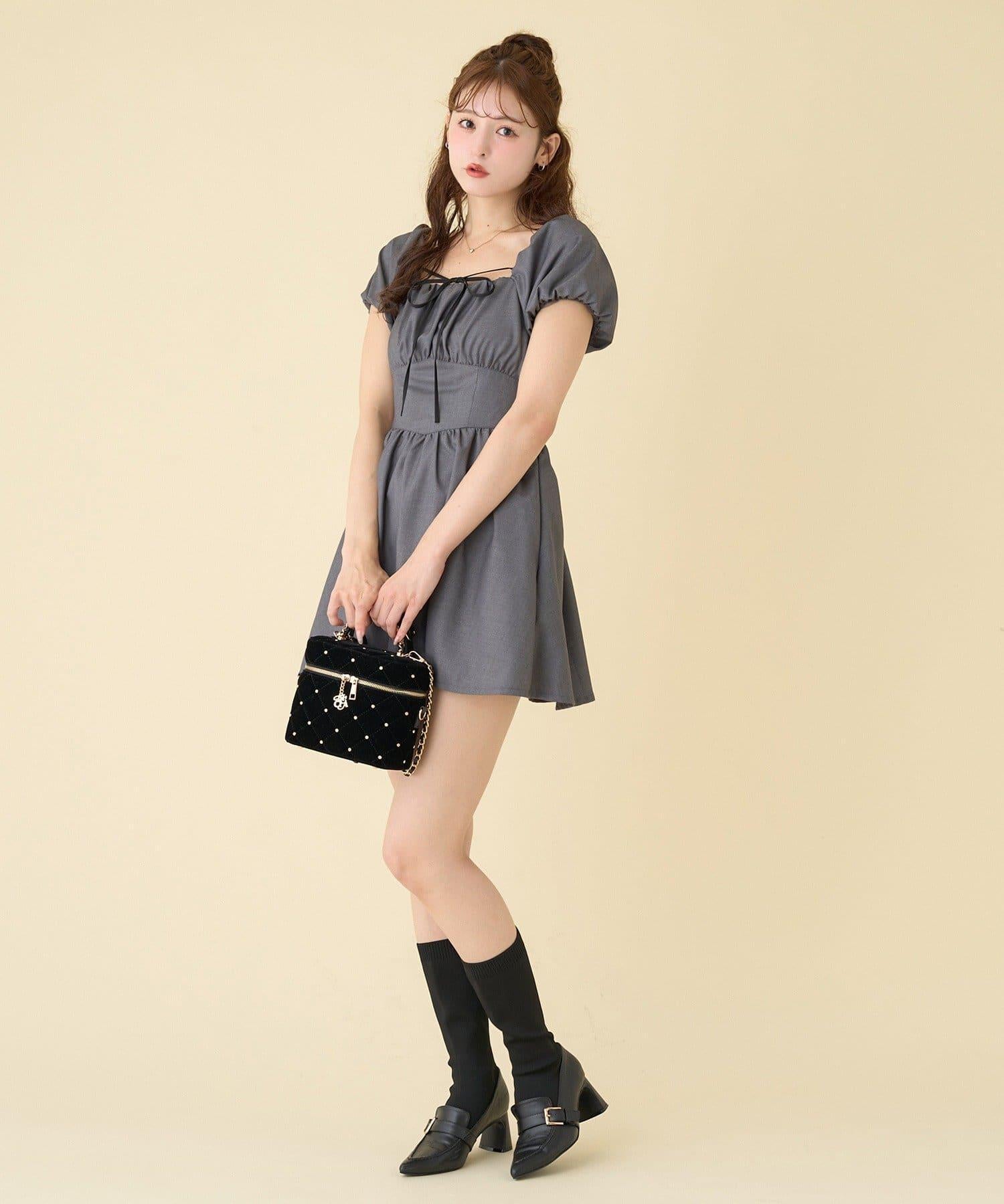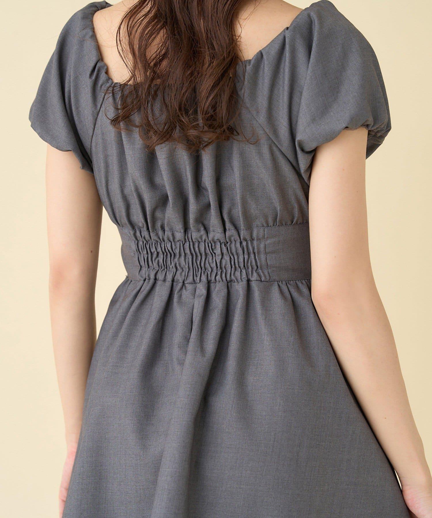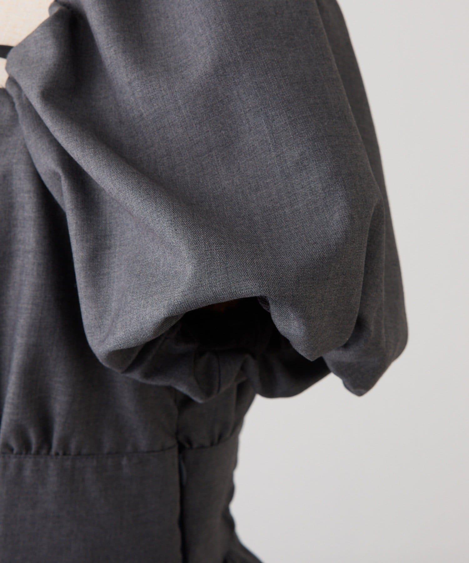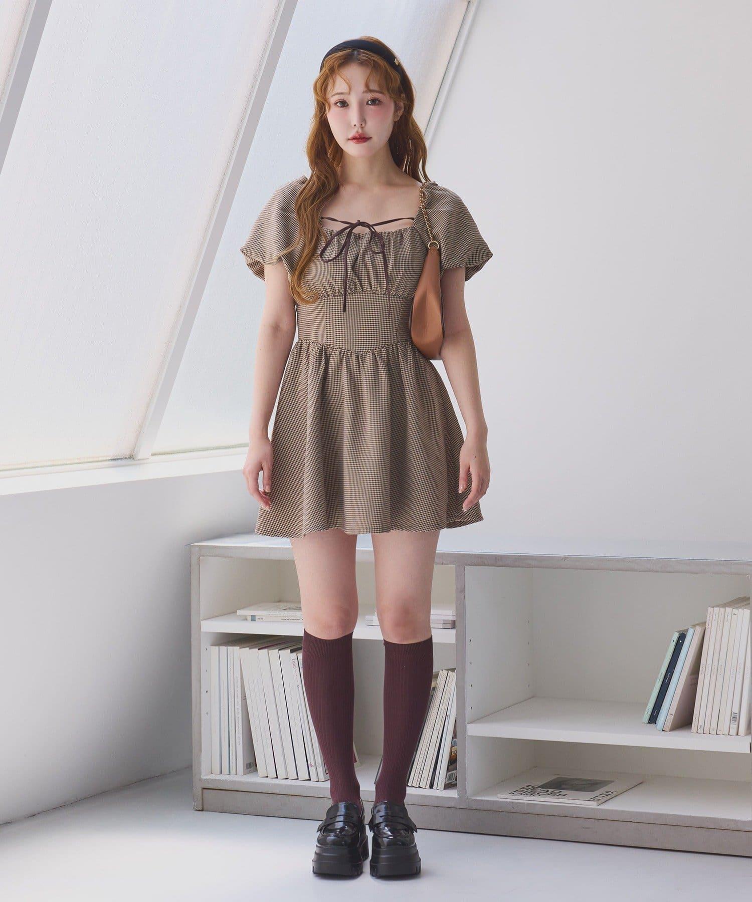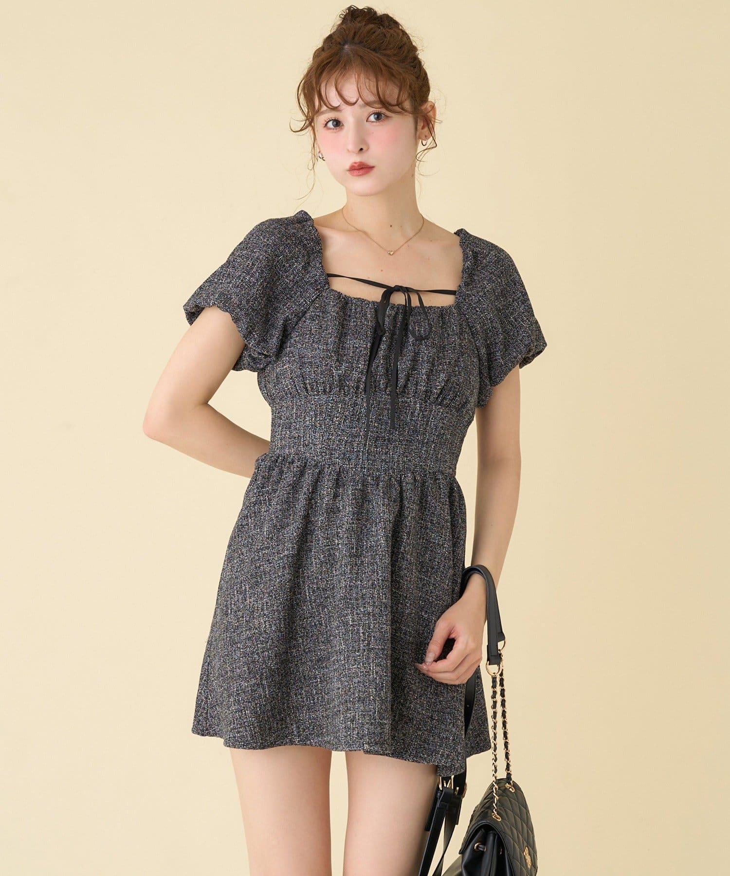 迷你連衣裙,蓬鬆的蓬蓬袖和腰部的緊身胸衣式設計。