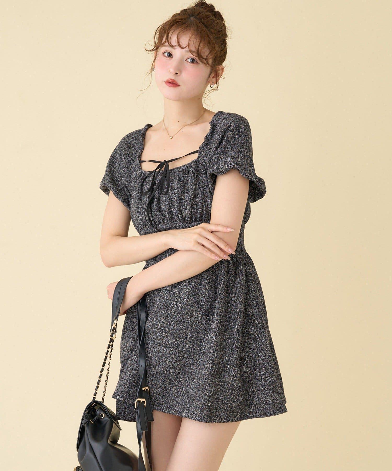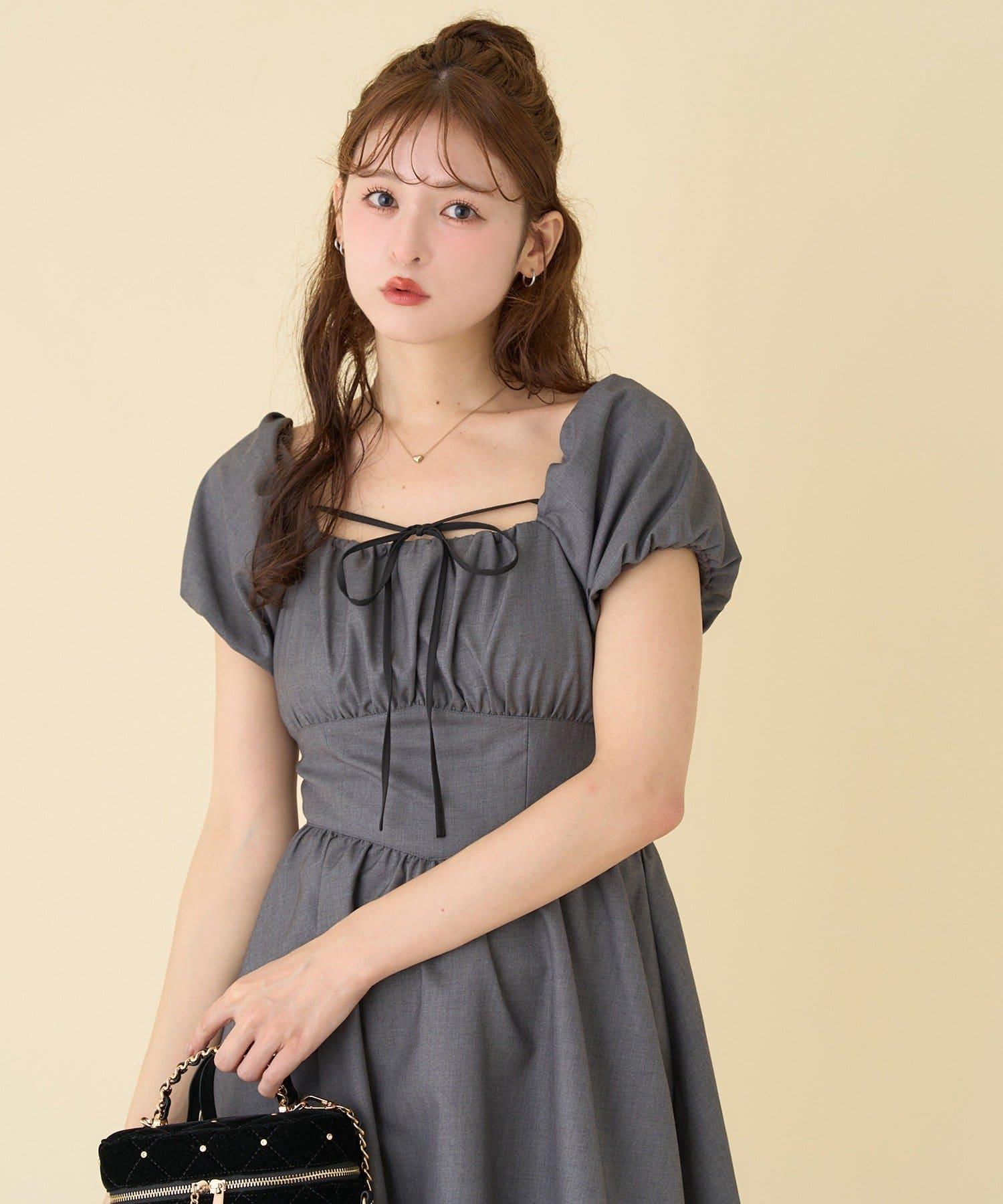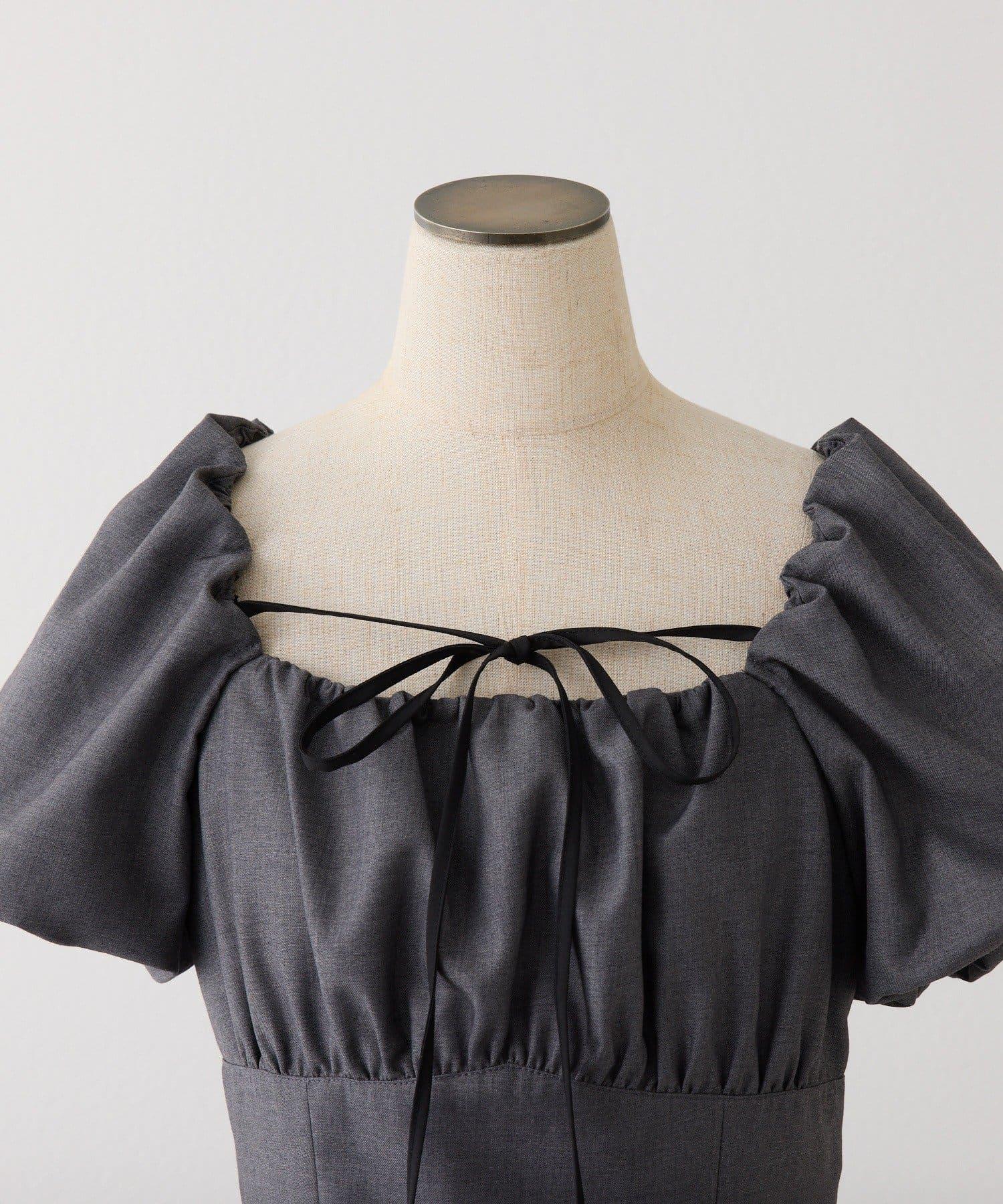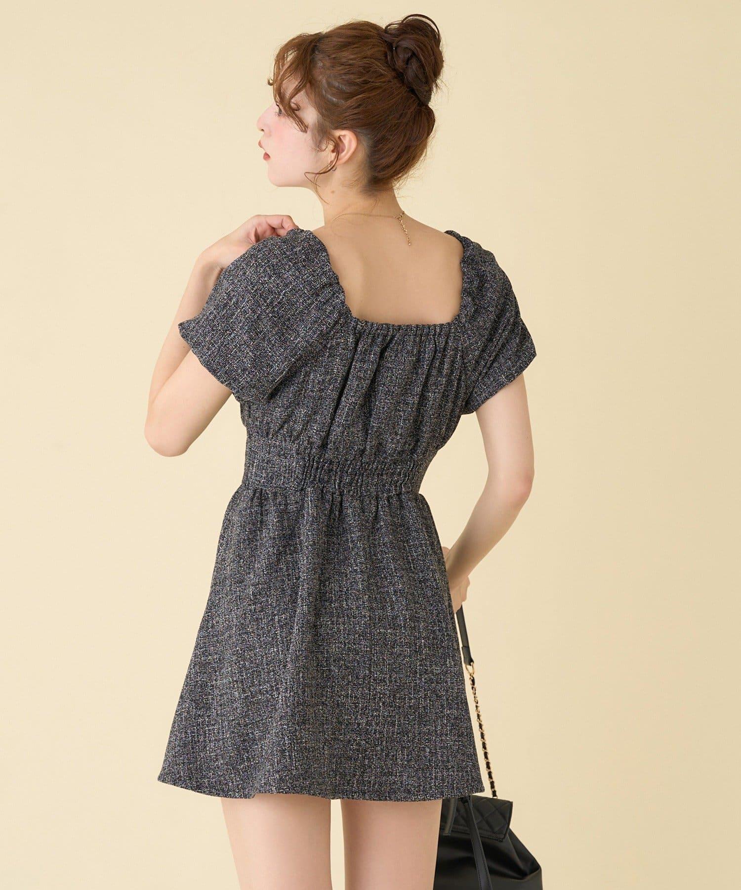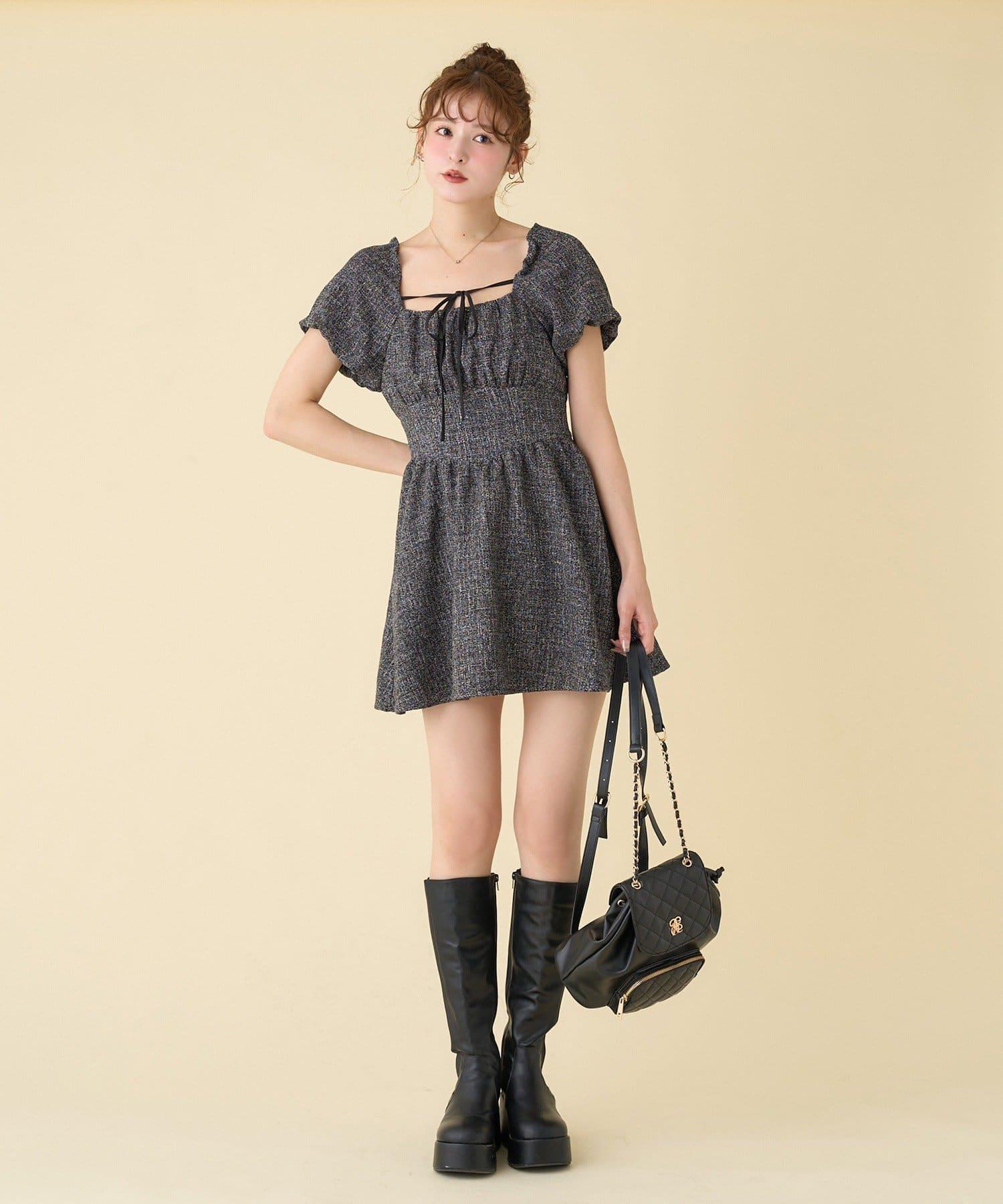 迷你連衣裙,蓬鬆的蓬蓬袖和腰部的緊身胸衣式設計。