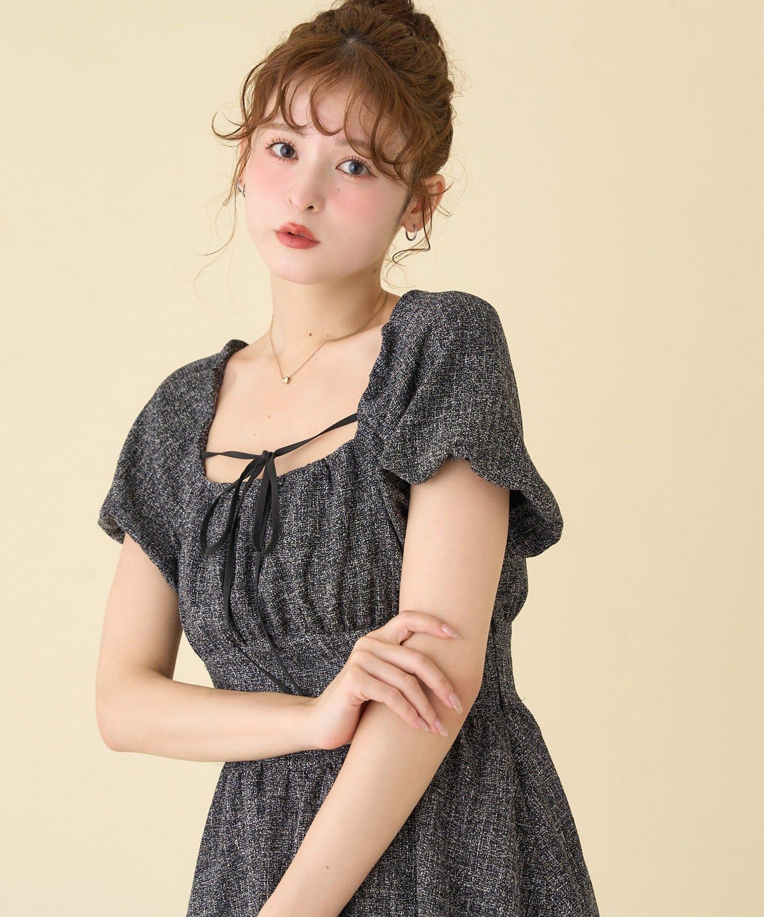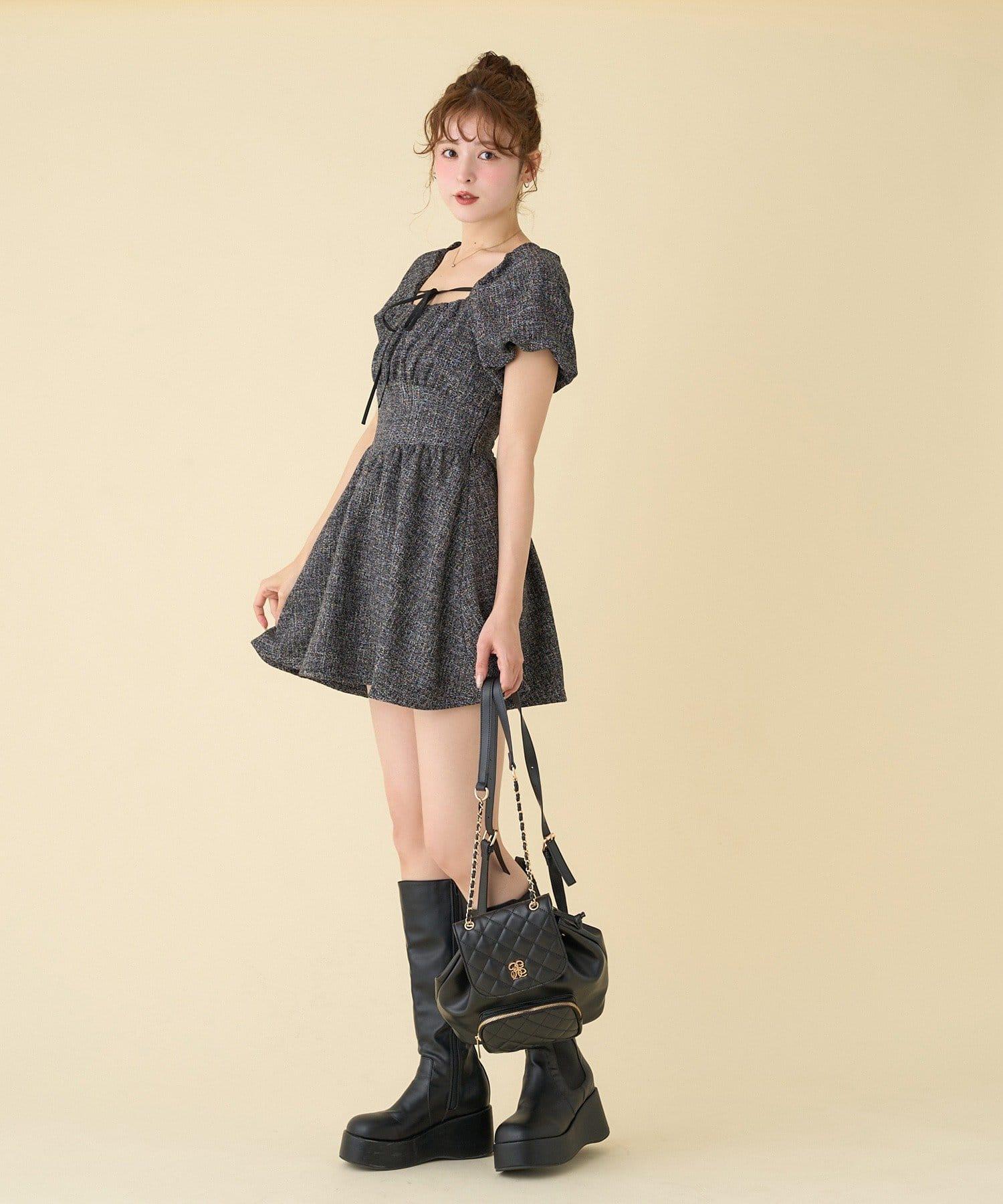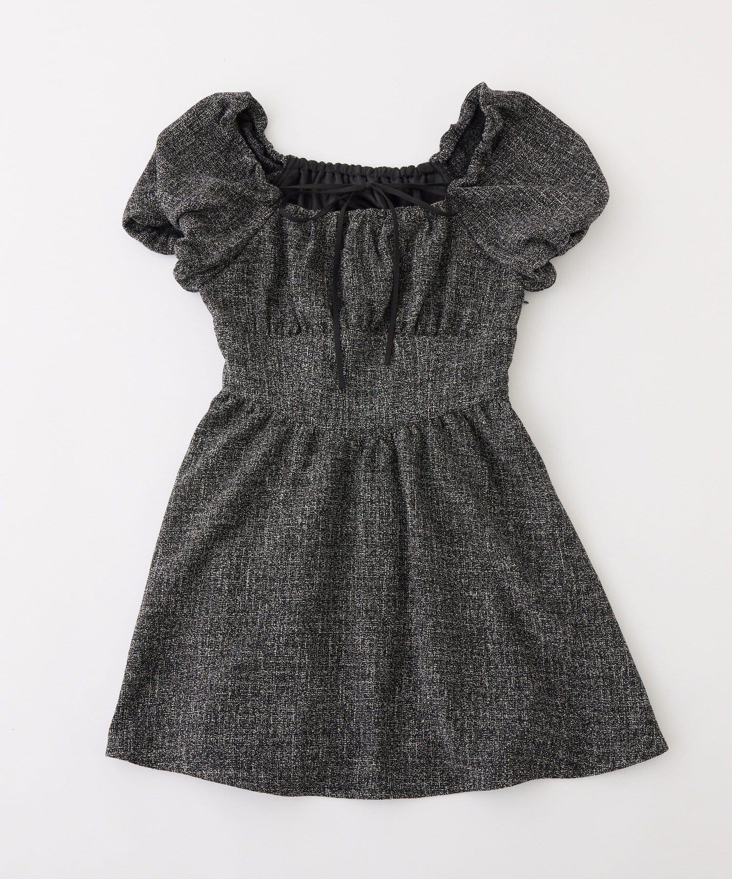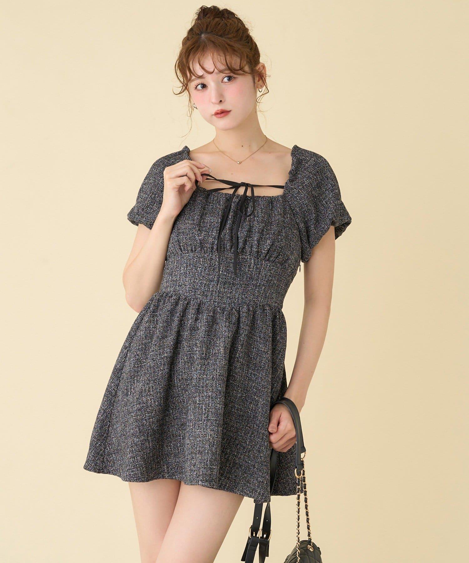 迷你連衣裙,蓬鬆的蓬蓬袖和腰部的緊身胸衣式設計。
