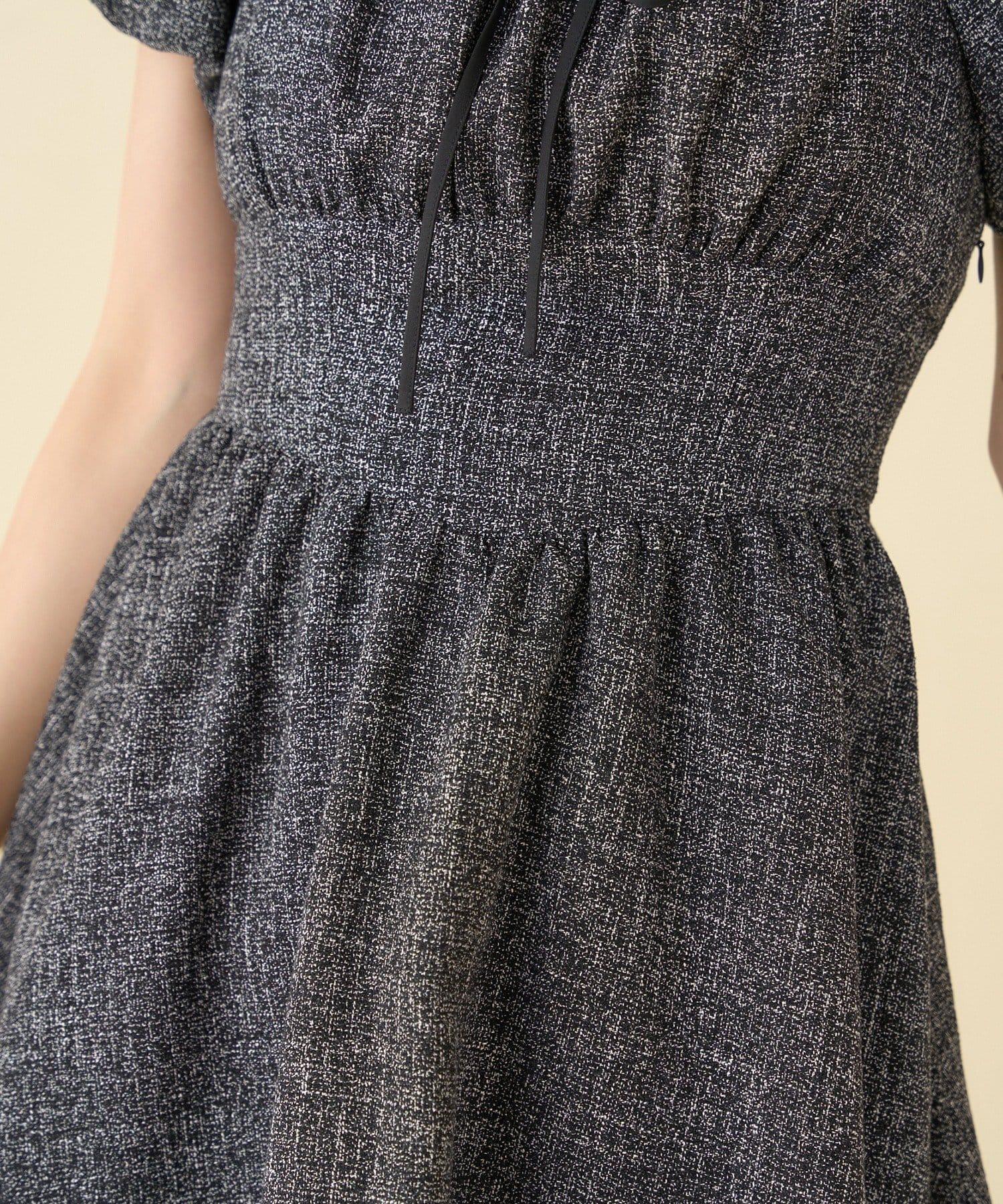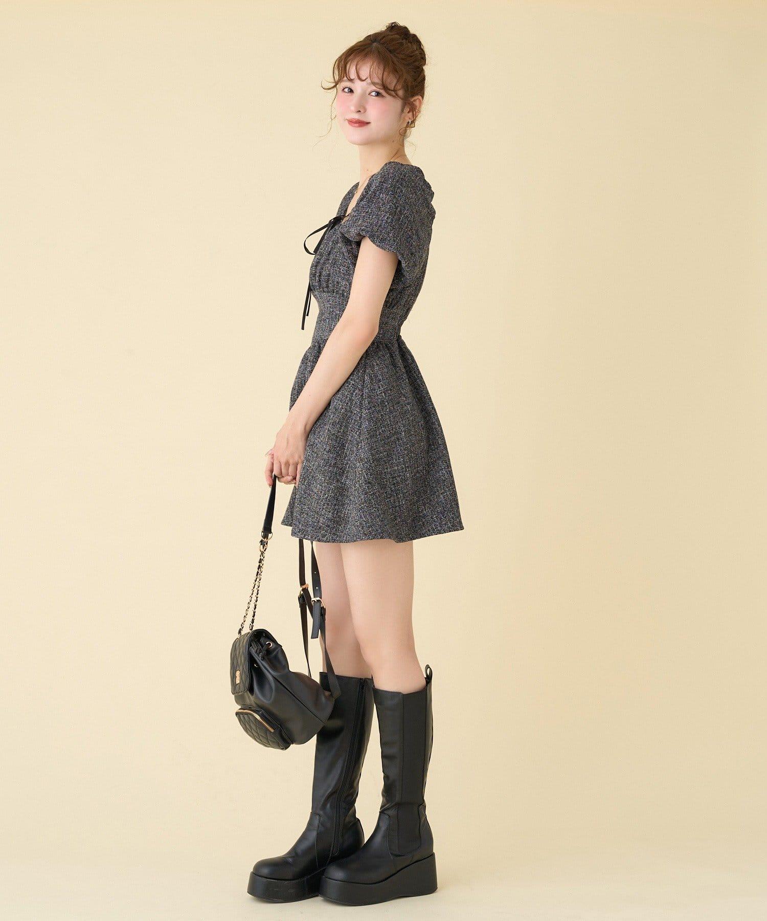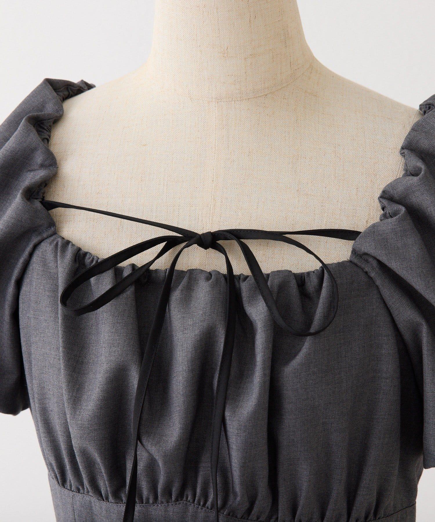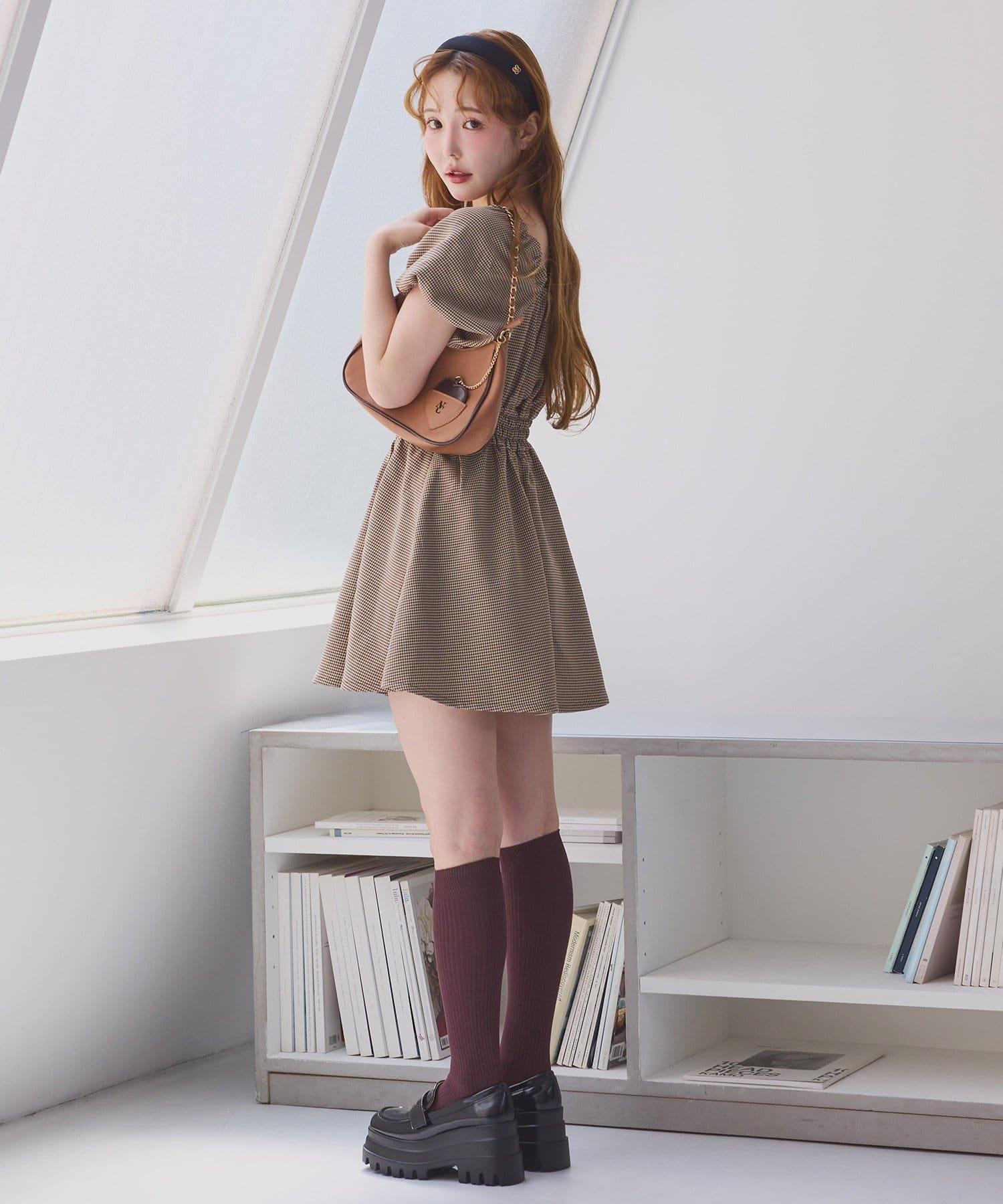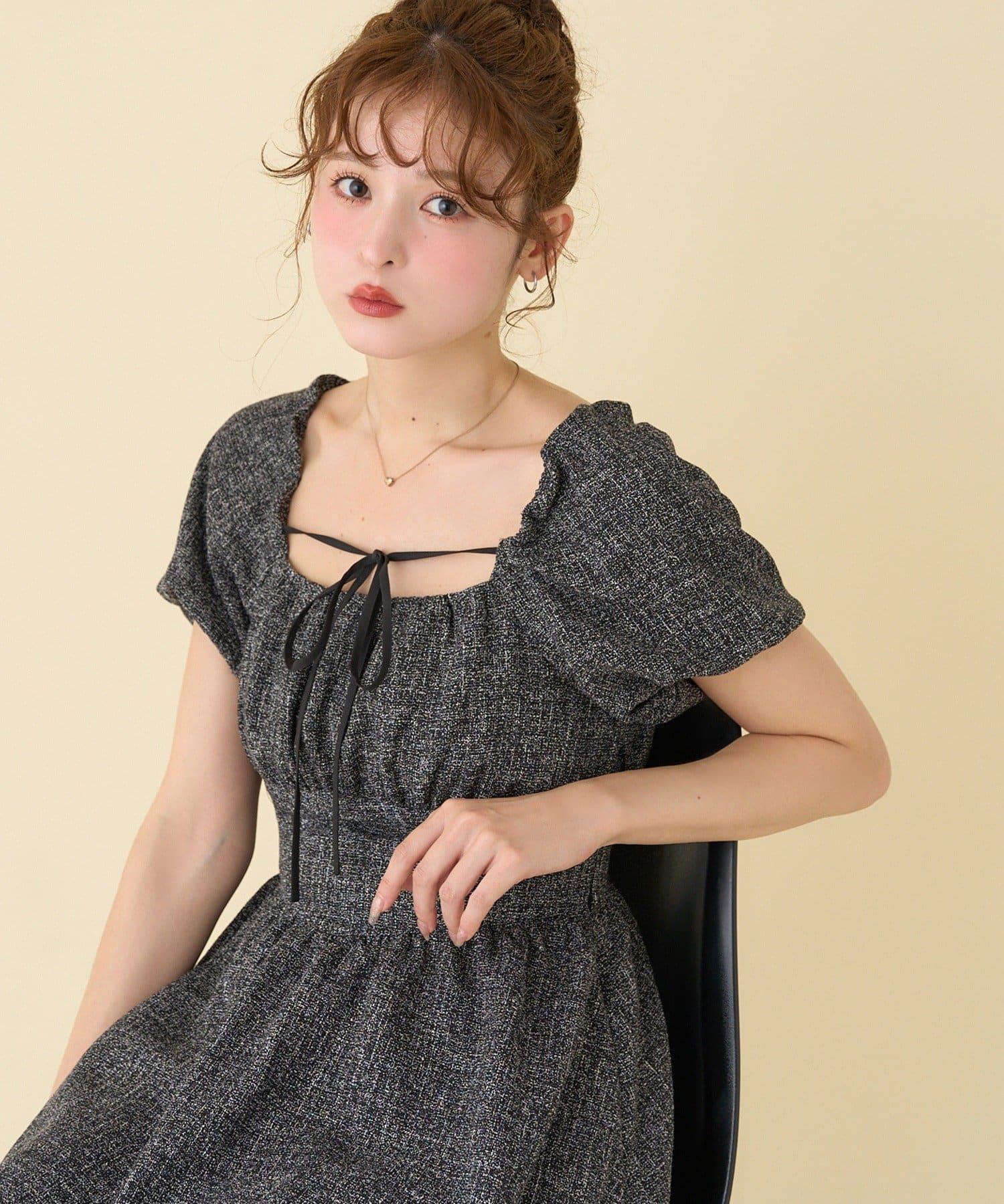 迷你連衣裙,蓬鬆的蓬蓬袖和腰部的緊身胸衣式設計。