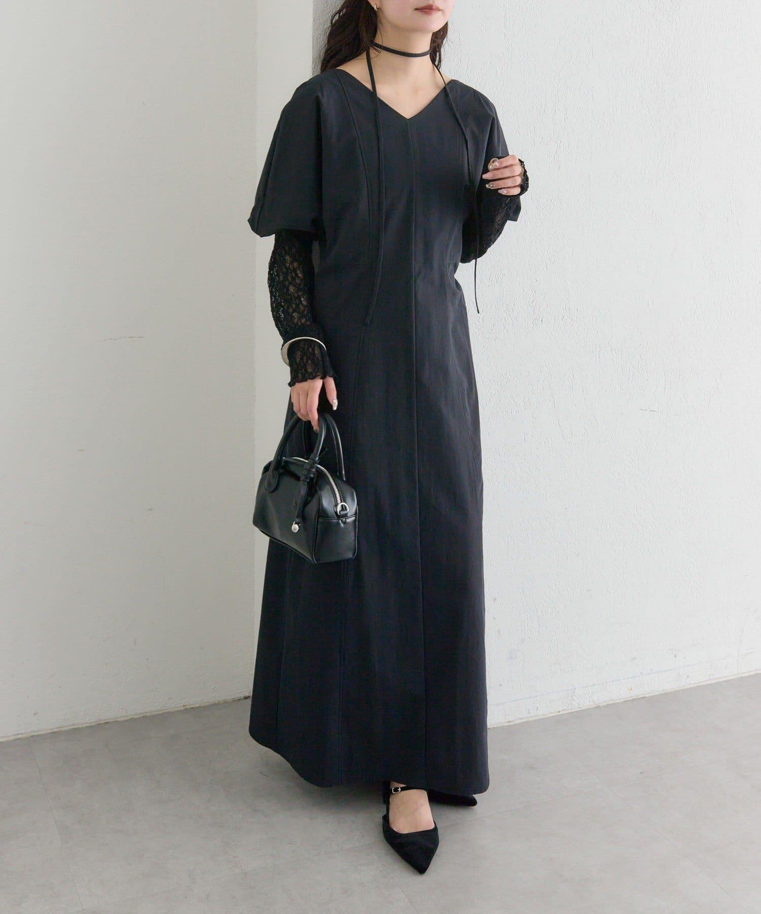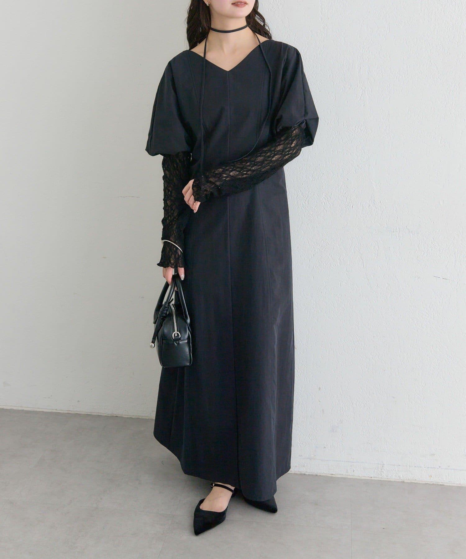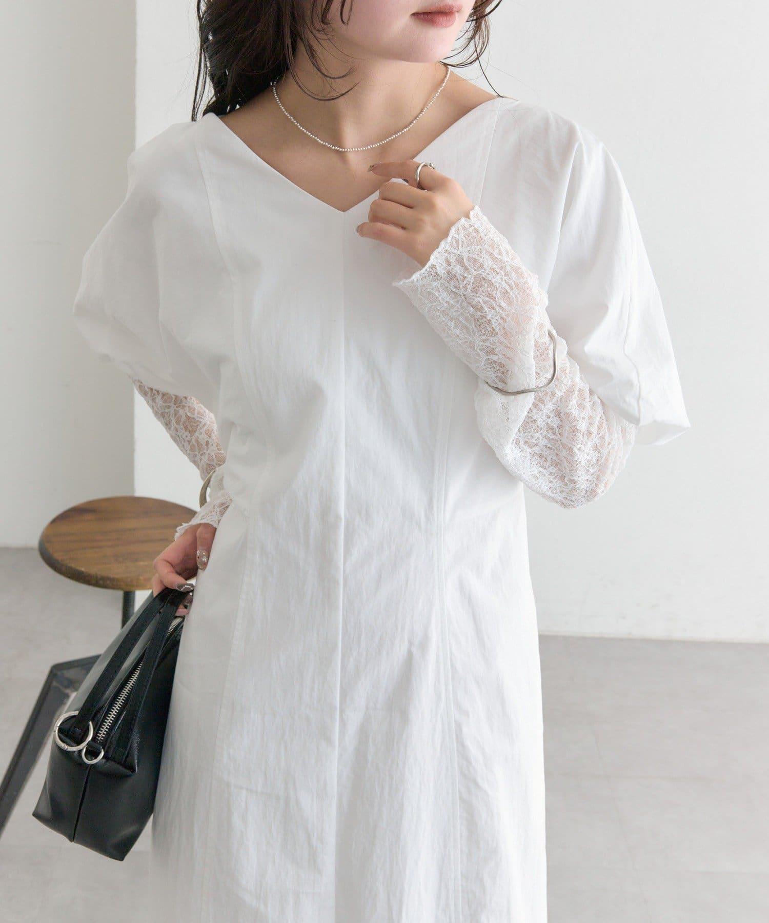 袖子上的蕾絲為這款連衣裙增添了魅力,雖然輪廓簡單,但卻很有存在感。