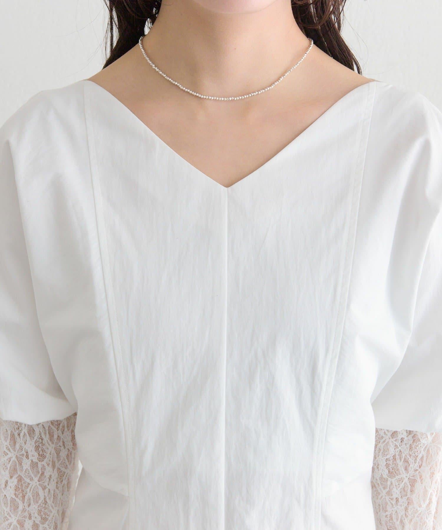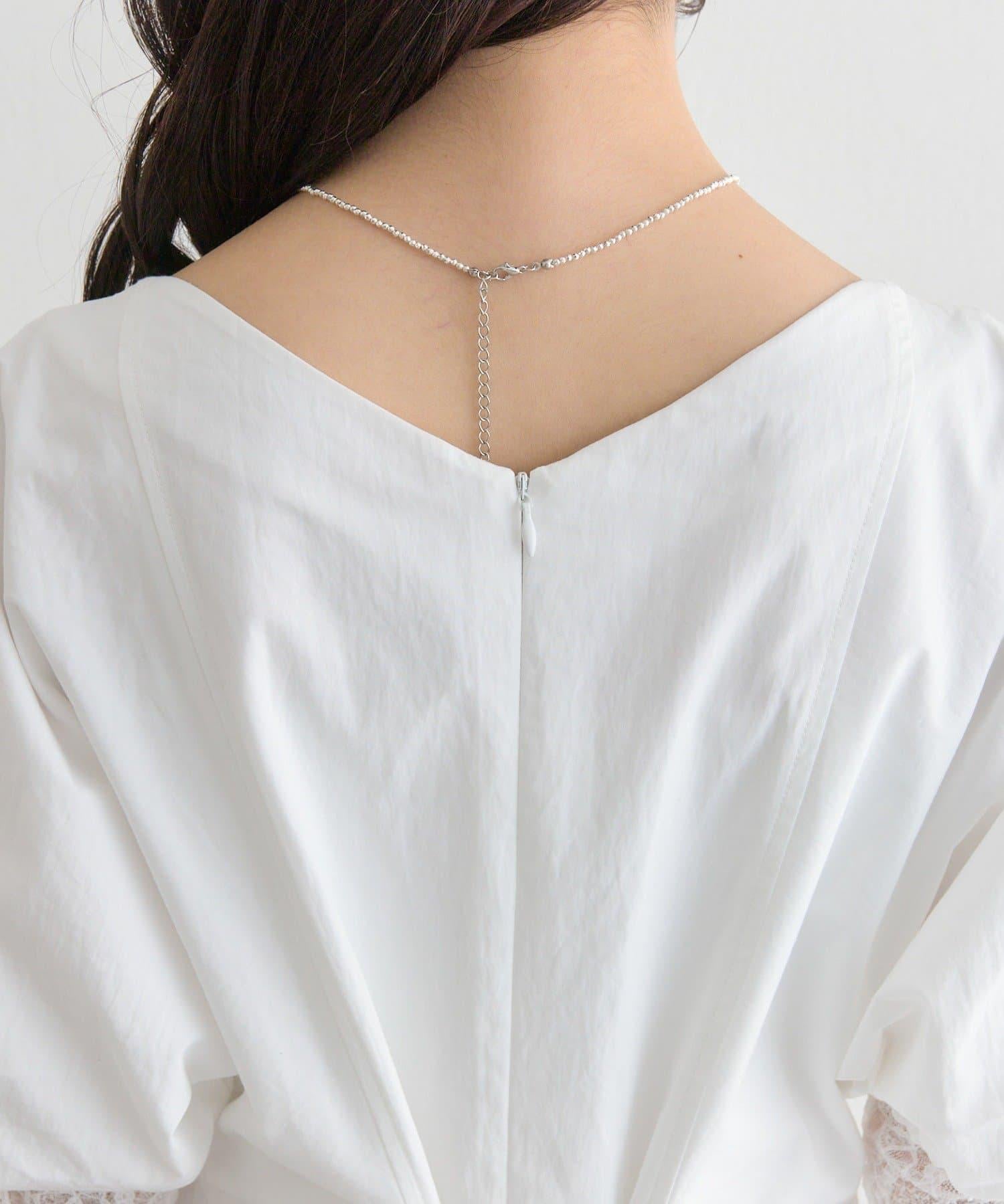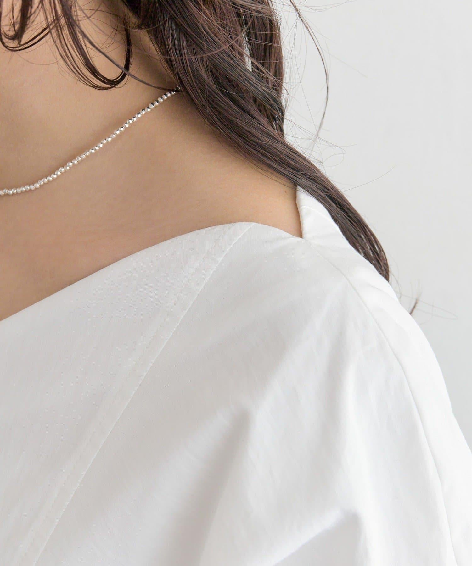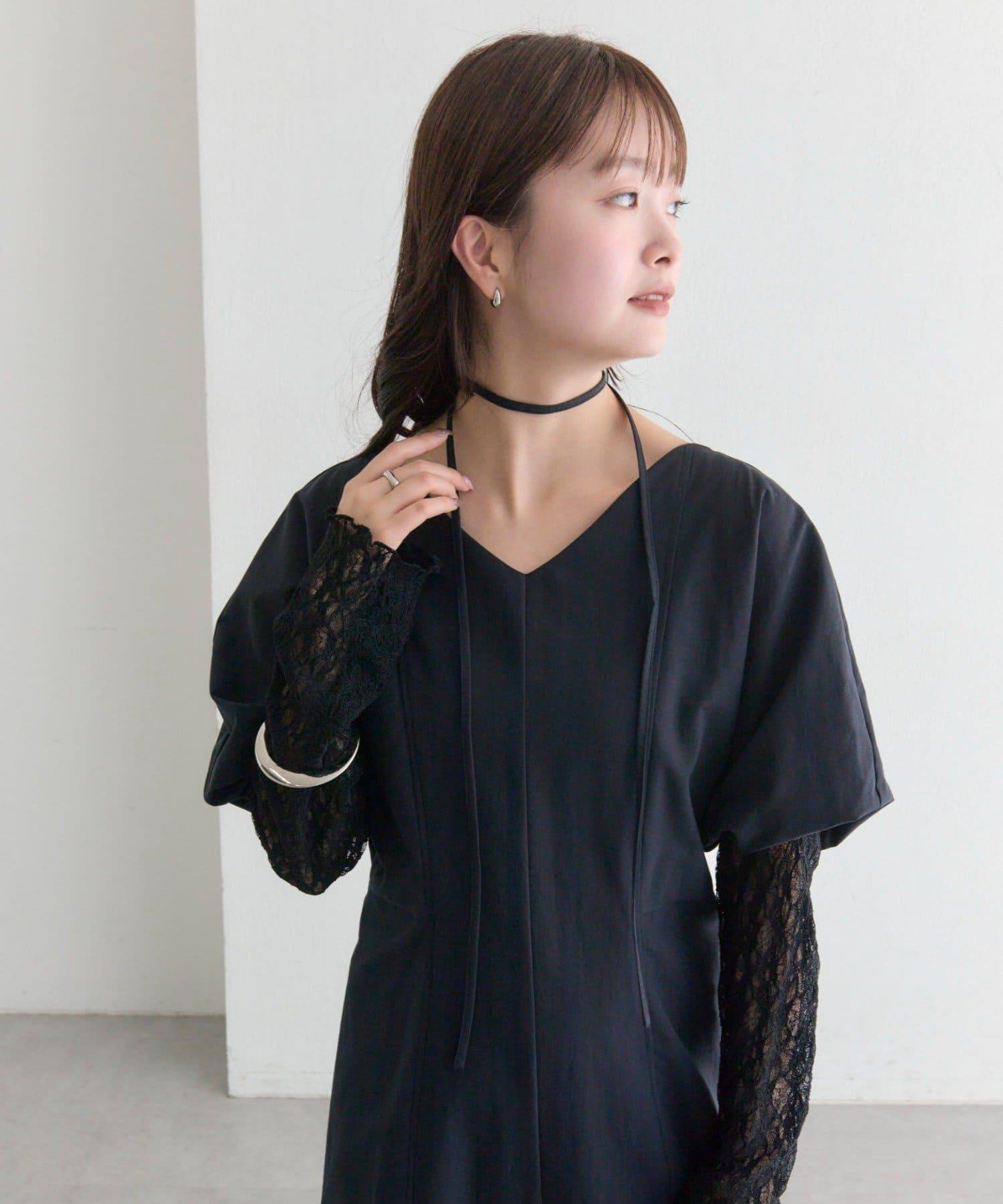適度的 V 形領口將肩部線條展現得淋漓盡致。可拆卸的choker◎,時尚感十足。