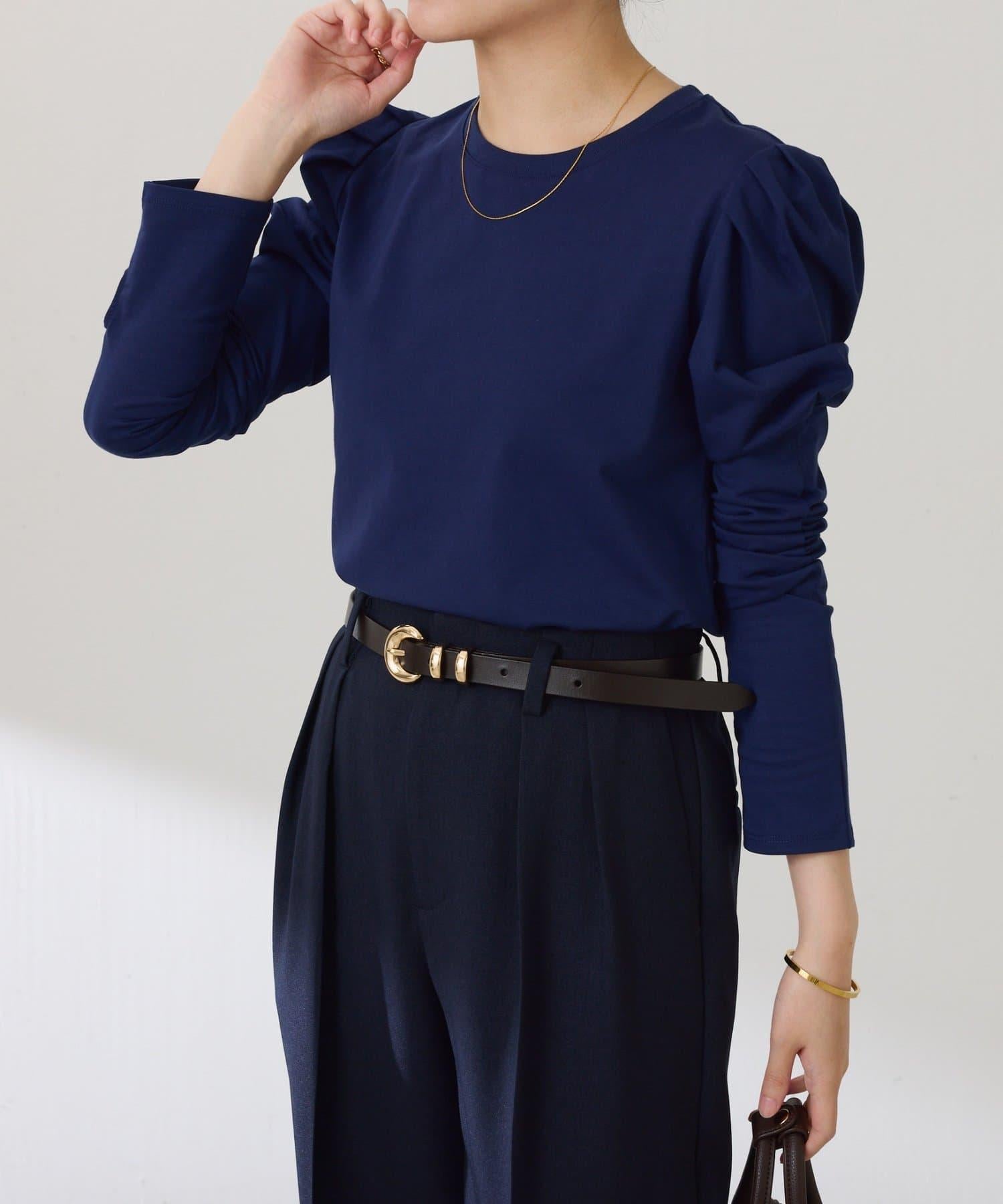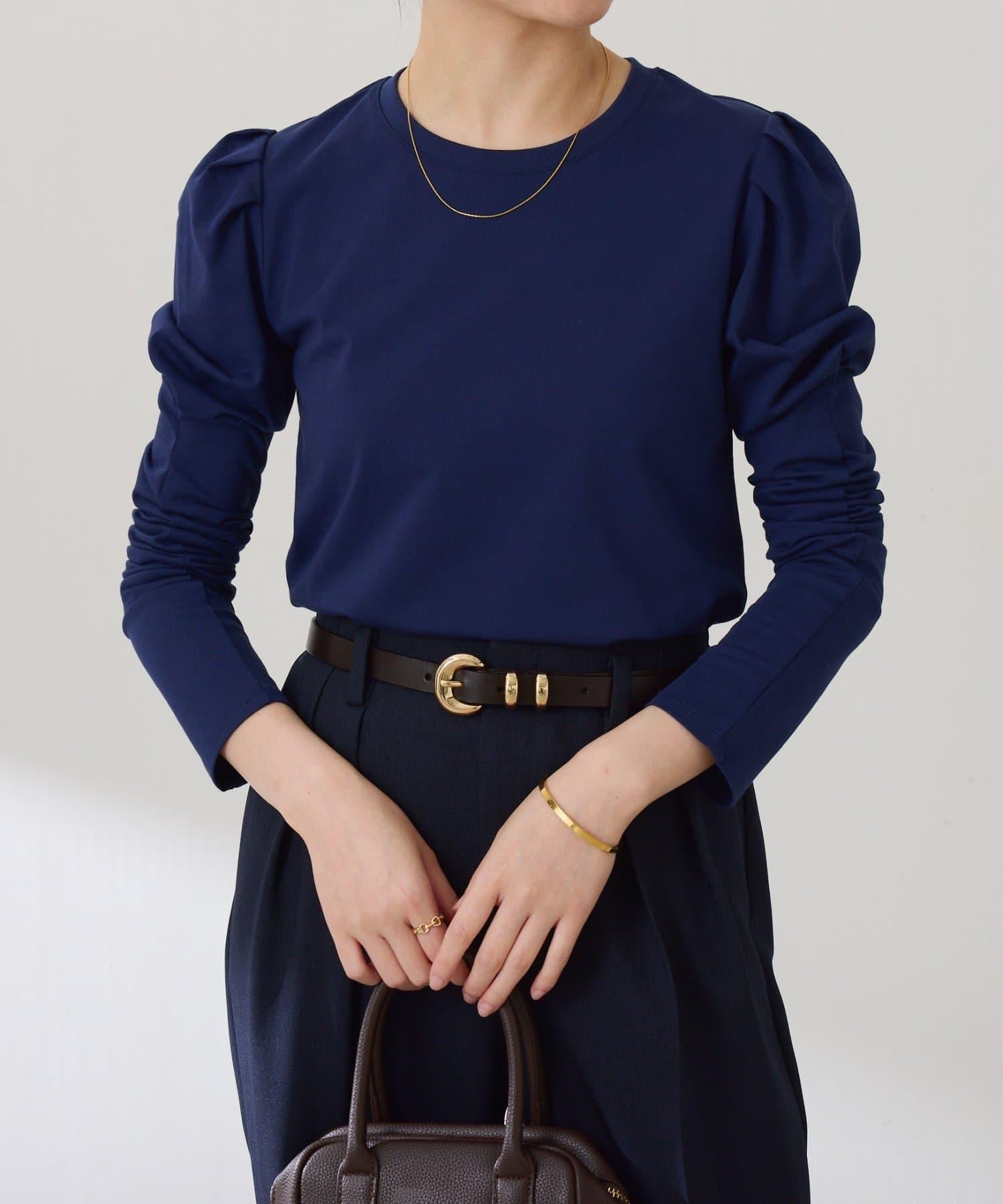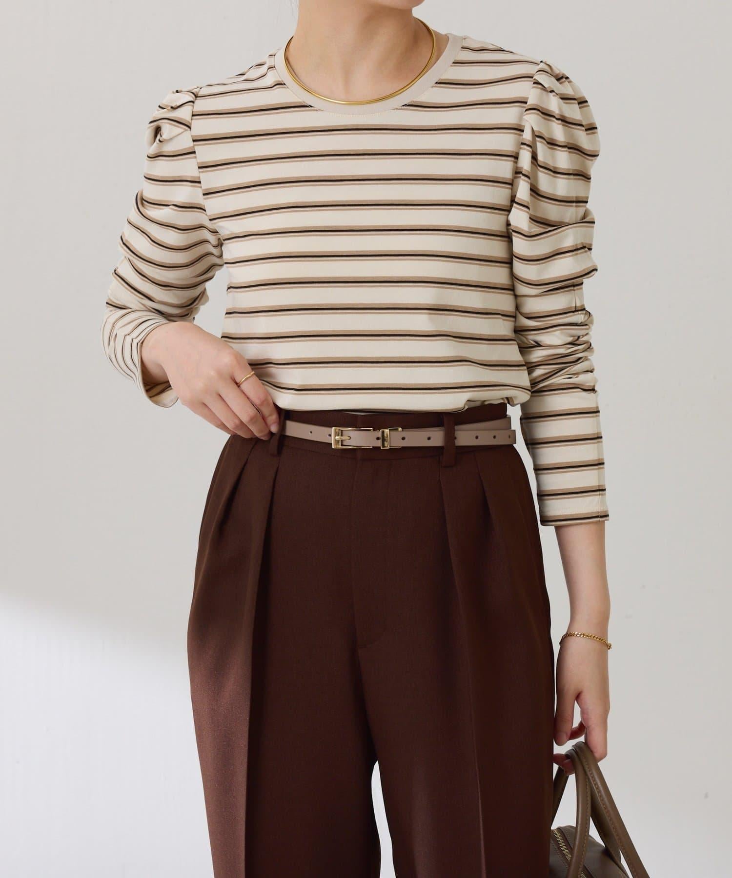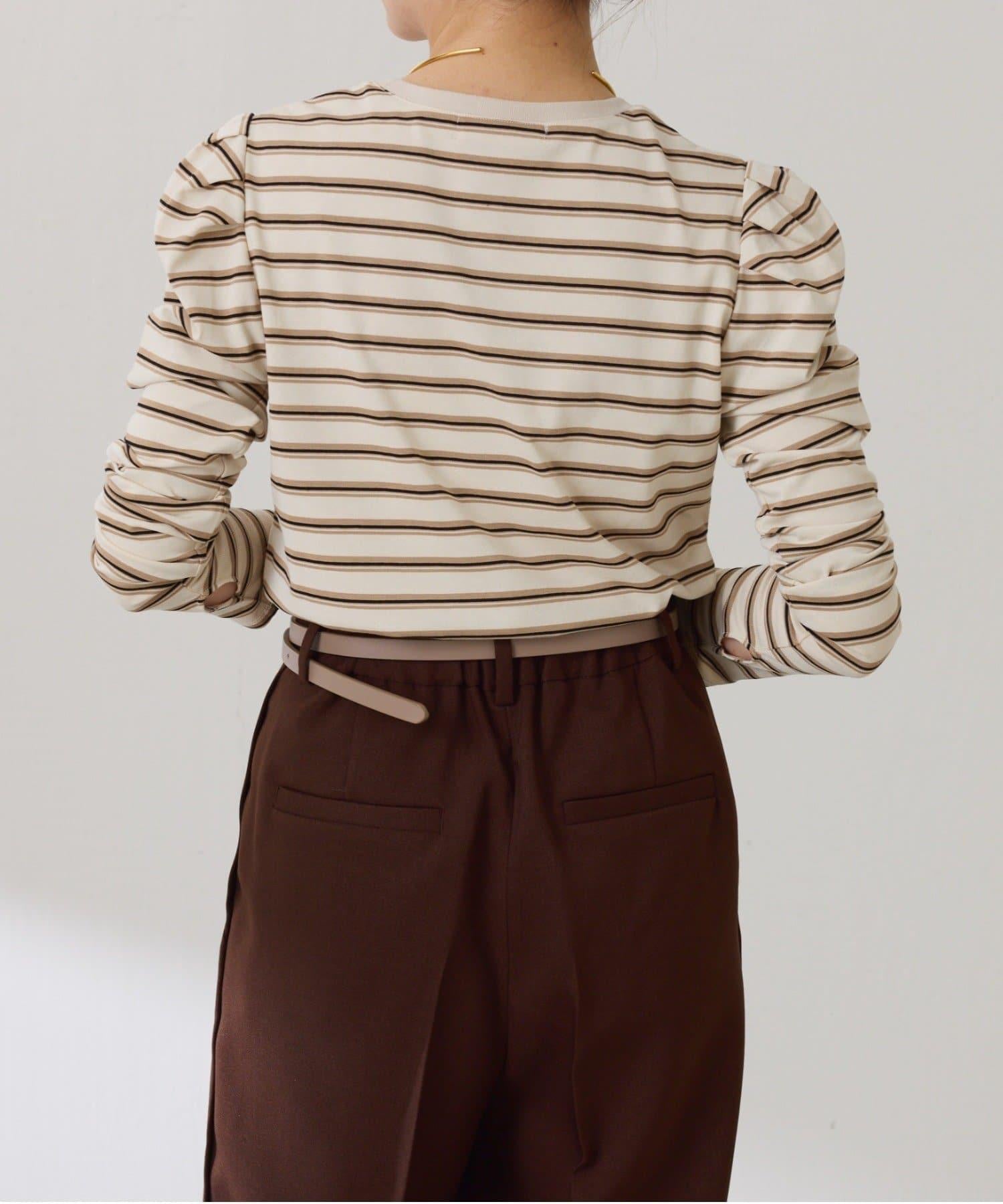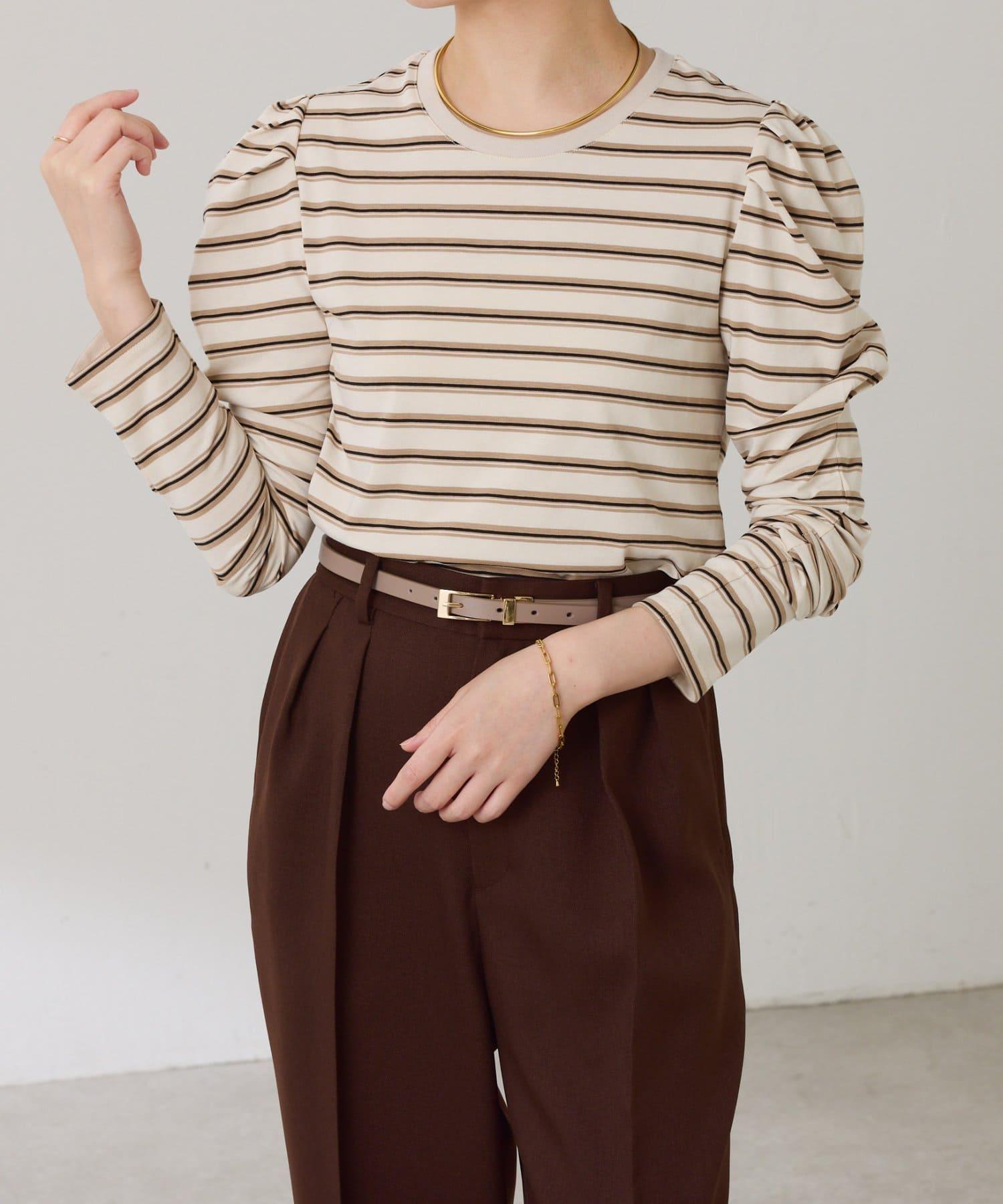 這款剪裁縫製的上衣肩部蓬鬆,體積適中。