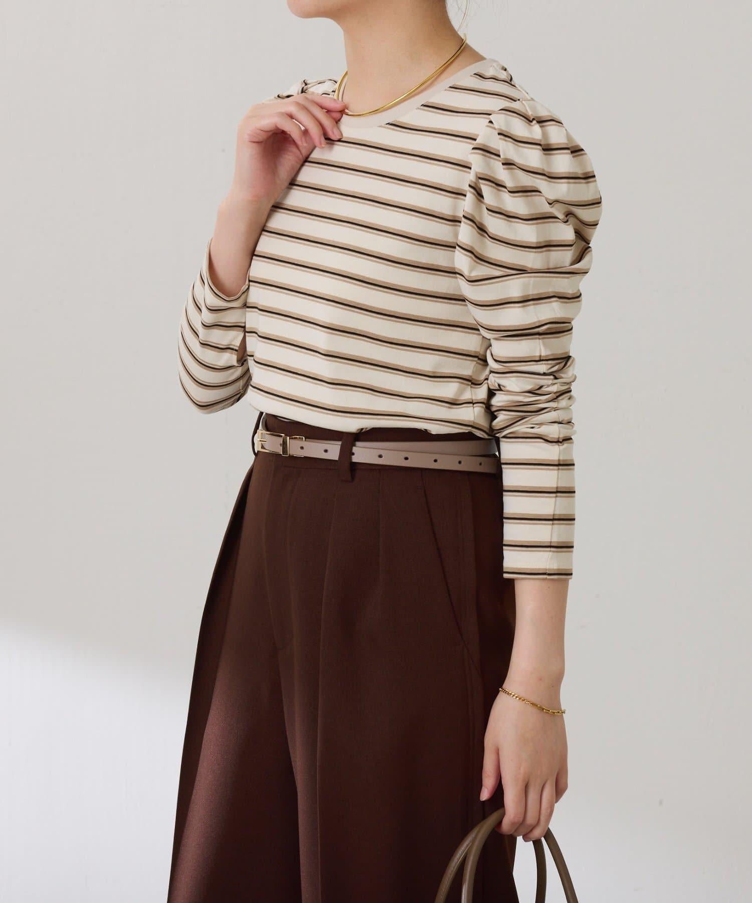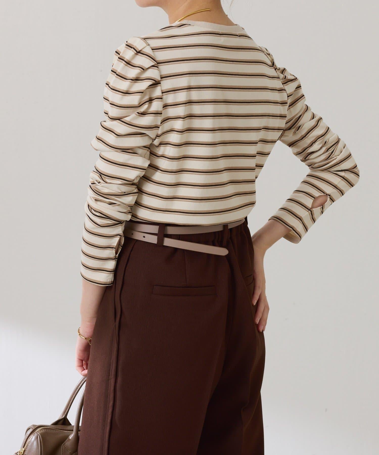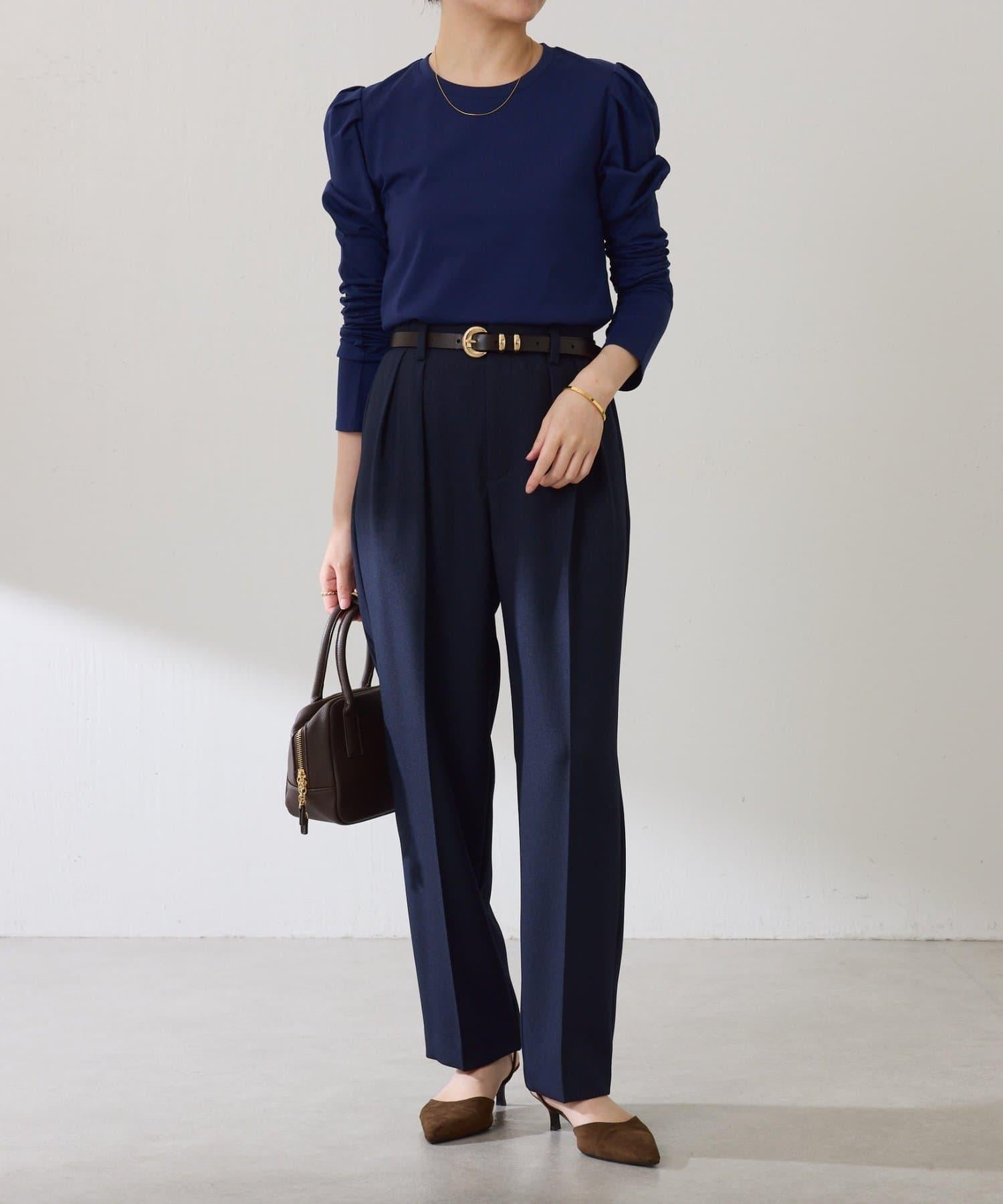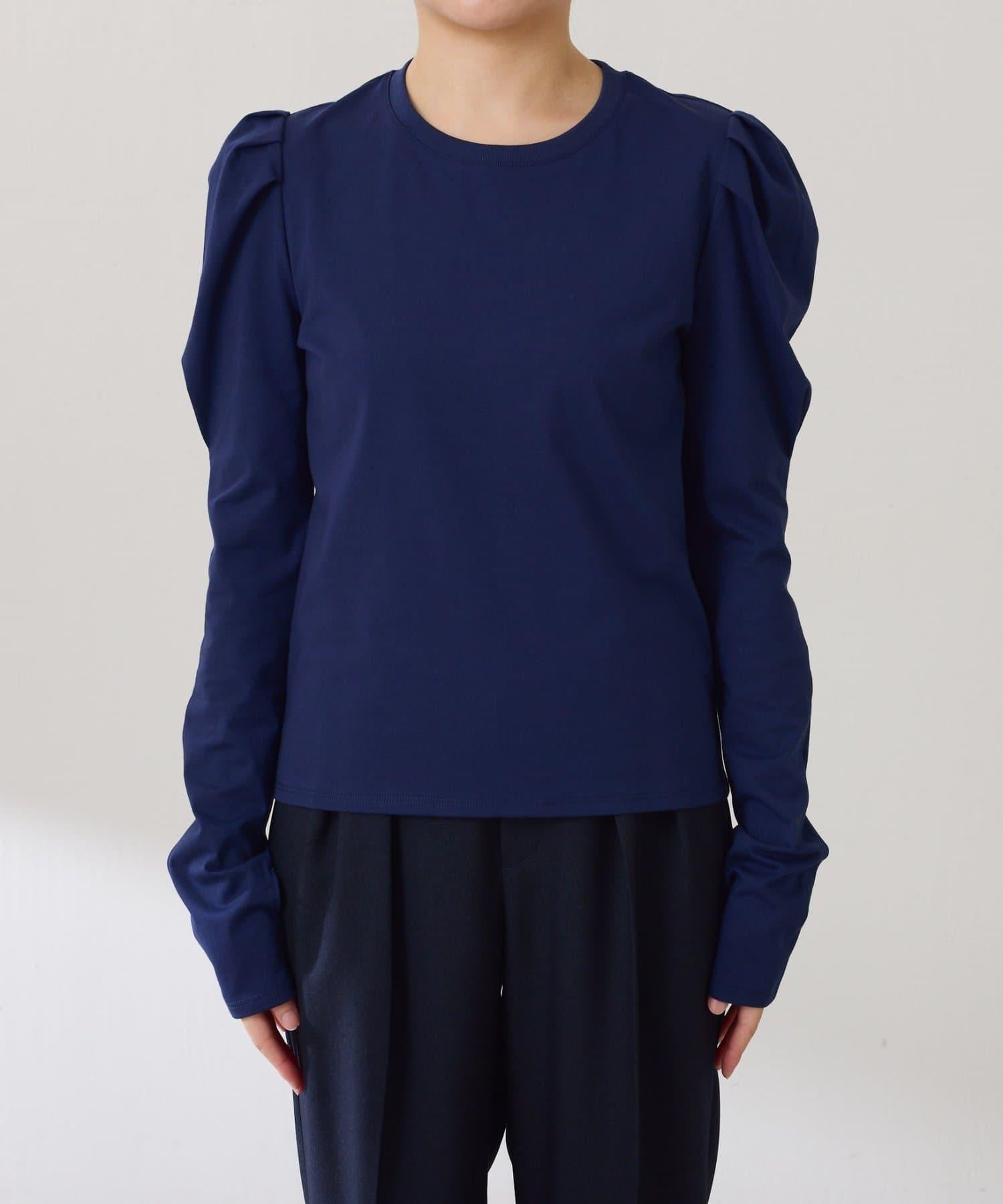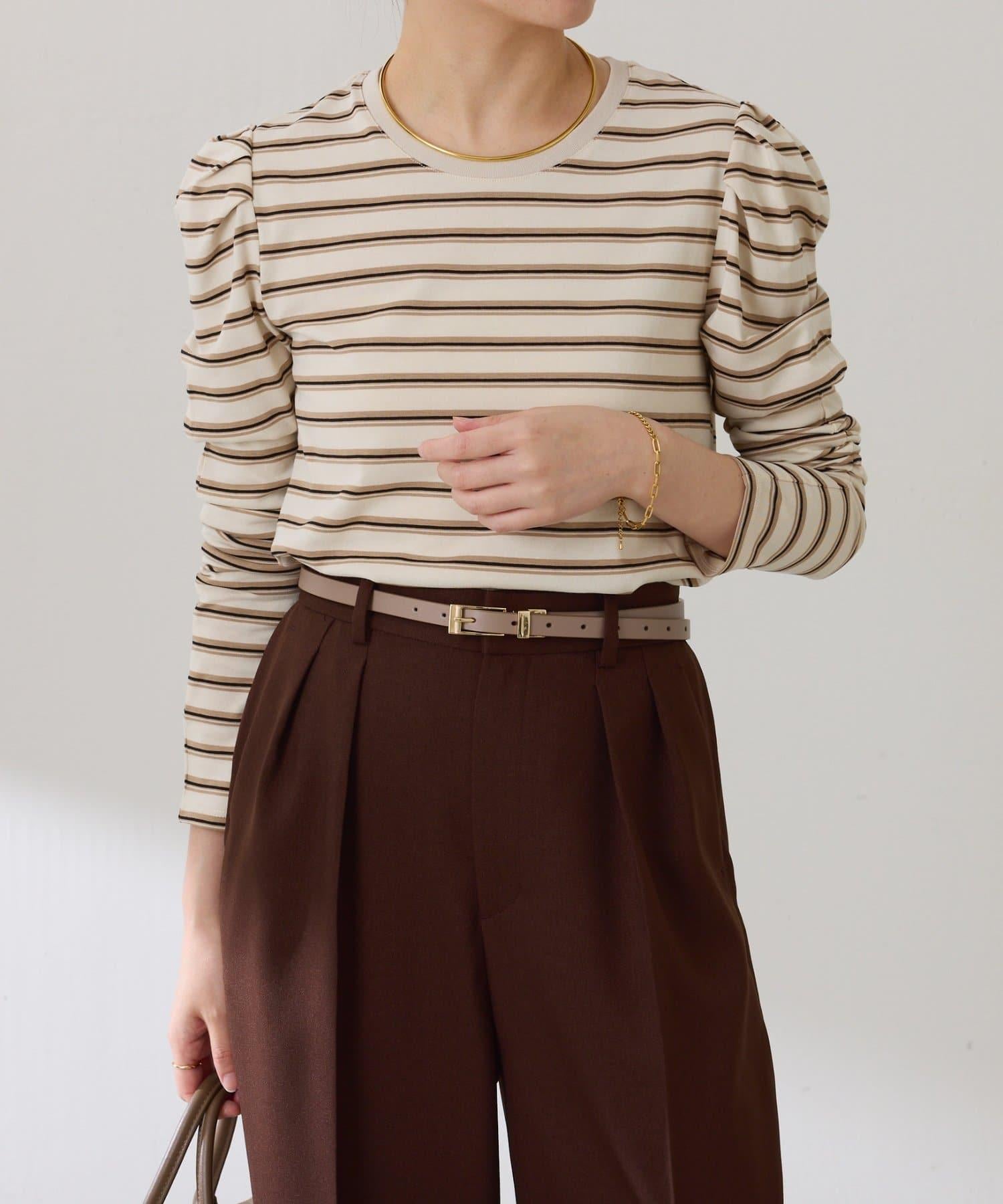 這款剪裁縫製的上衣肩部蓬鬆,體積適中。