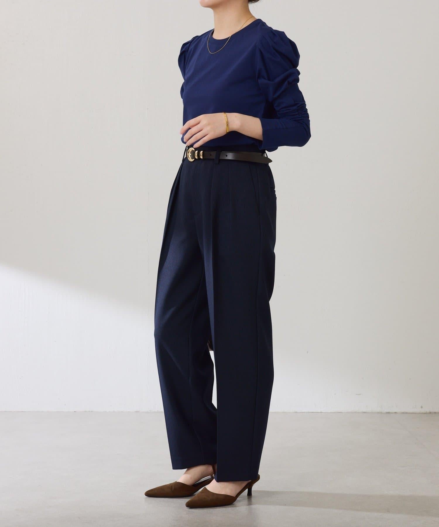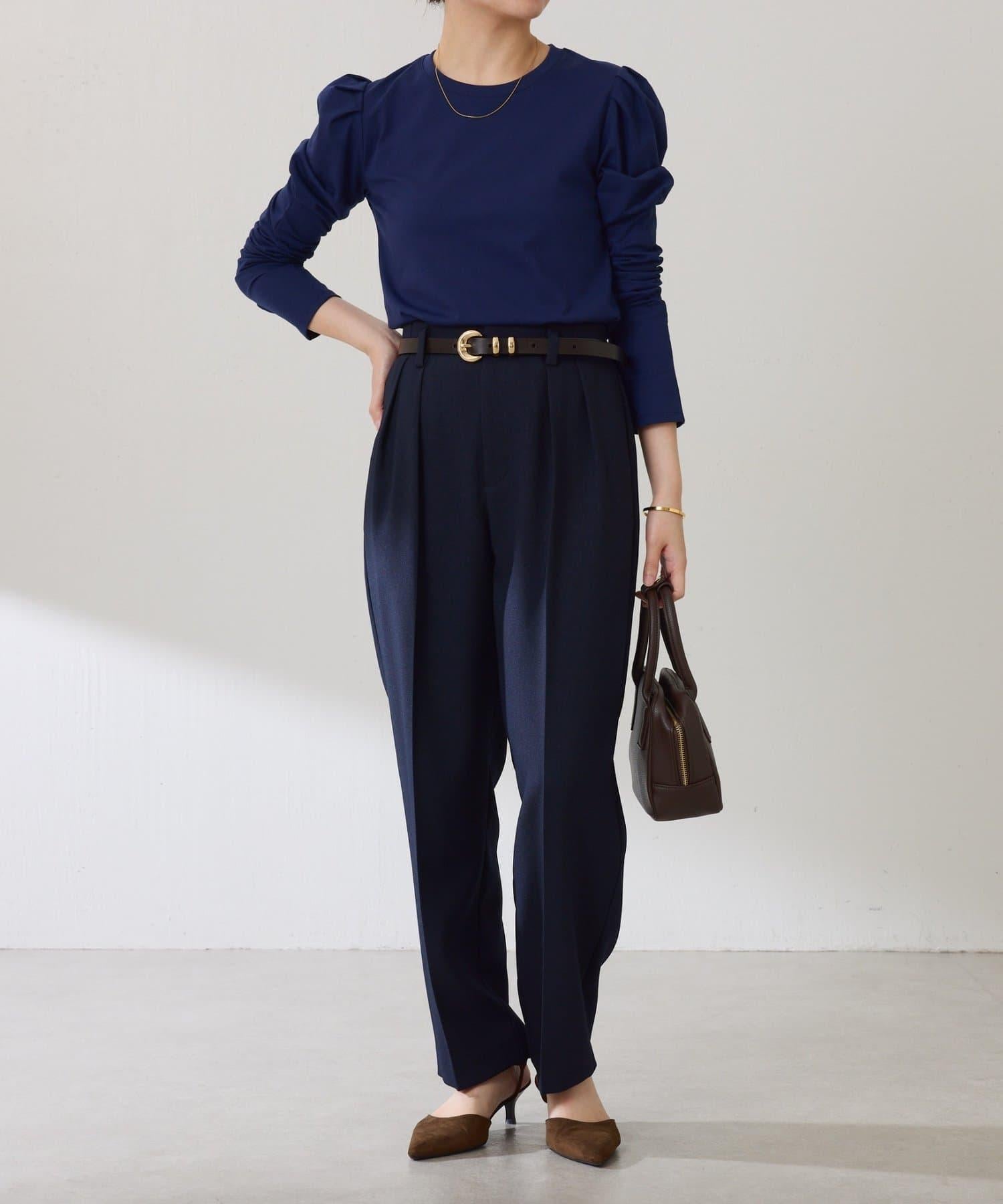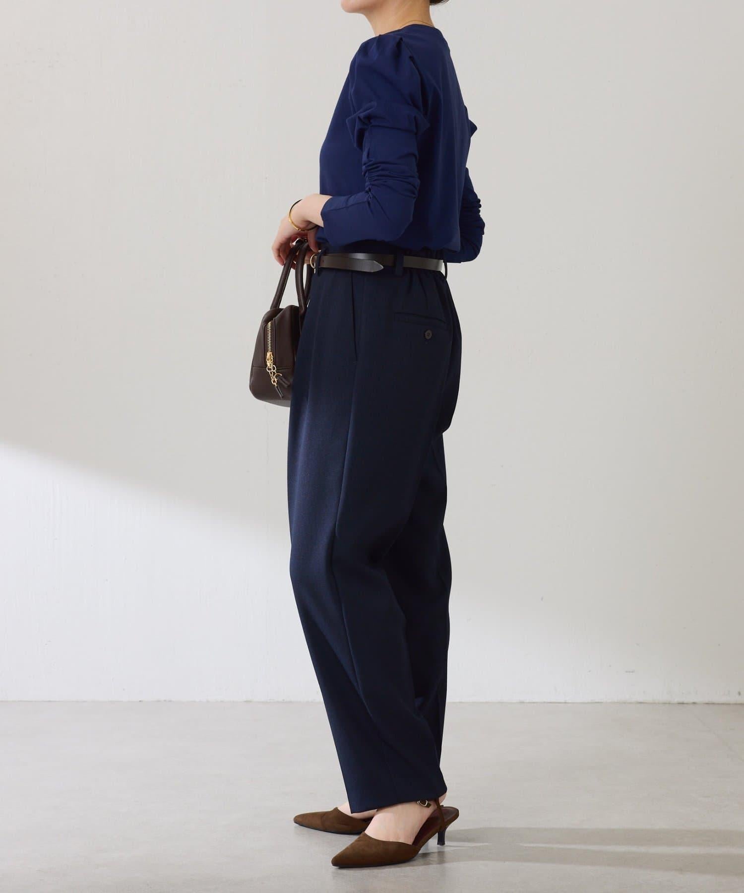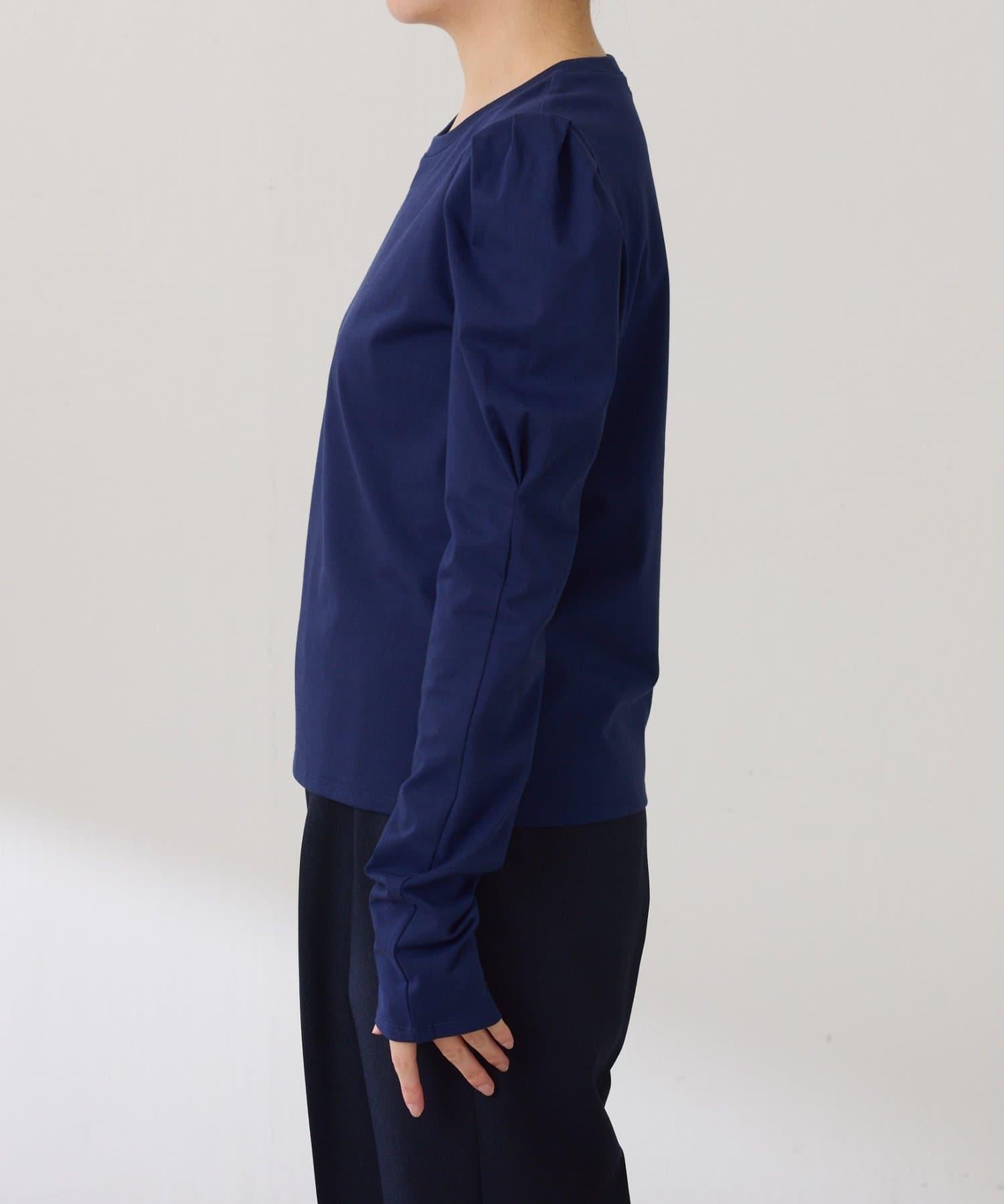 這款剪裁縫製的上衣肩部蓬鬆,體積適中。