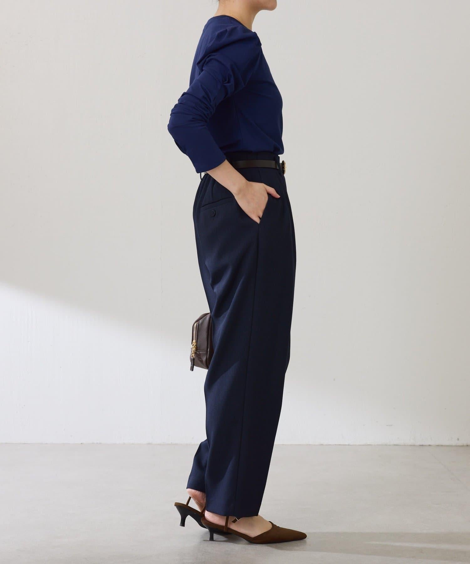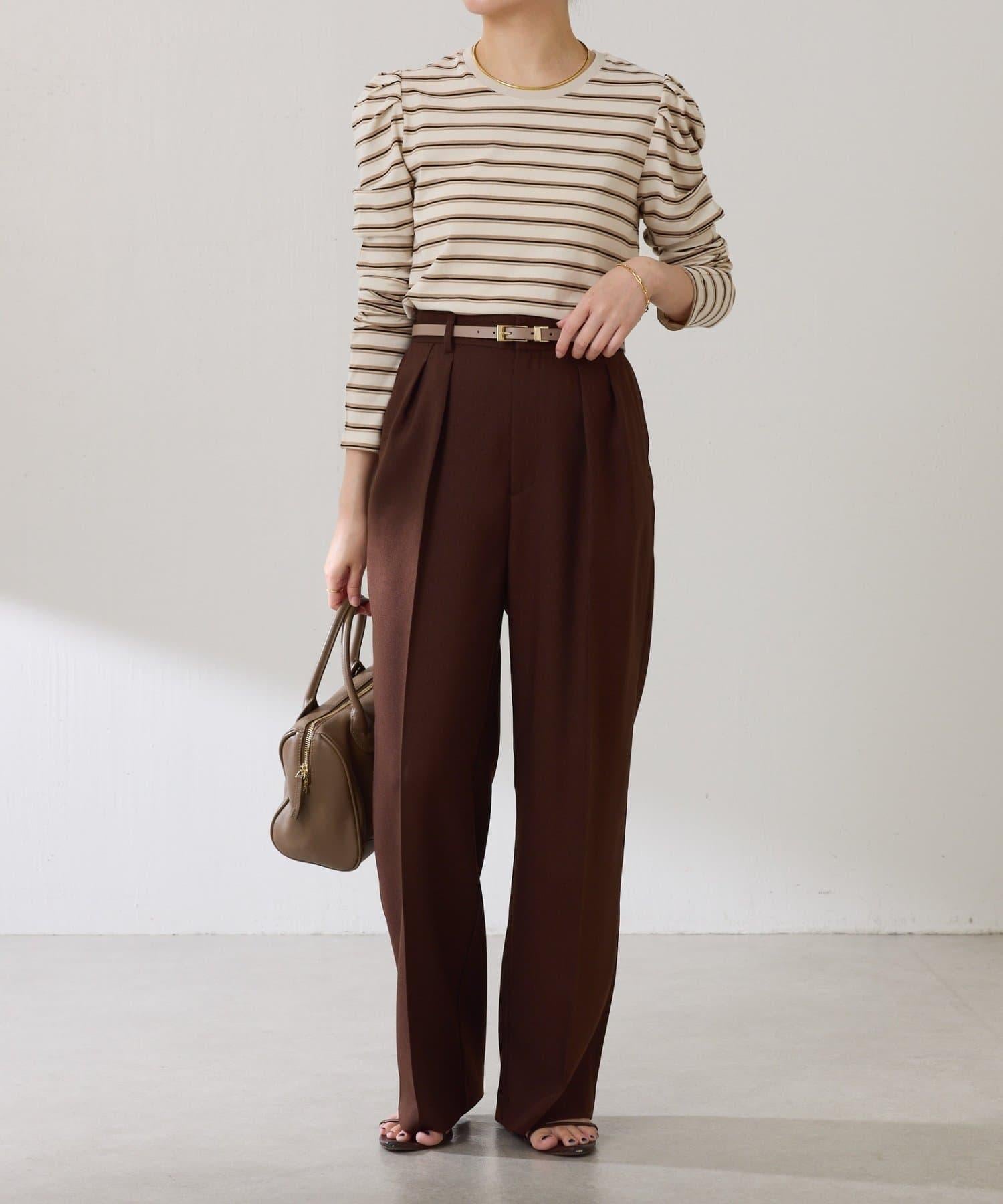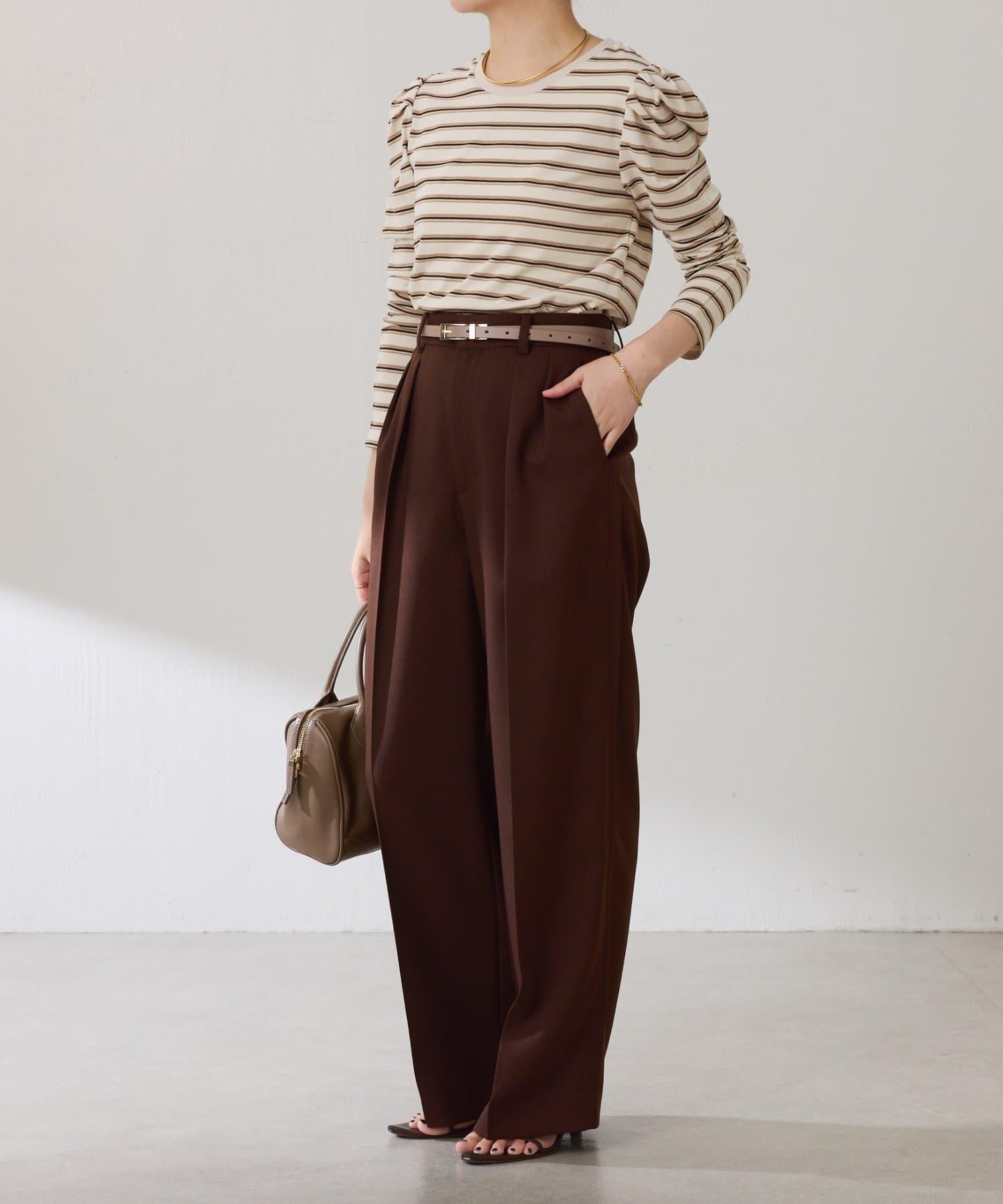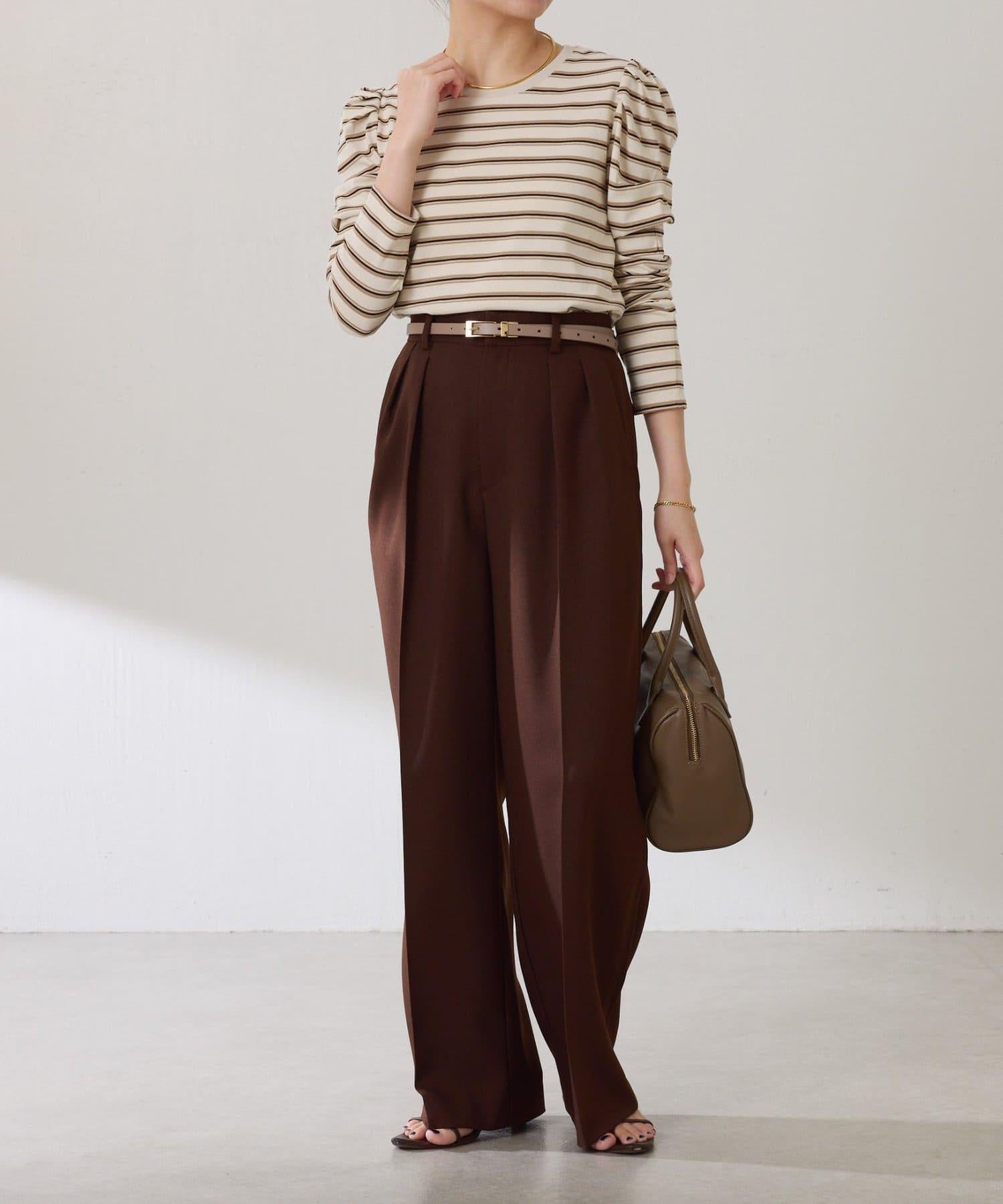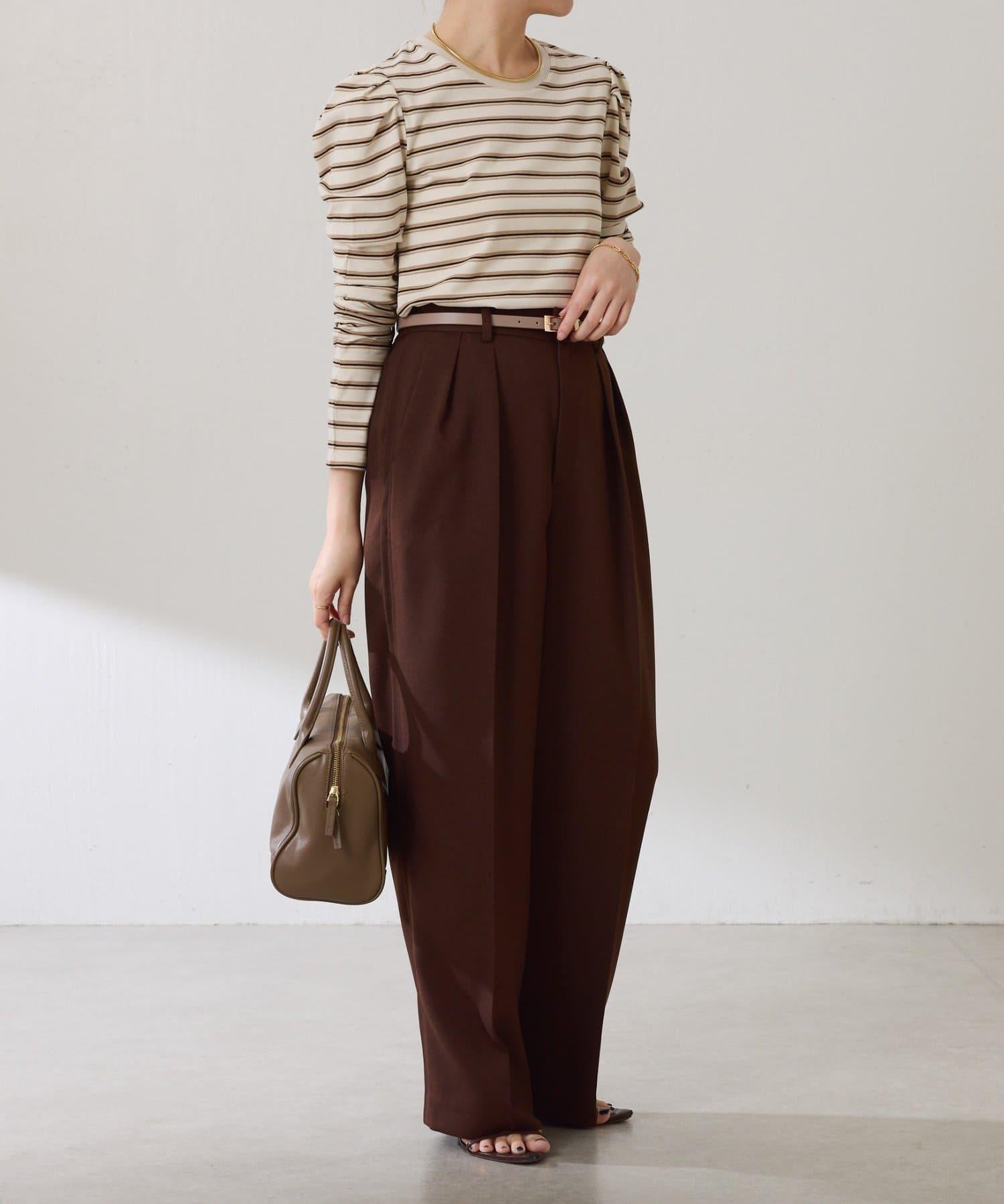 這款剪裁縫製的上衣肩部蓬鬆,體積適中。