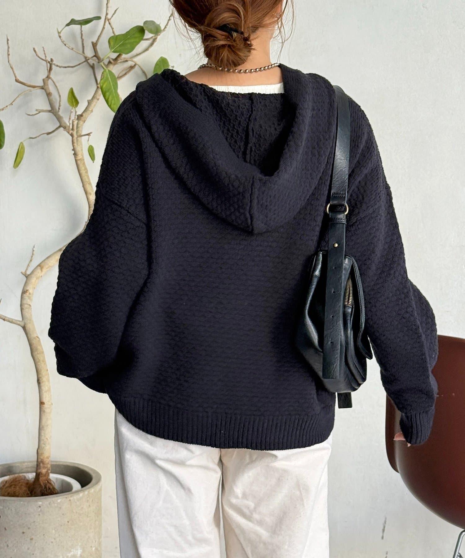 採用富有表現力的 "pokopoko "針織面料的針織外套。