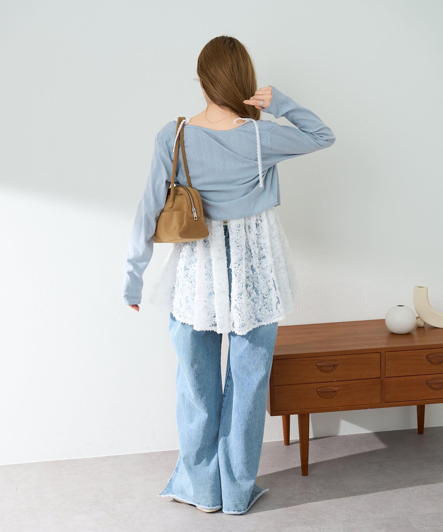 後背的繫帶可以改變衣身的寬度,因此可以根據內搭的不同穿著,不會有任何僵硬感。