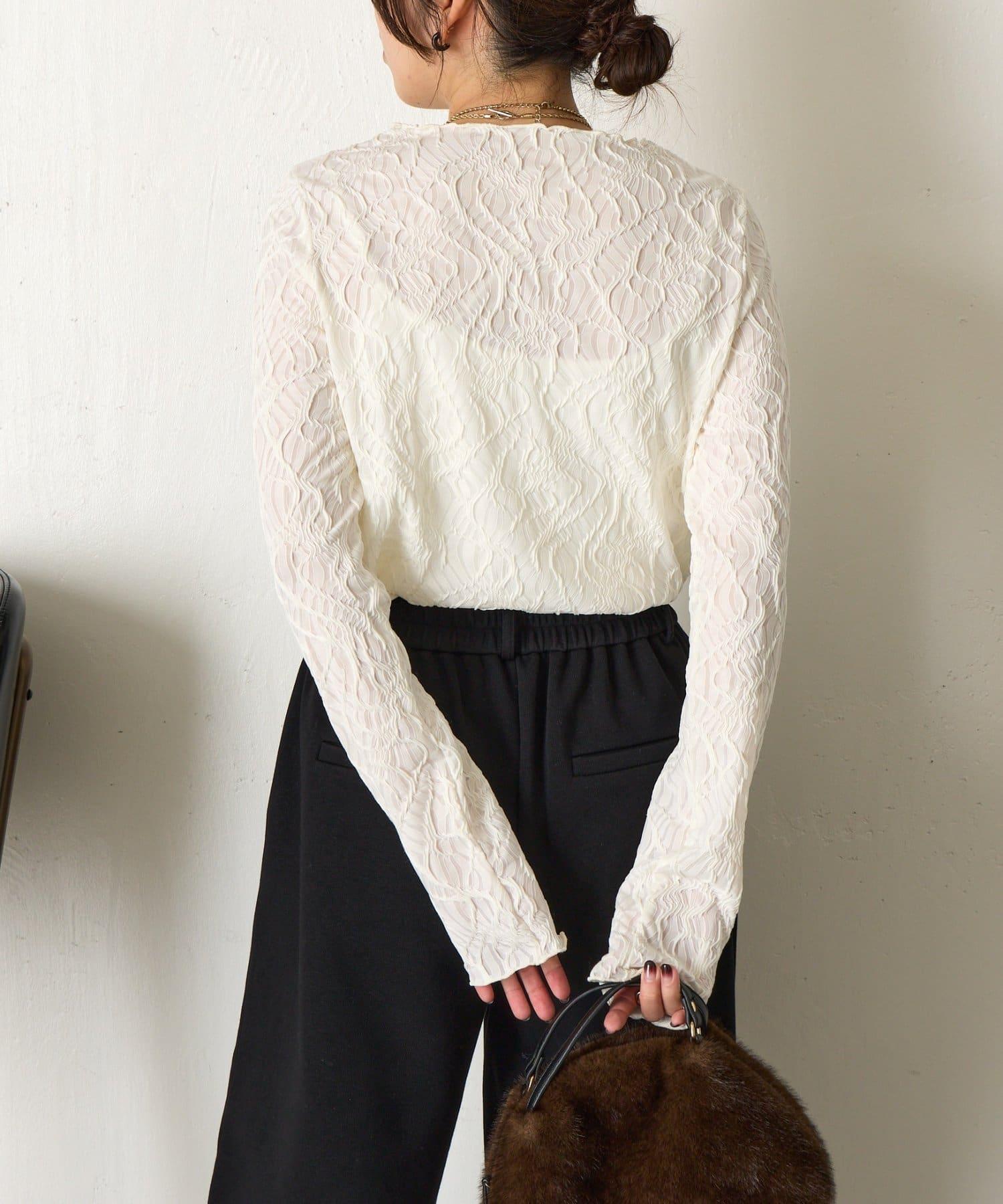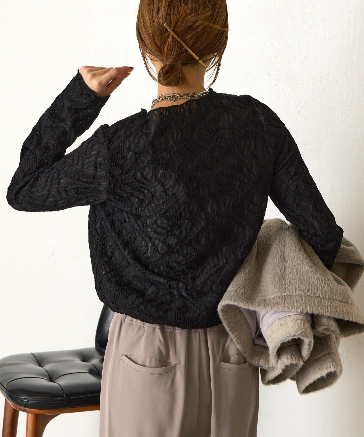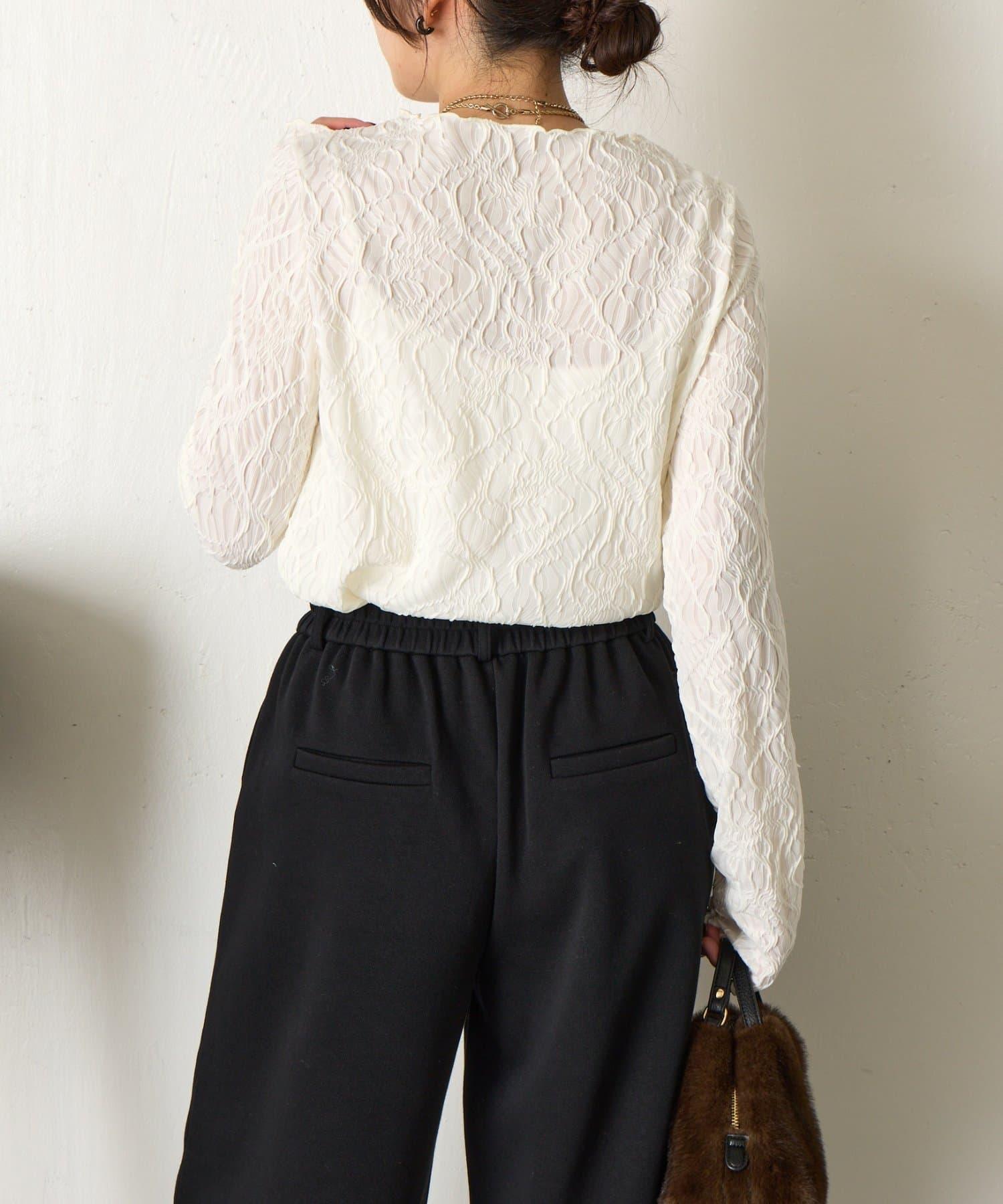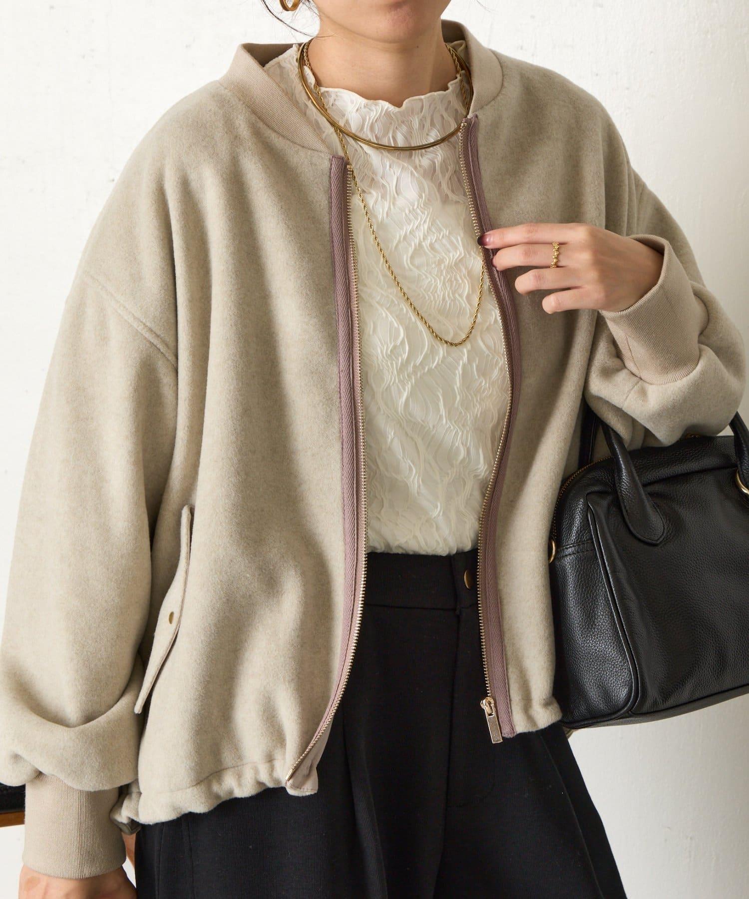 上衣蓬鬆的表面增加了造型的層次感,使其成為單件搭配的主角。