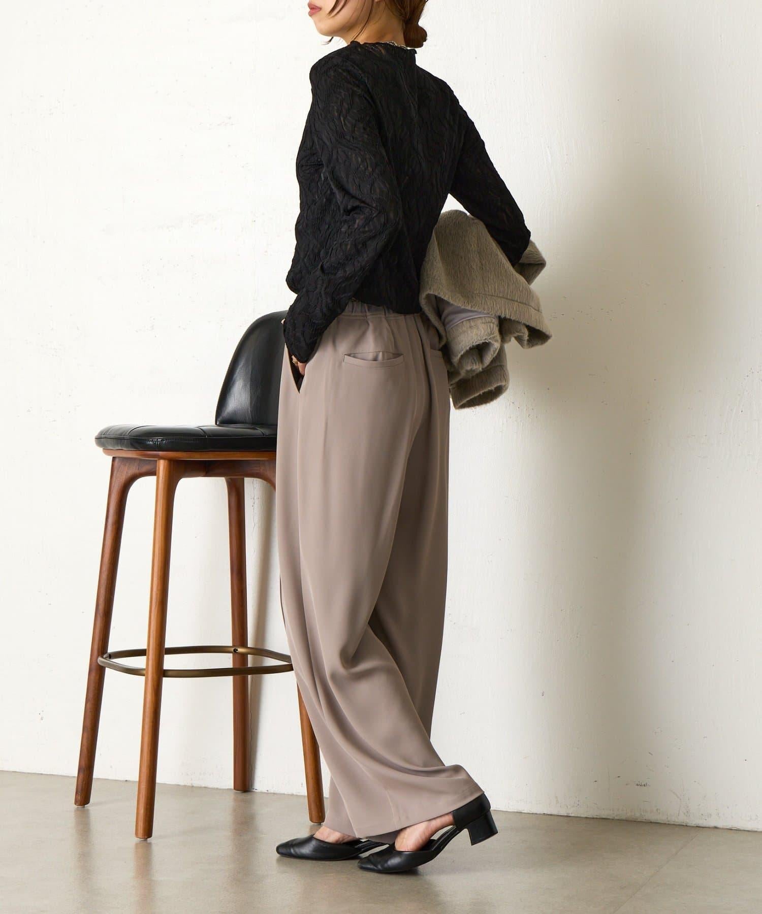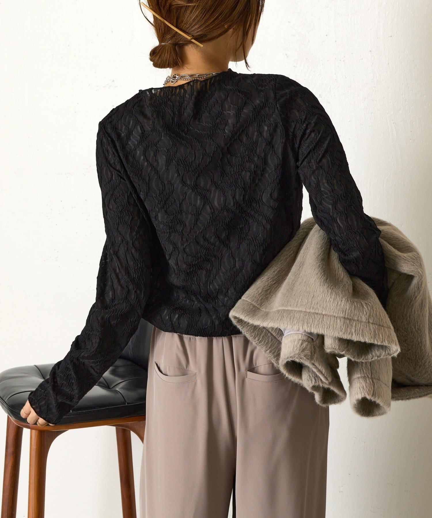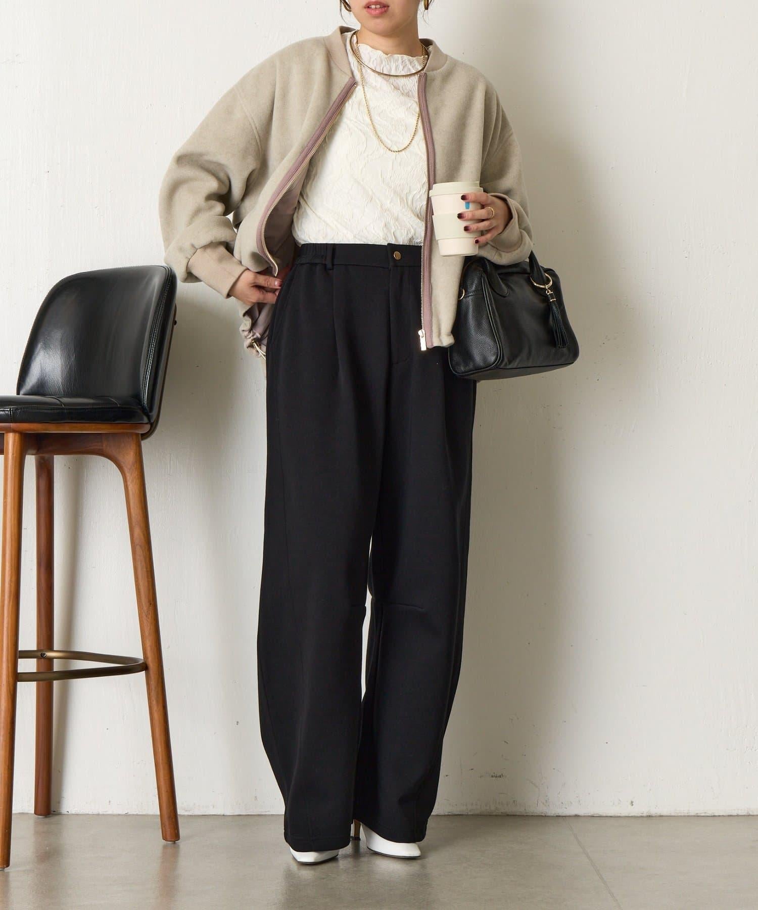 上衣蓬鬆的表面增加了造型的層次感,使其成為單件搭配的主角。