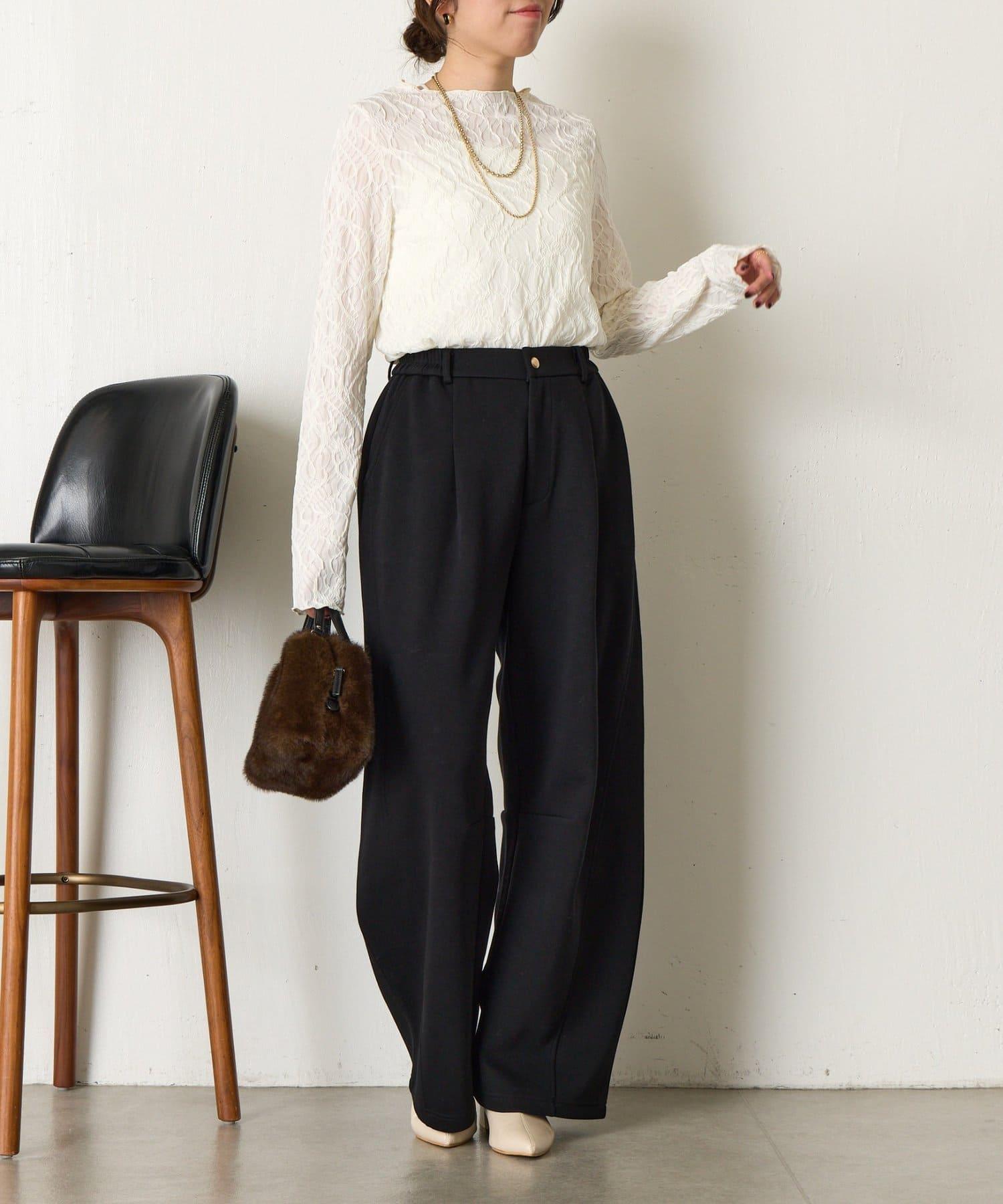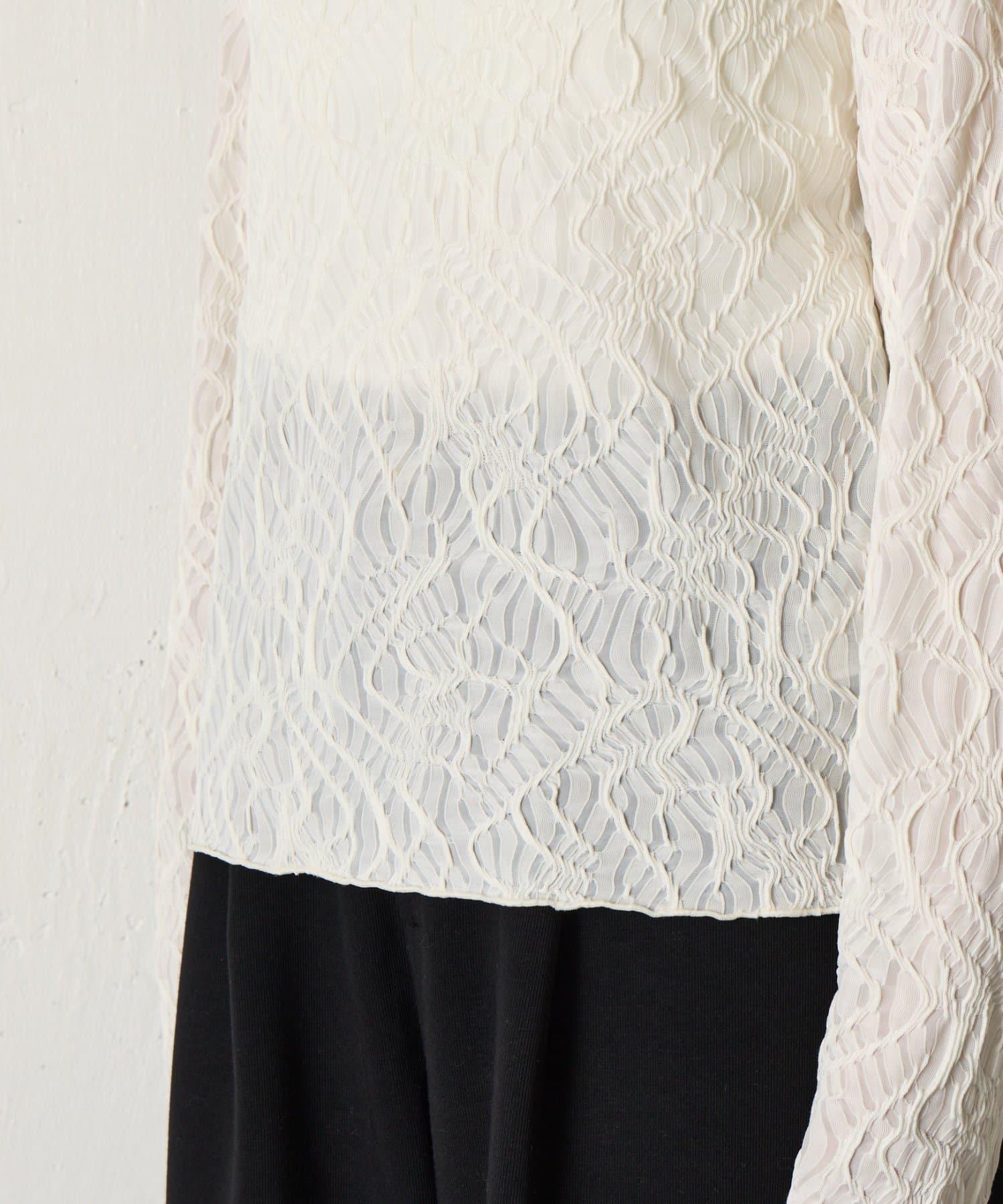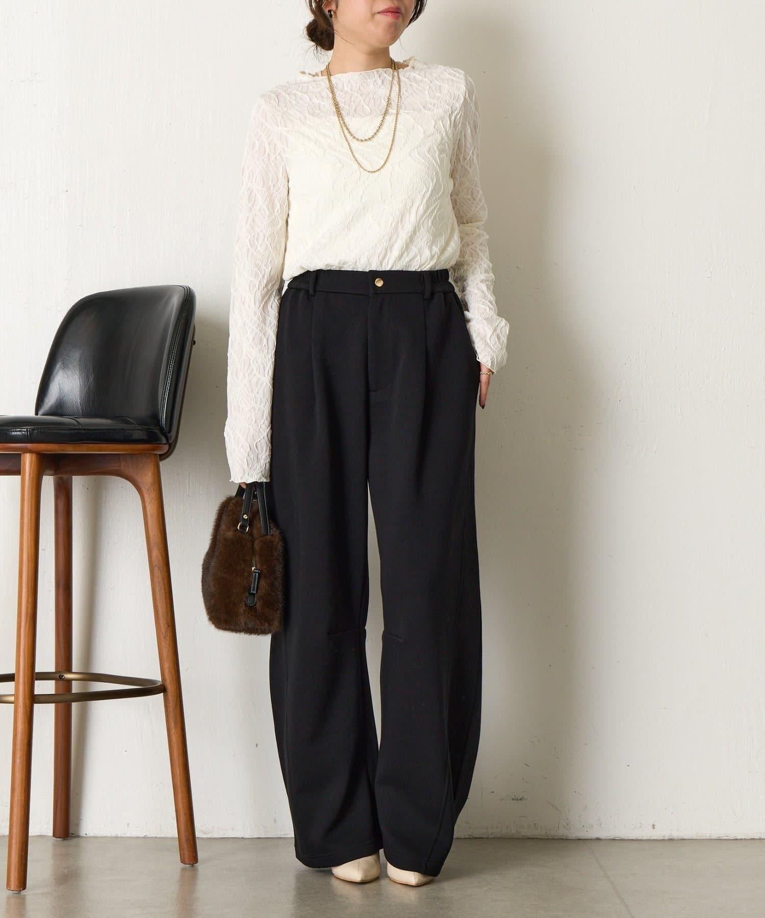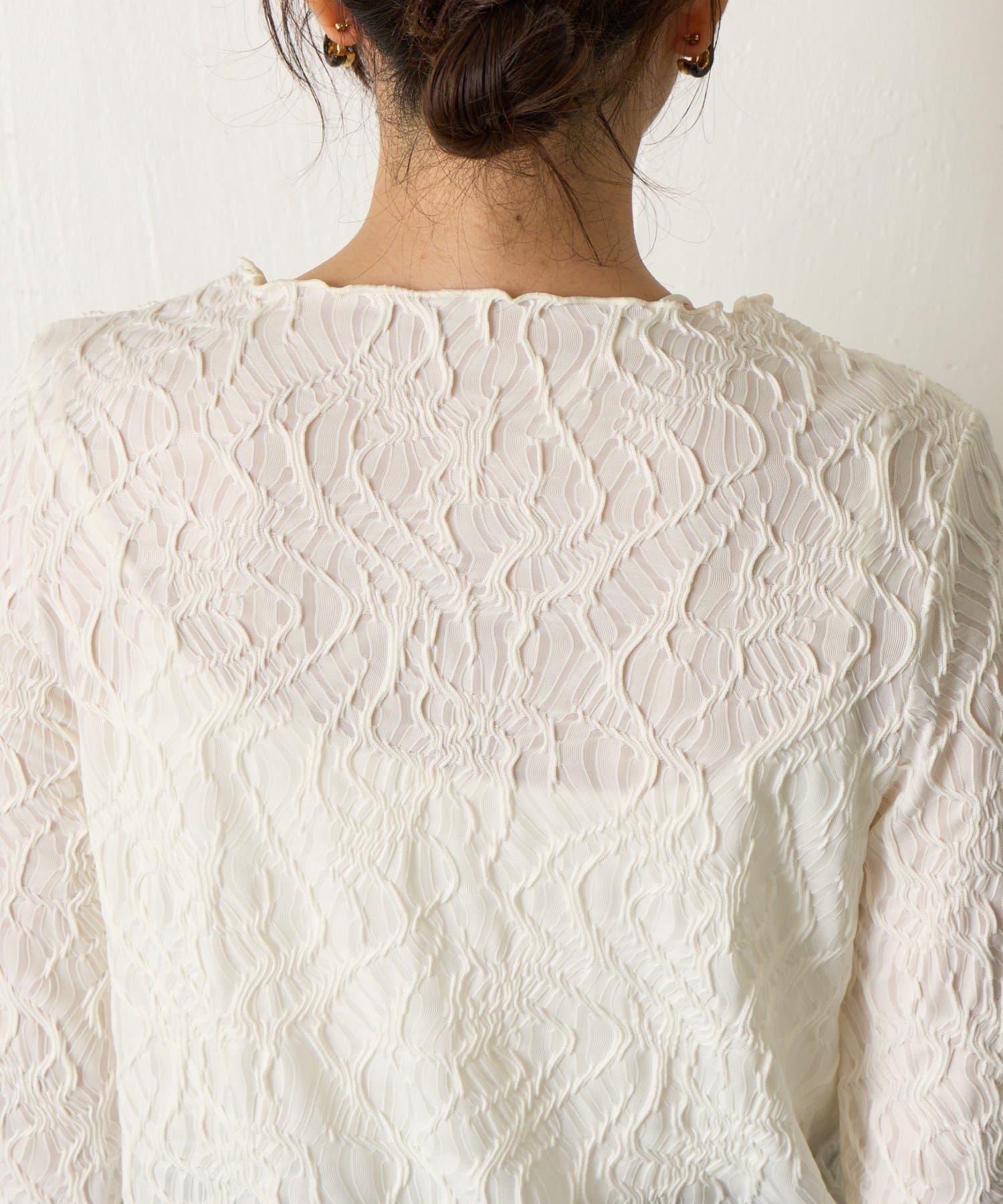 上衣蓬鬆的表面增加了造型的層次感,使其成為單件搭配的主角。