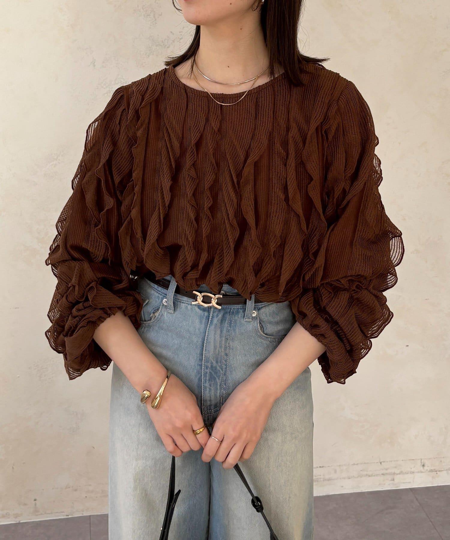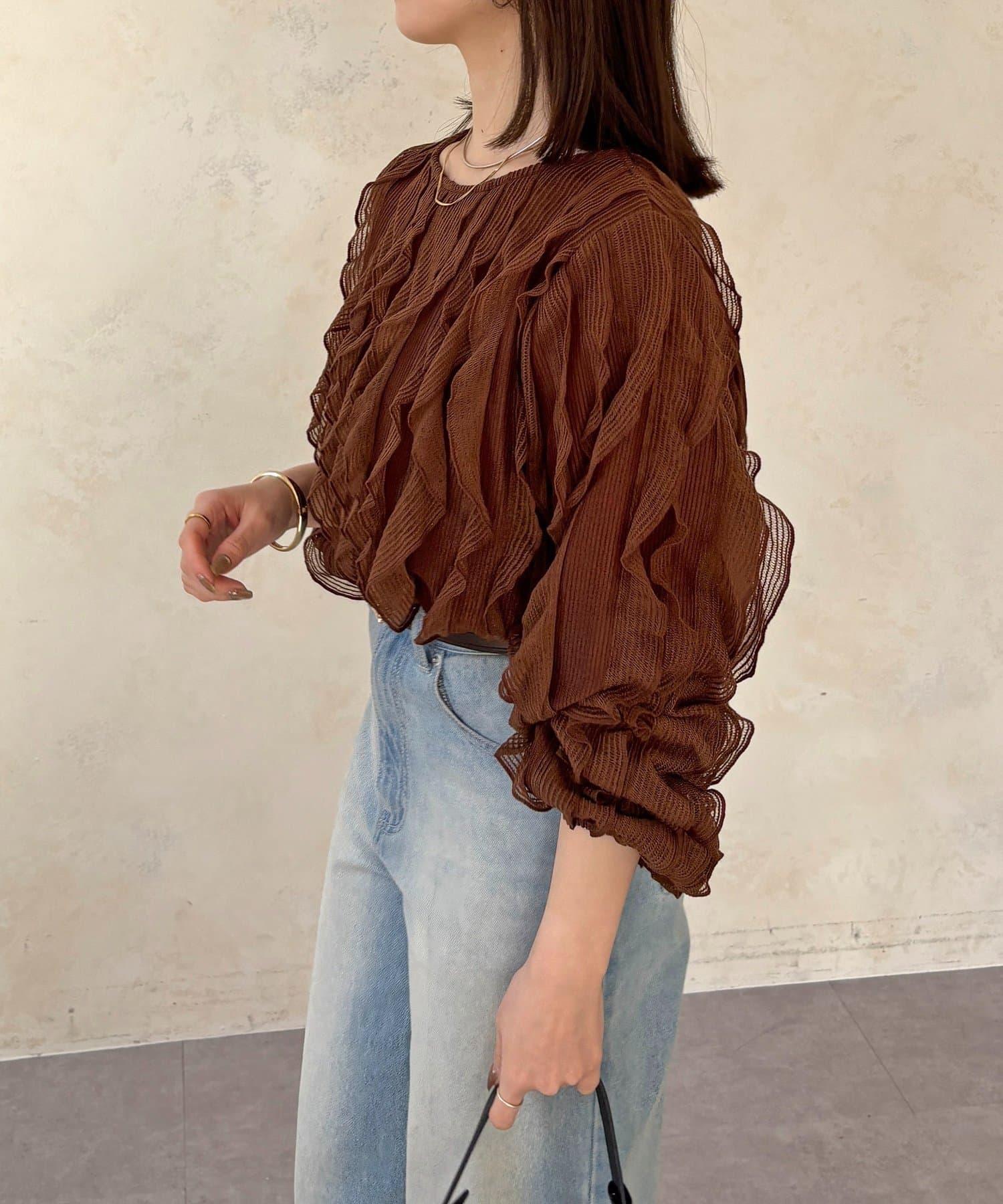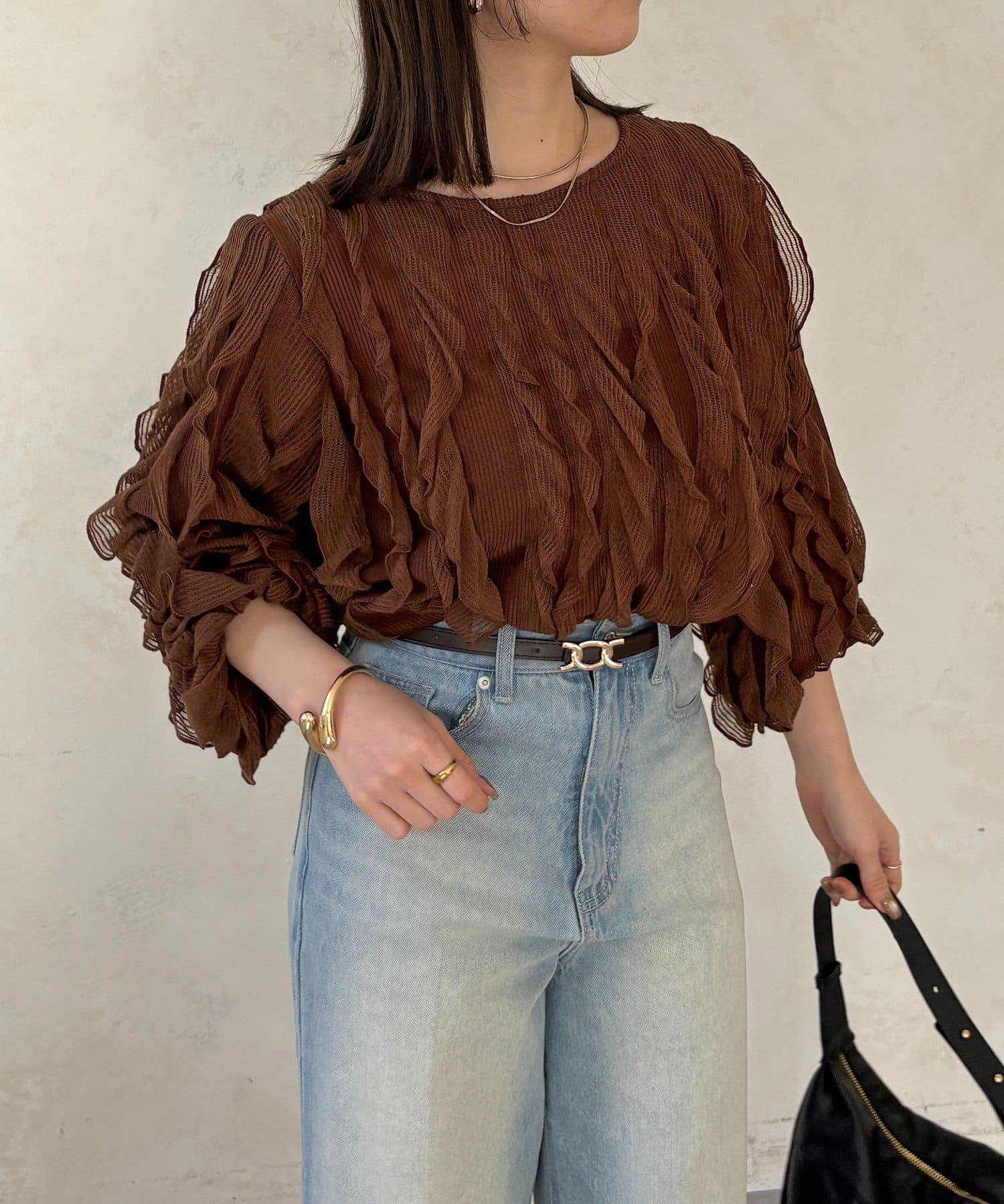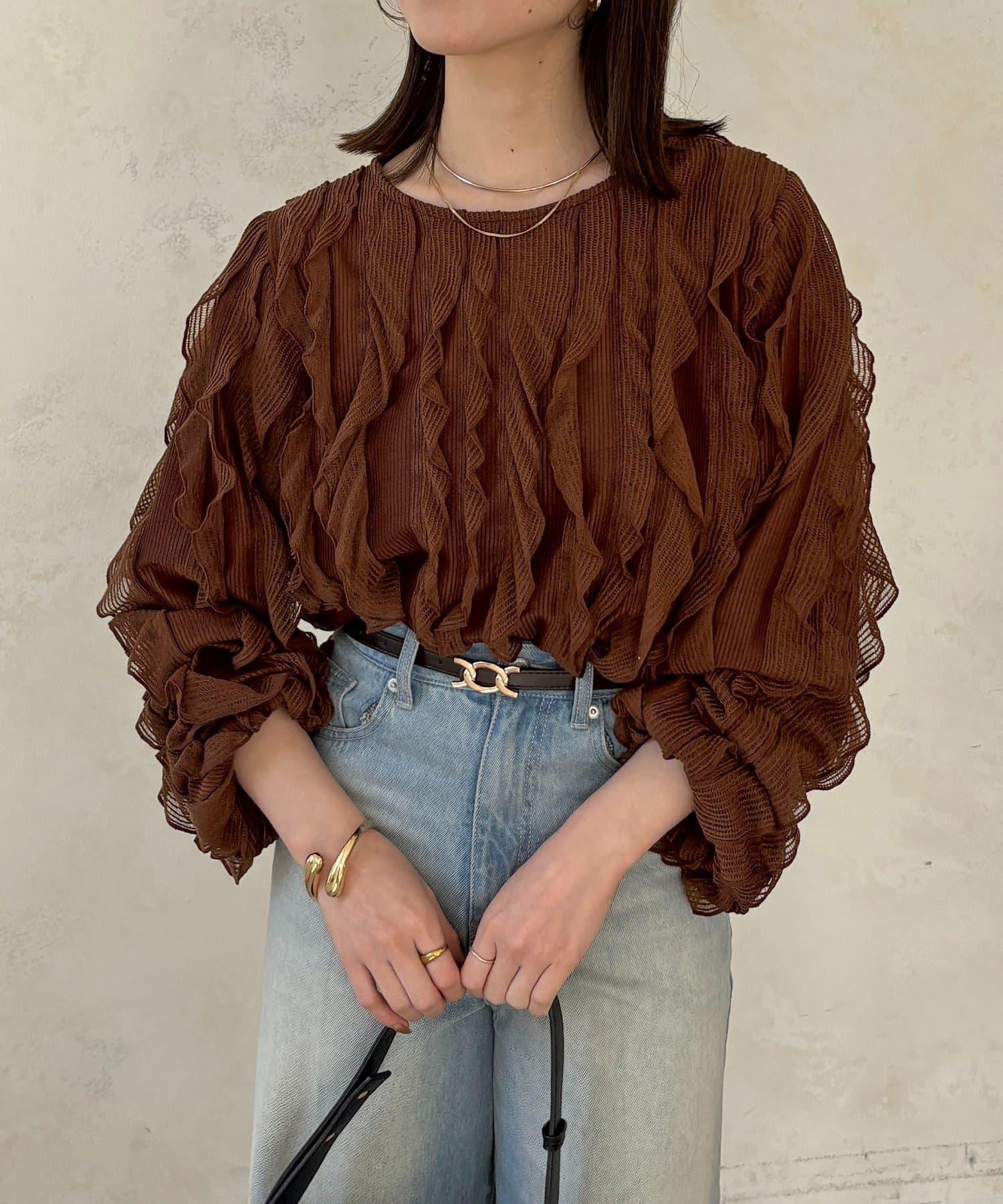 時尚針織衫,褶邊引人注目。