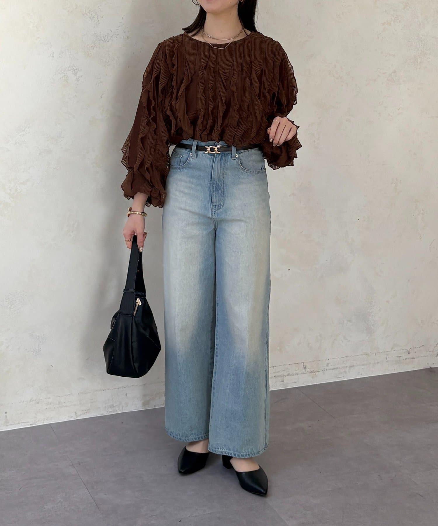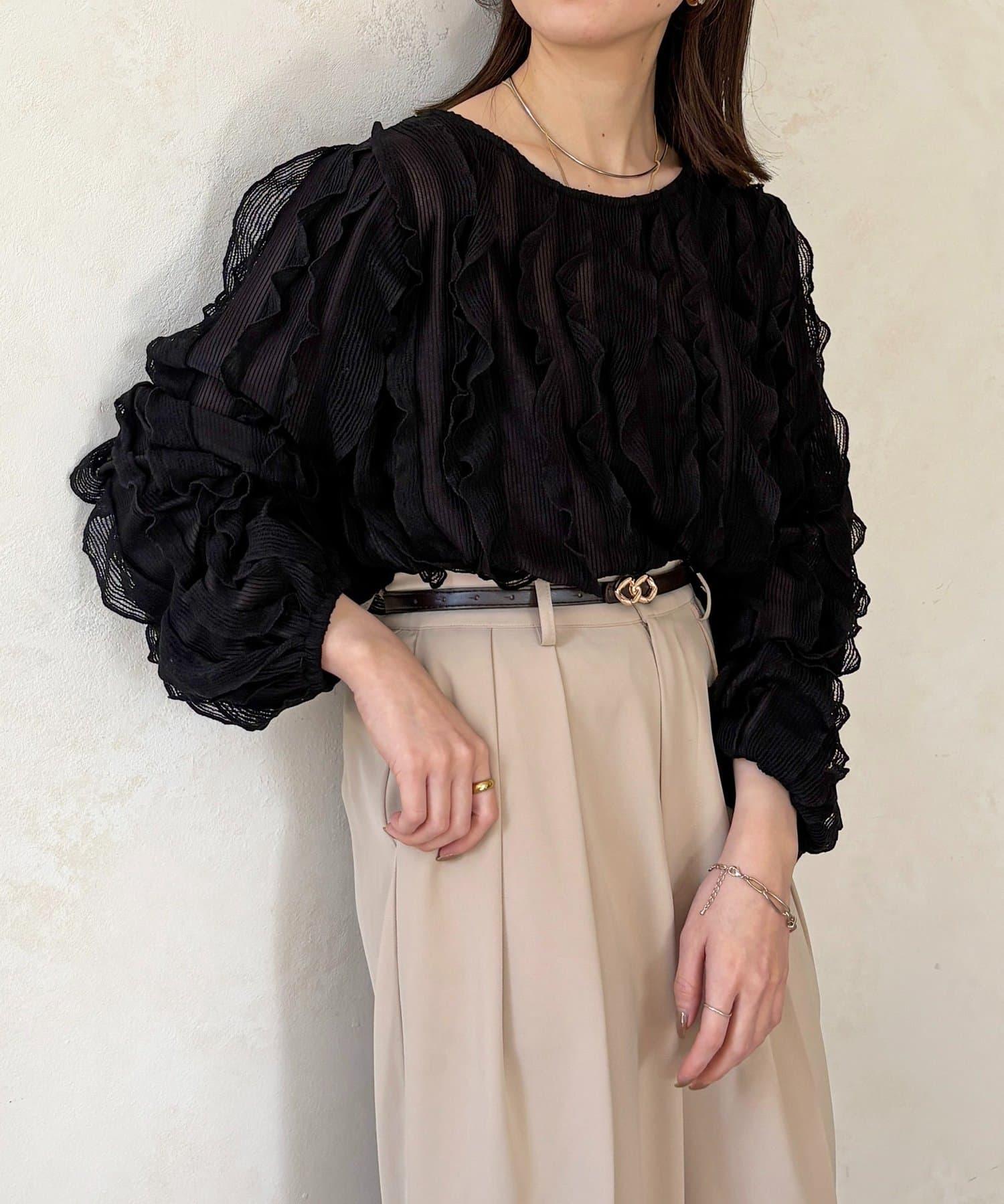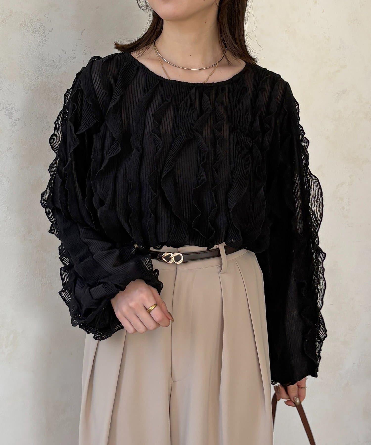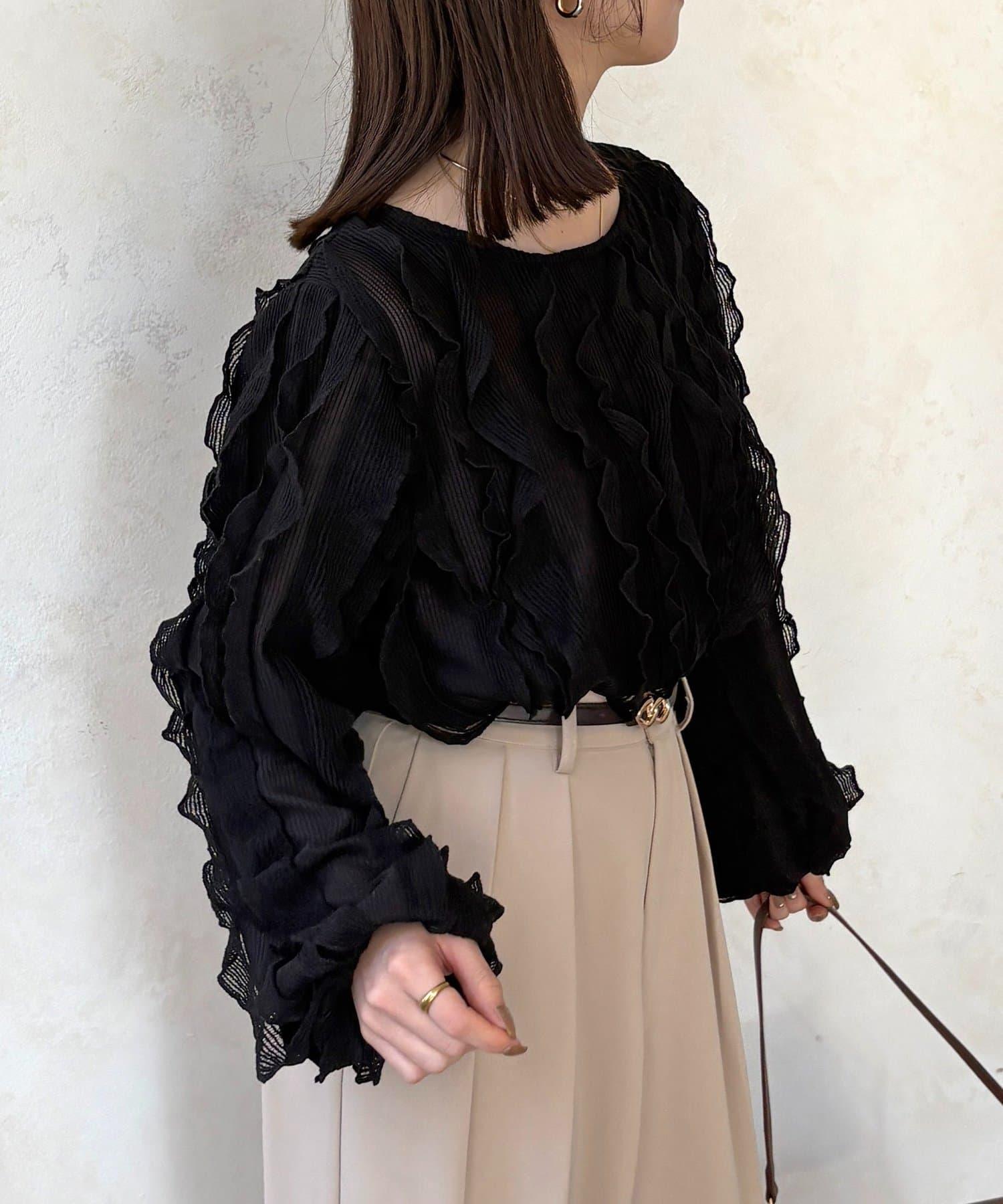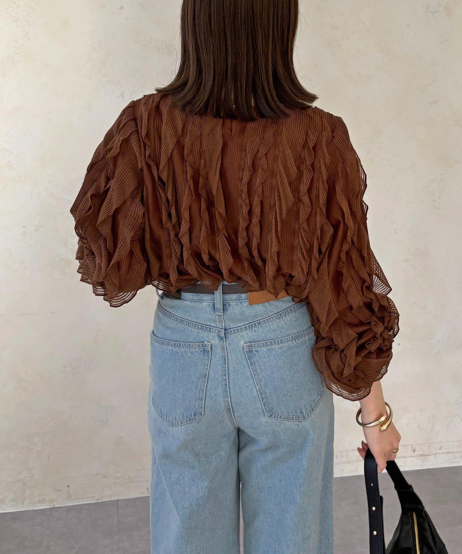 時尚針織衫,褶邊引人注目。