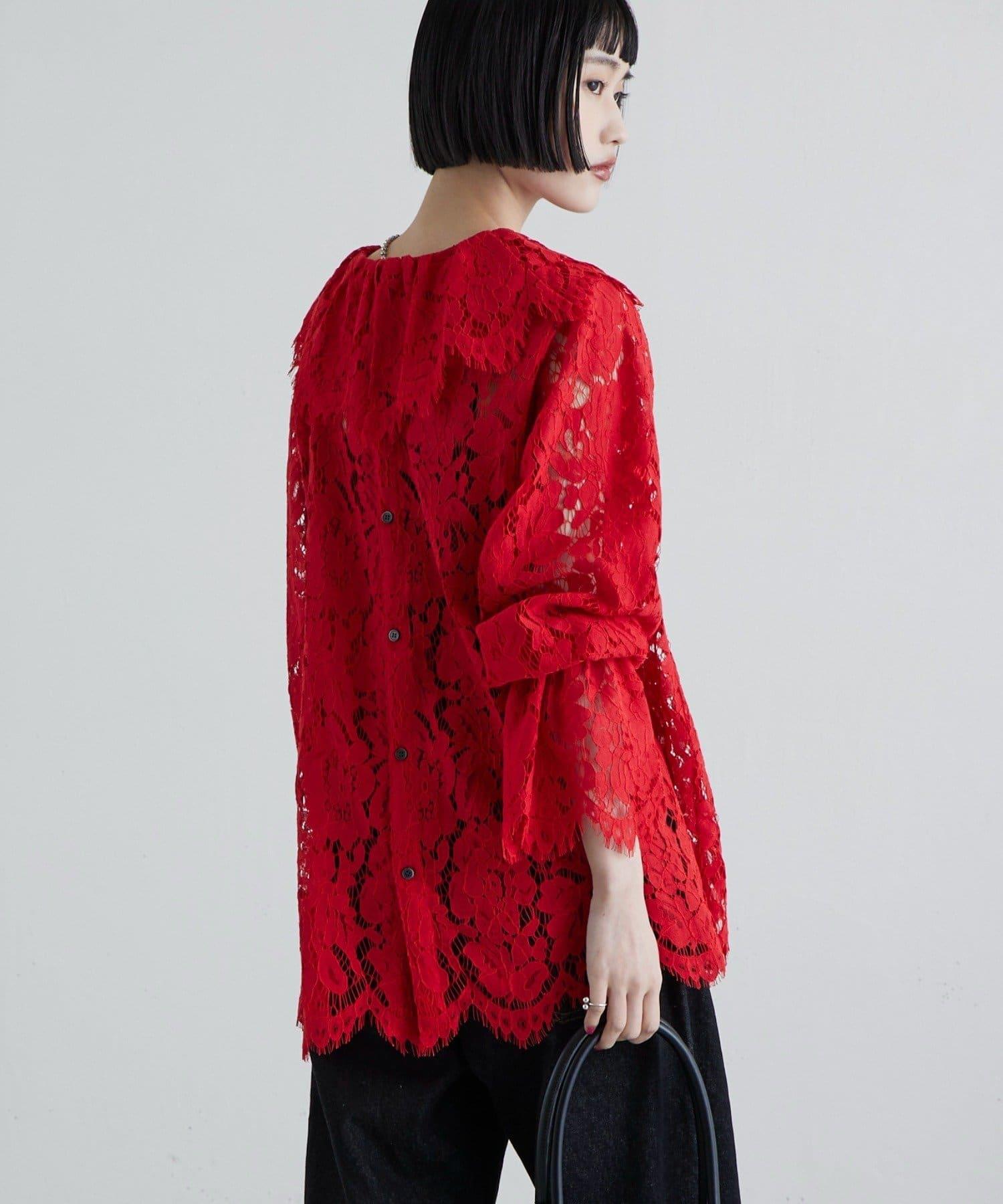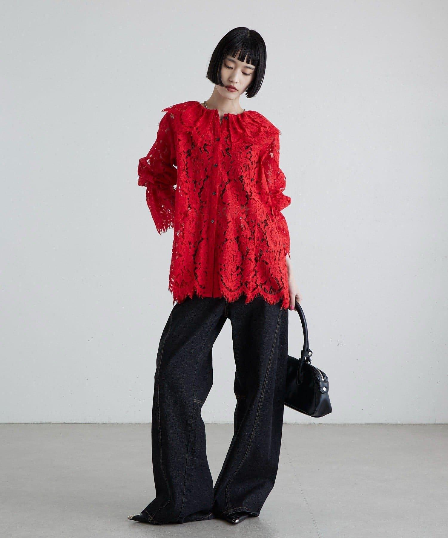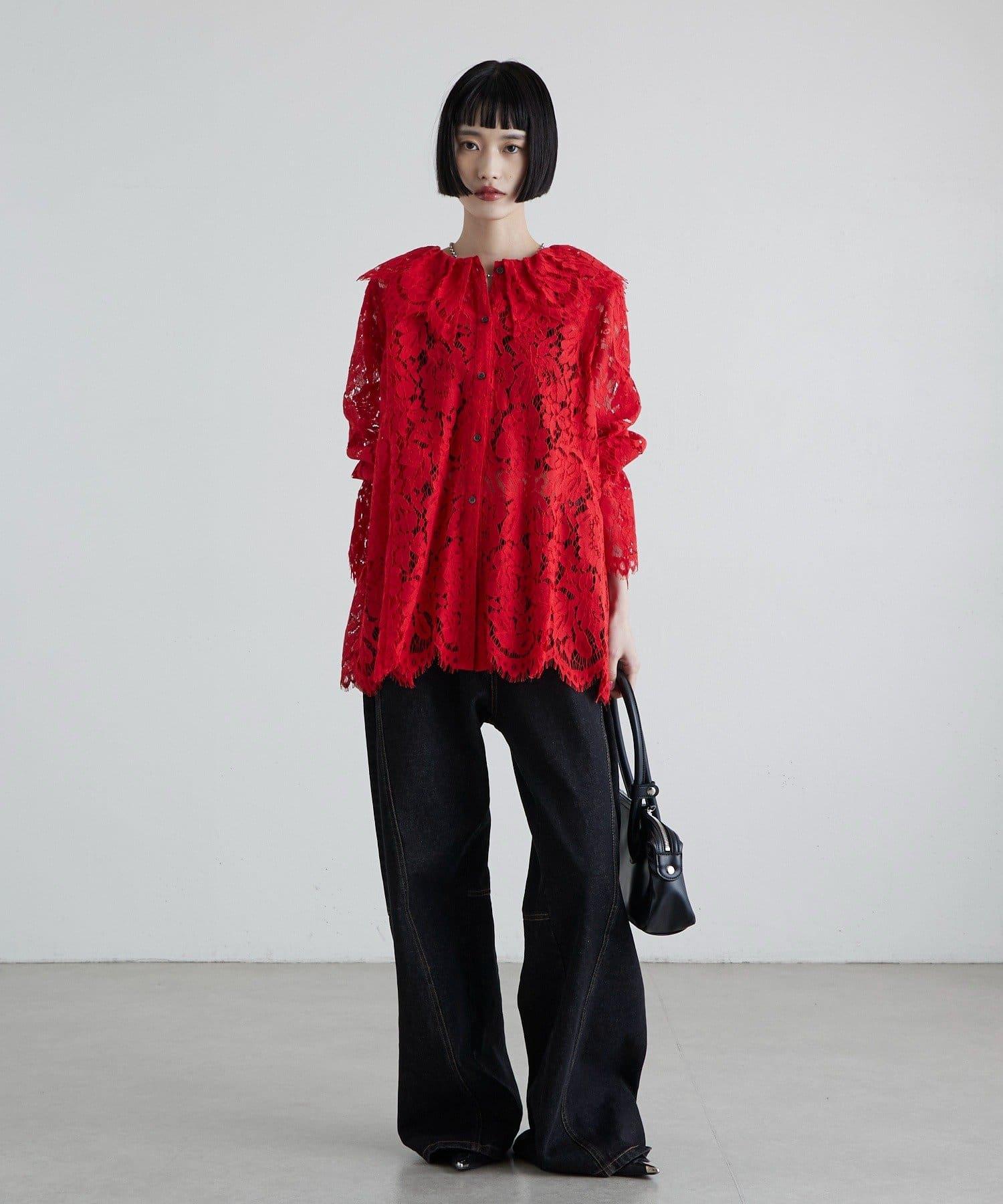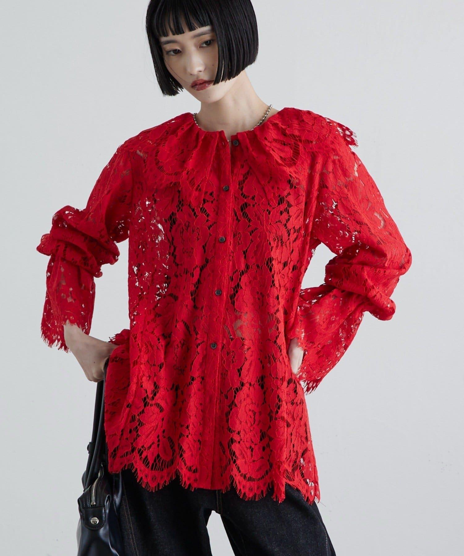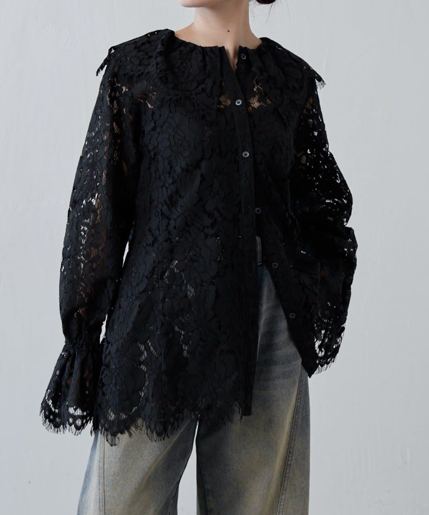 蕾絲大領是襯衫的一大特色。