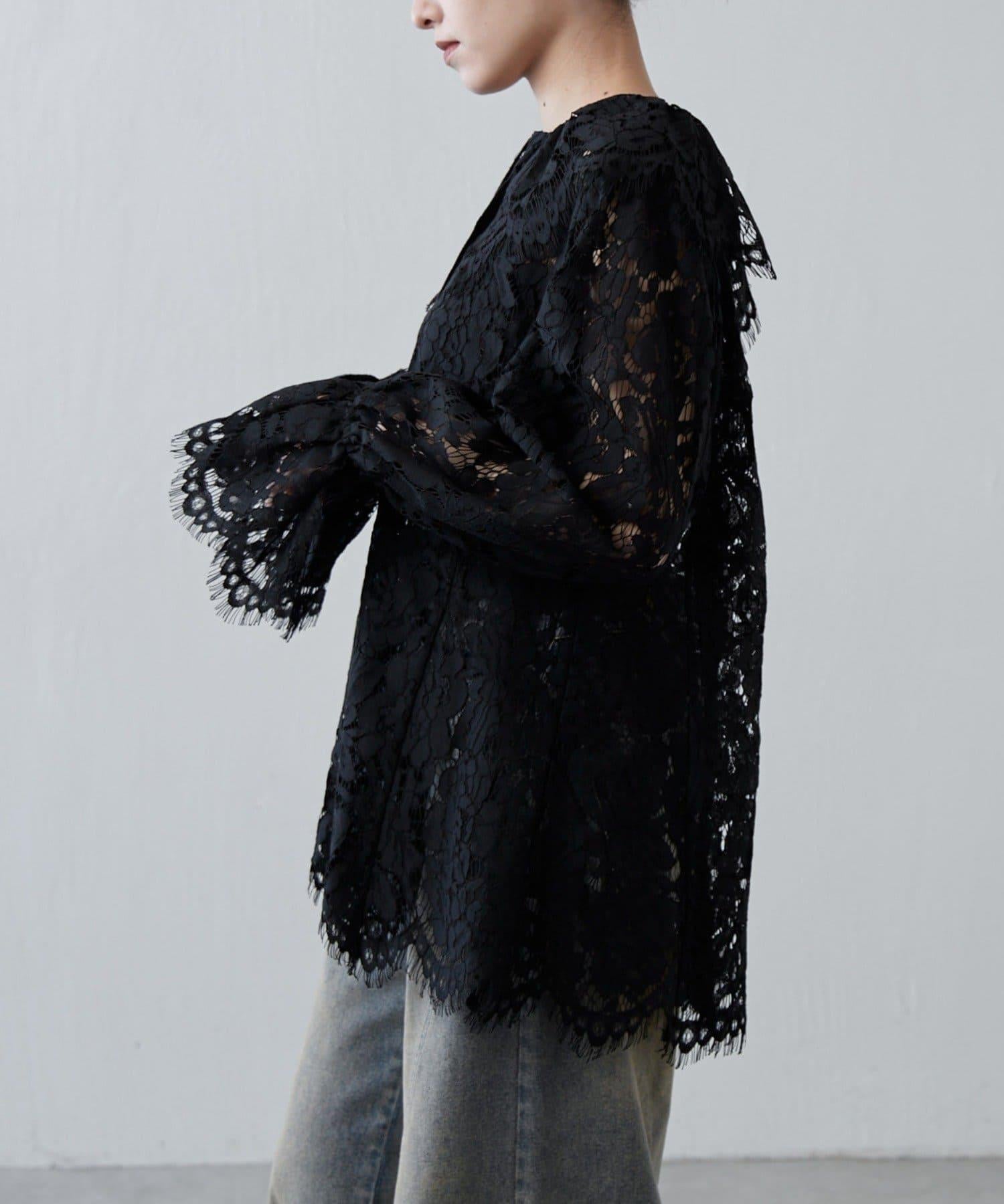 扇形蕾絲後背開襟襯衫