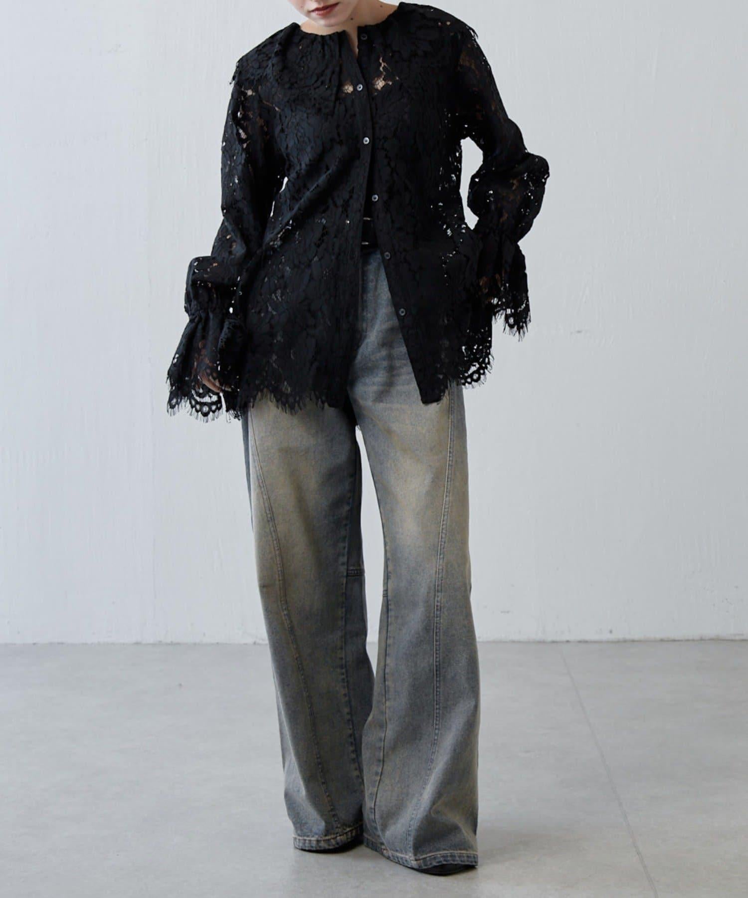 襯衫採用精緻的蕾絲設計,只需穿上它就能營造出迷人的效果。