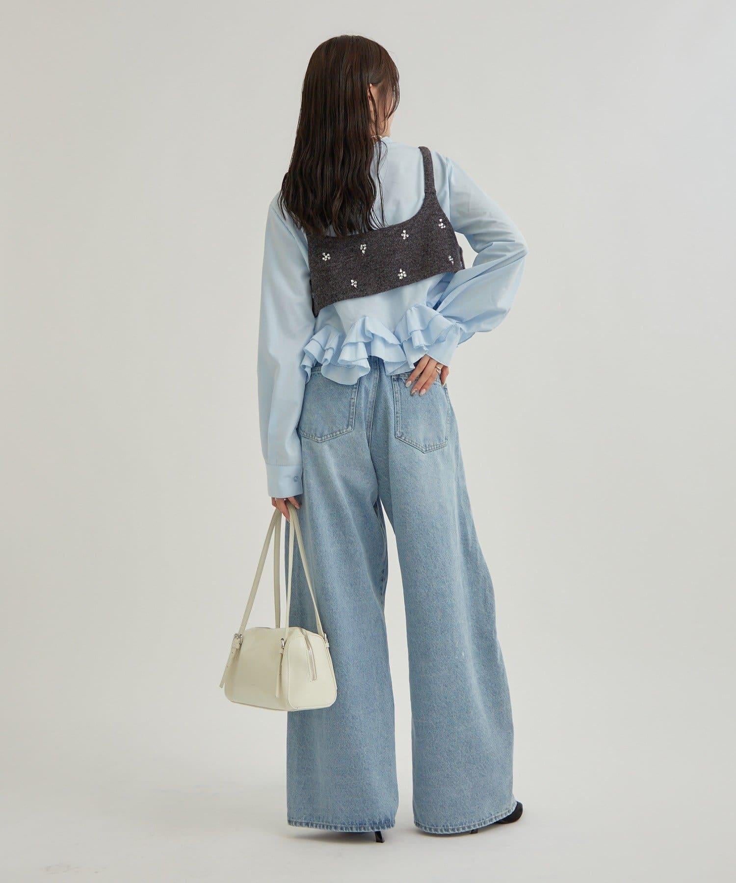 上衣是一件甜美的上衣,但它與牛仔褲也有很好的兼容性◎將它隨意地做成羽絨服,就完成了甜美與辛辣的協調。