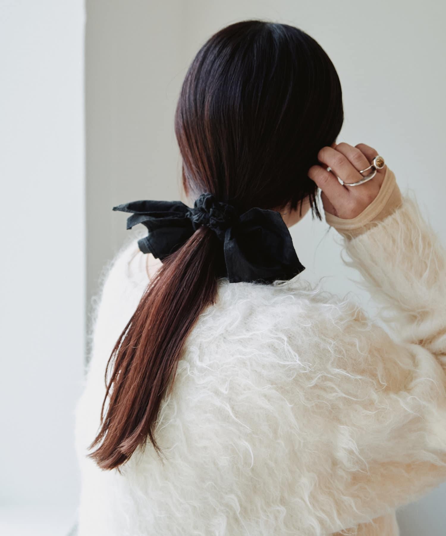 大面積的 Chou chou 具有很強的氣場。可以搭配各種髮型。