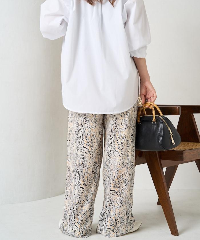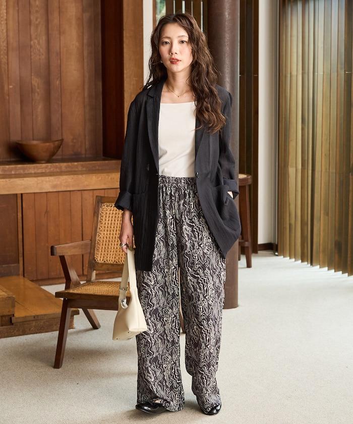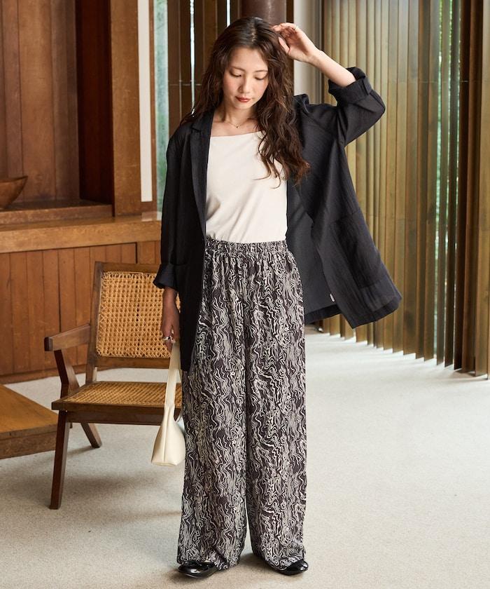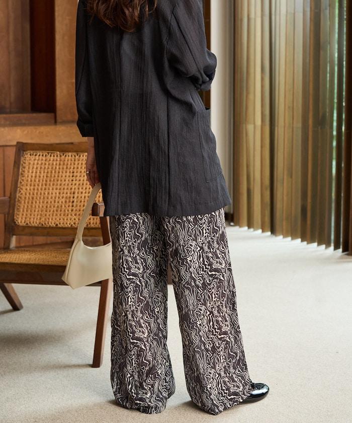 波浪形圖案的簡易長褲,為你的搭配增添表情。